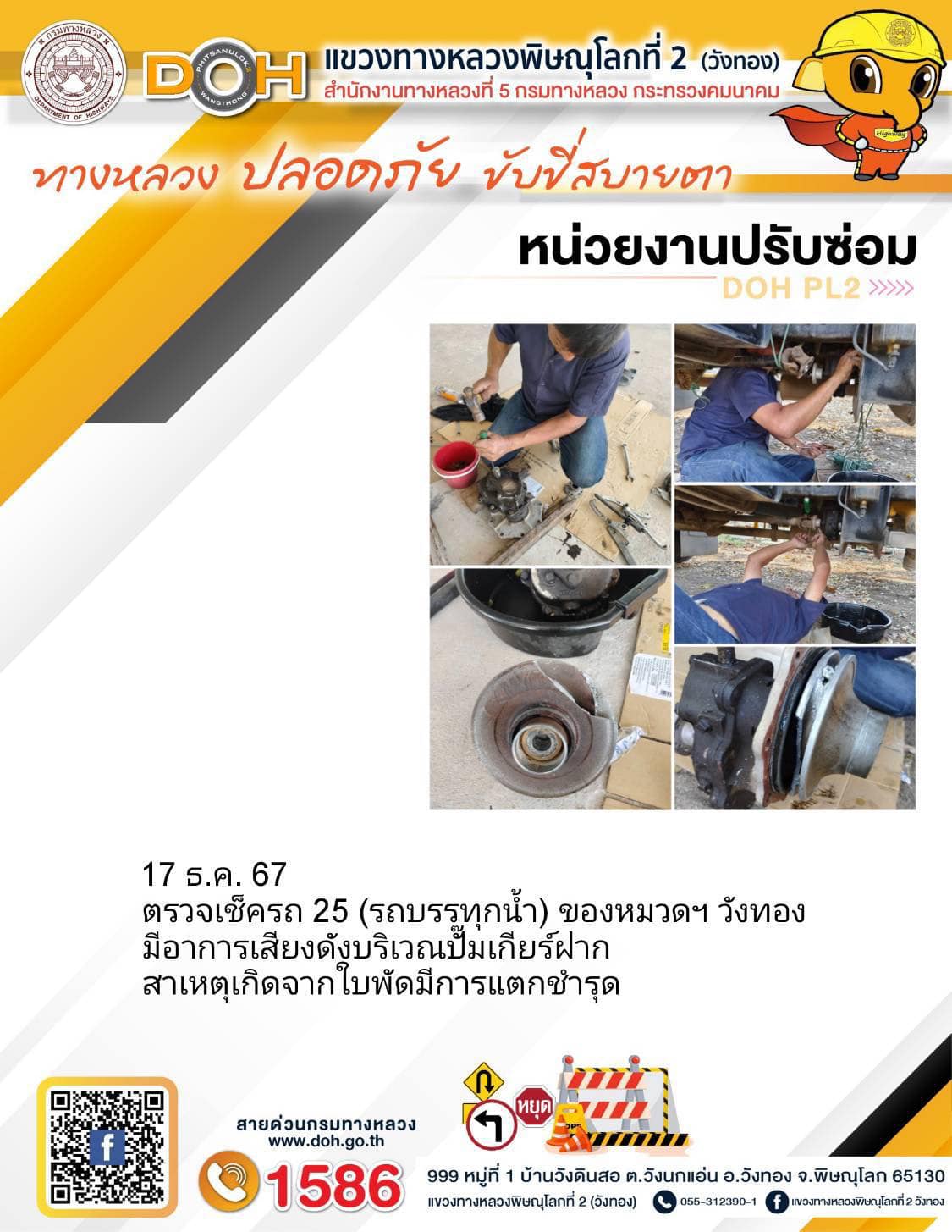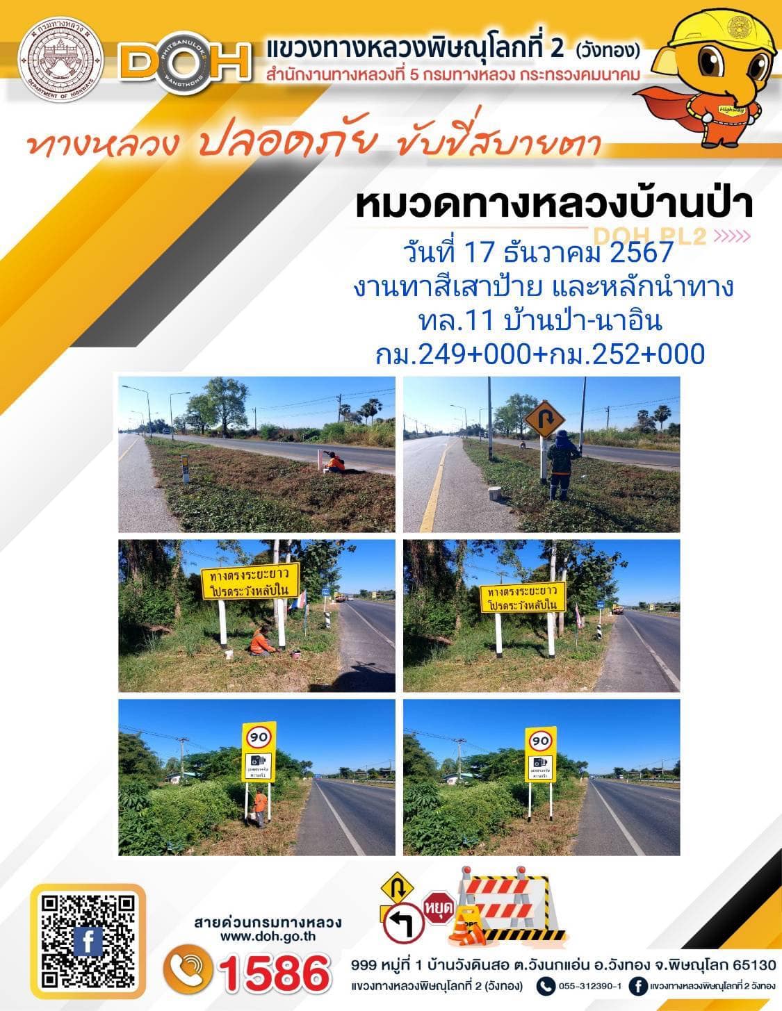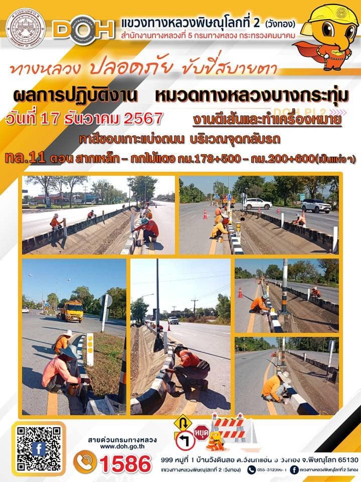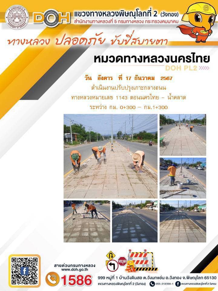 การปฏิบัติงานของ หมวดทางหลวง และ หน่วยงานในสังกัด เพื่ออำนวยความสะดวก และปลอดภัยให้กับประชาชนผู้ใช้เส้นทาง ประจำ วันอังคาร ที่ 17 ธันวาคม 2567