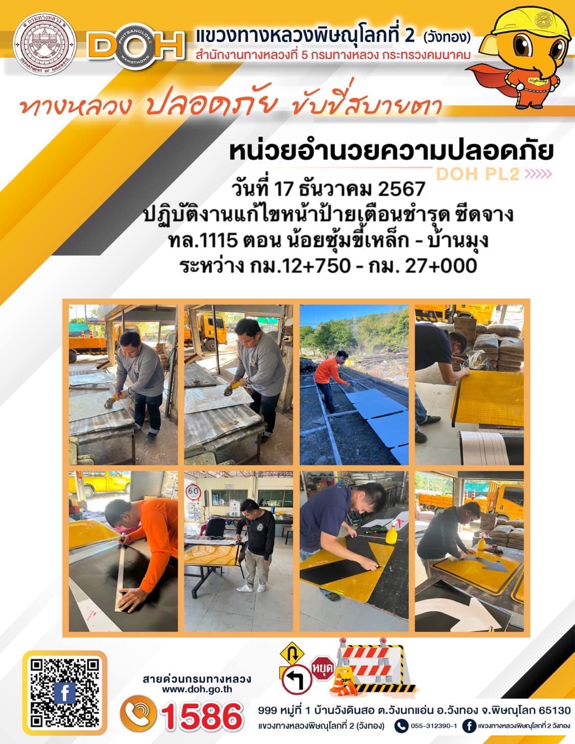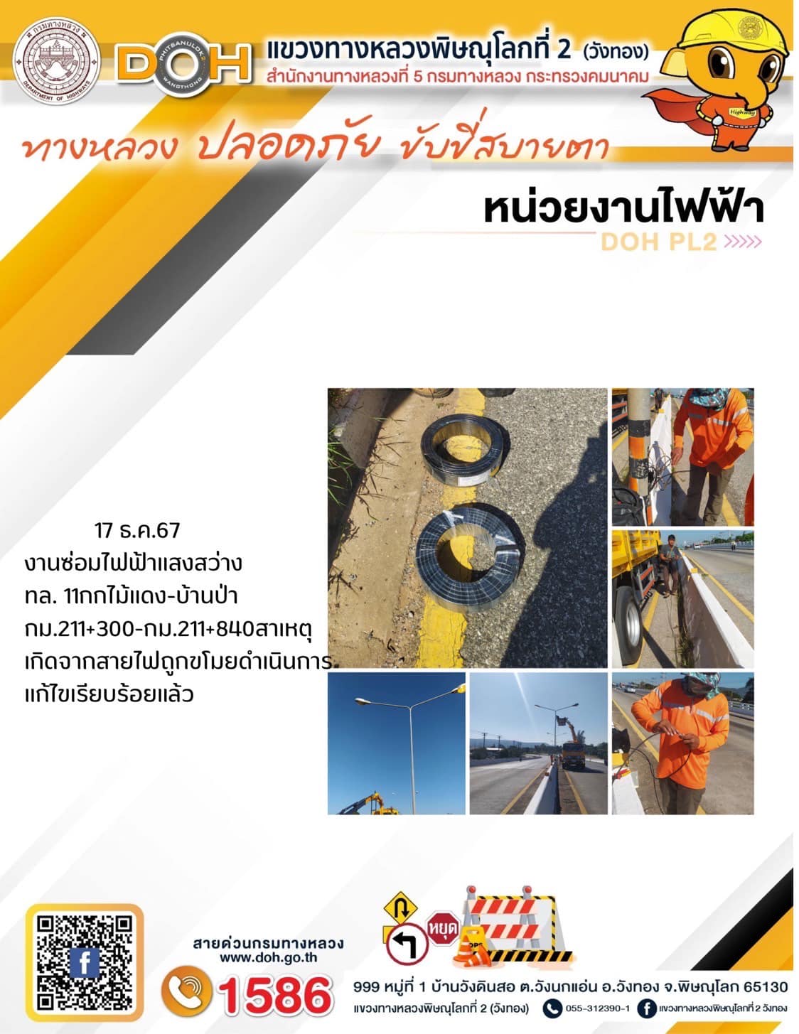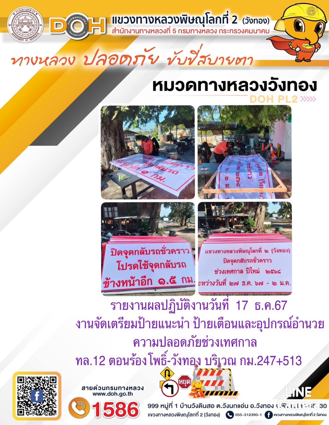 การปฏิบัติงานของ หมวดทางหลวง และ หน่วยงานในสังกัด เพื่ออำนวยความสะดวก และปลอดภัยให้กับประชาชนผู้ใช้เส้นทาง ประจำ วันอังคาร ที่ 17 ธันวาคม 2567