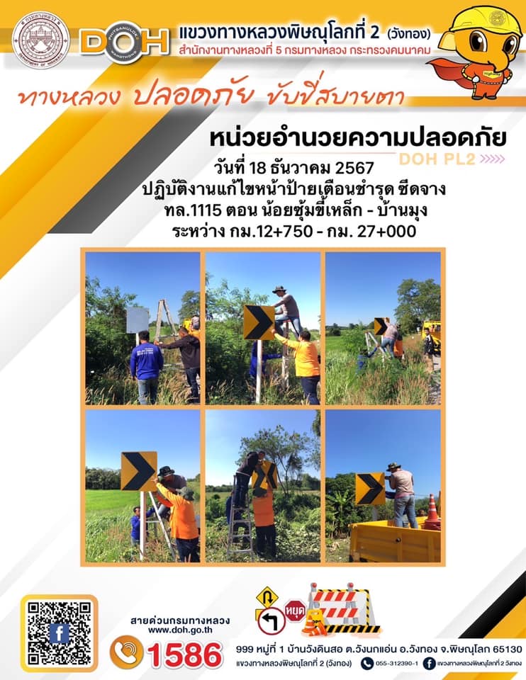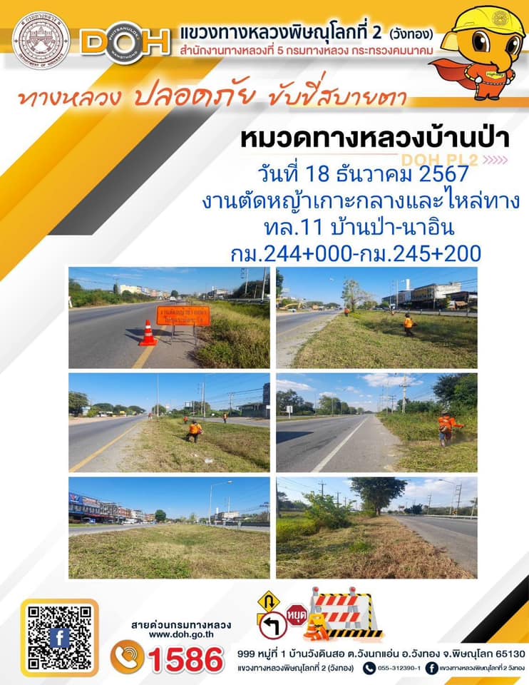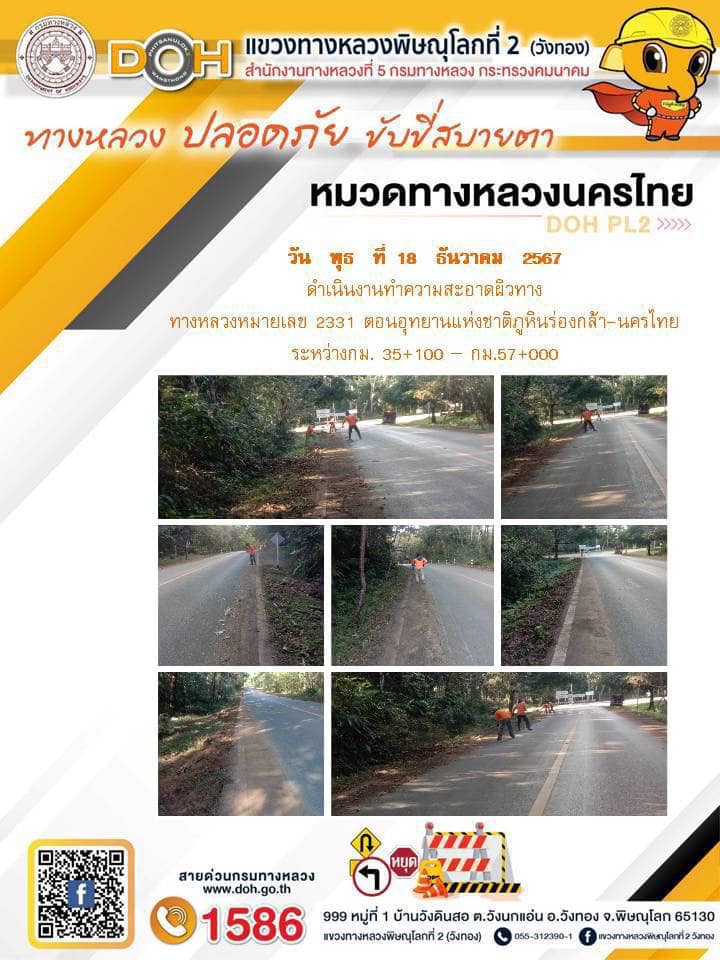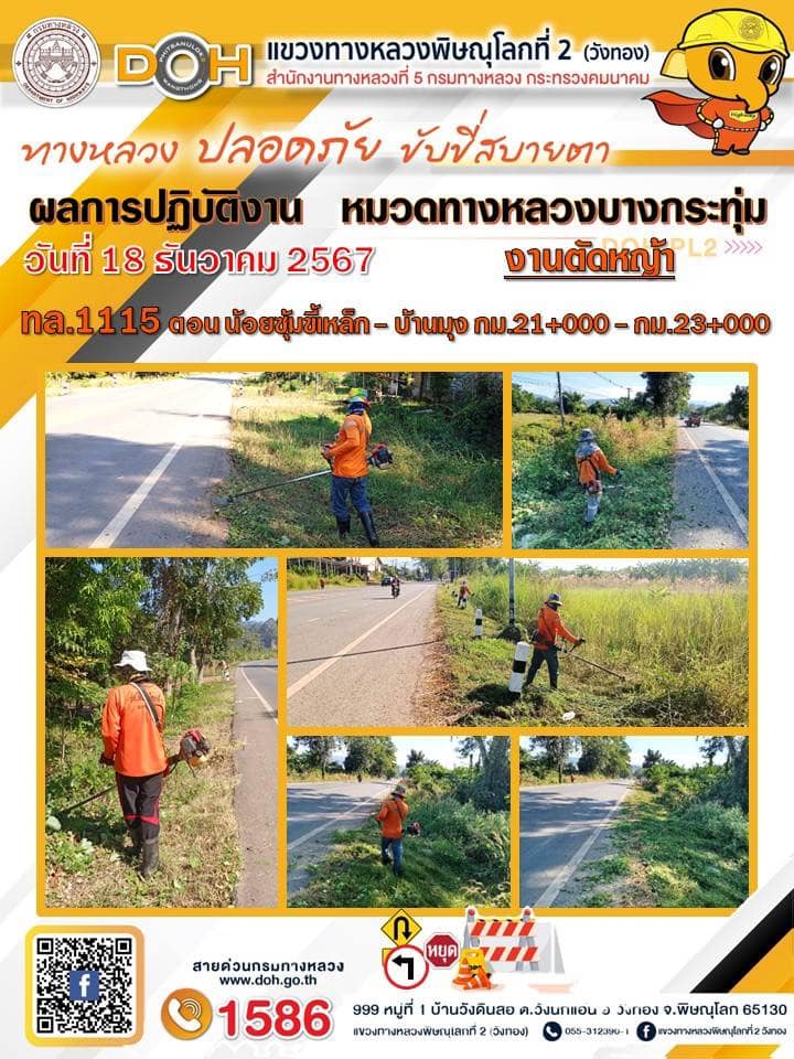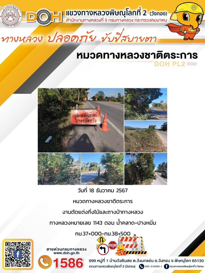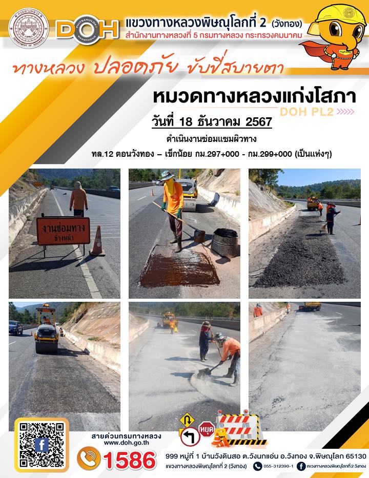 การปฏิบัติงานของ หมวดทางหลวง และ หน่วยงานในสังกัด เพื่ออำนวยความสะดวก และปลอดภัยให้กับประชาชนผู้ใช้เส้นทาง ประจำ วันพุธ ที่ 18 ธันวาคม 2567