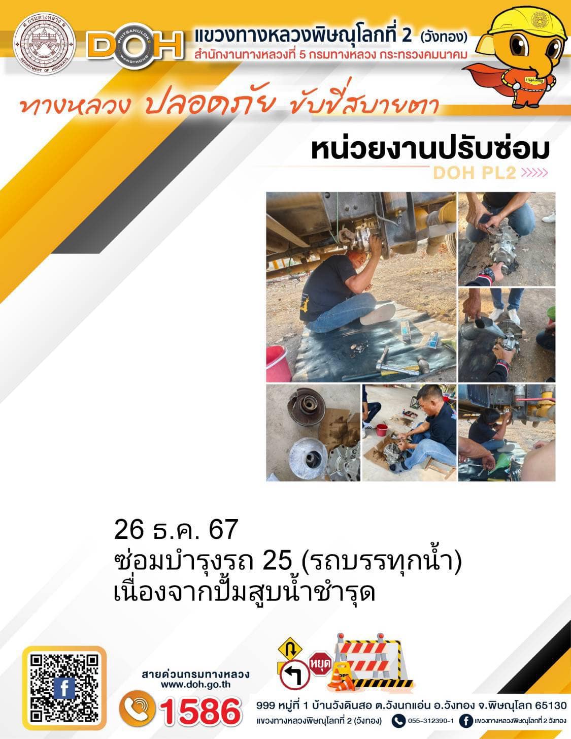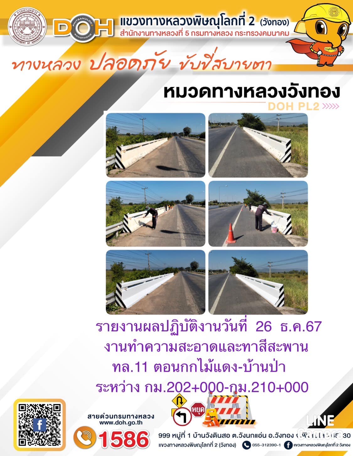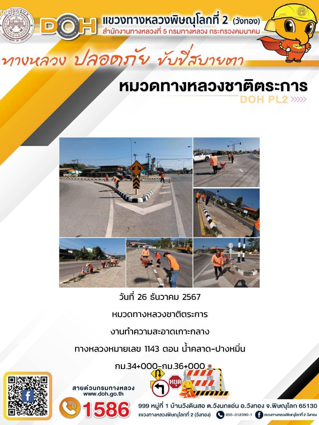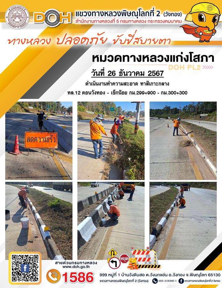 การปฏิบัติงานของ หมวดทางหลวง และ หน่วยงานในสังกัด เพื่ออำนวยความสะดวก และปลอดภัยให้กับประชาชนผู้ใช้เส้นทาง ประจำ วันพฤหัสบดี ที่ 26 ธันวาคม 2567
