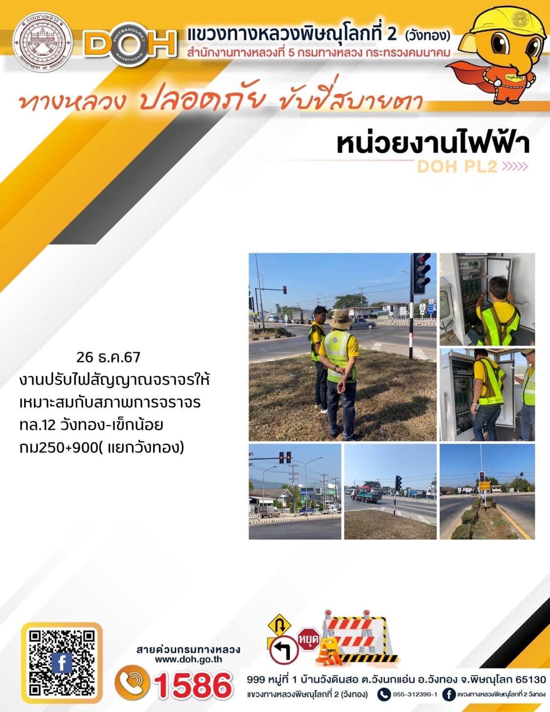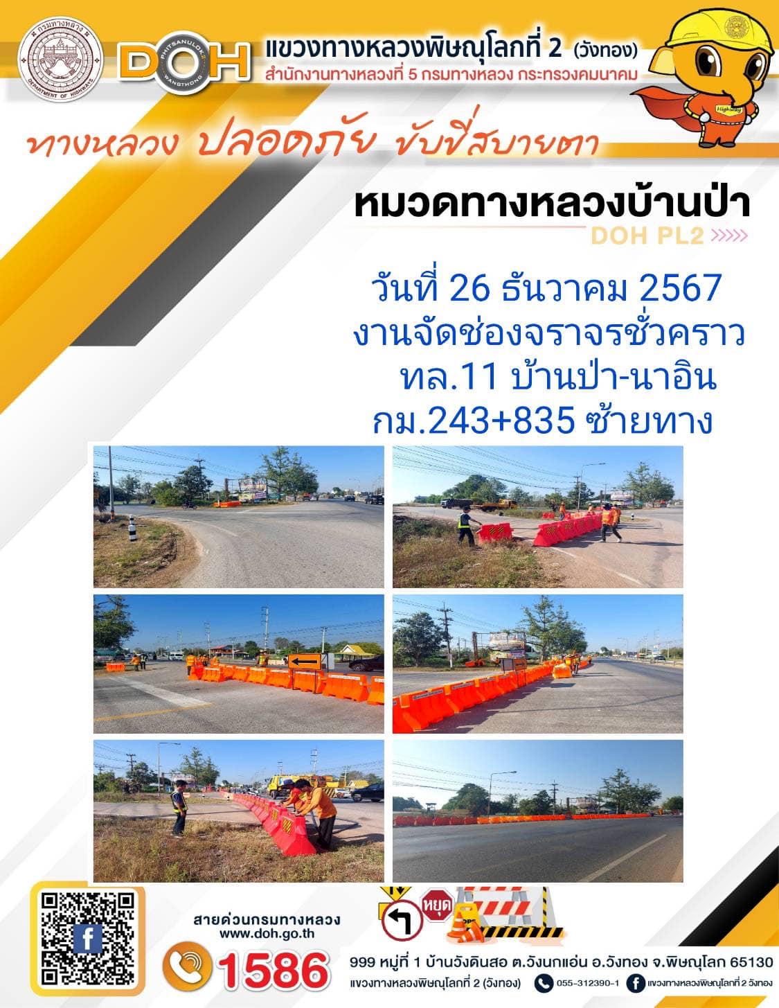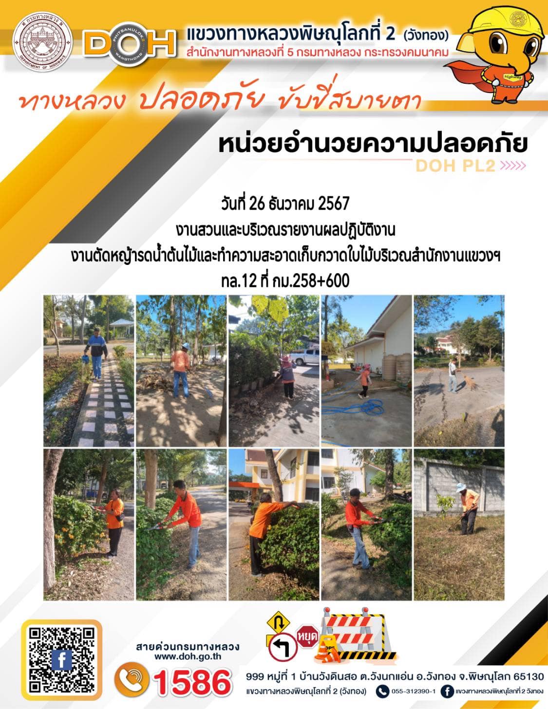 การปฏิบัติงานของ หมวดทางหลวง และ หน่วยงานในสังกัด เพื่ออำนวยความสะดวก และปลอดภัยให้กับประชาชนผู้ใช้เส้นทาง ประจำ วันพฤหัสบดี ที่ 26 ธันวาคม 2567