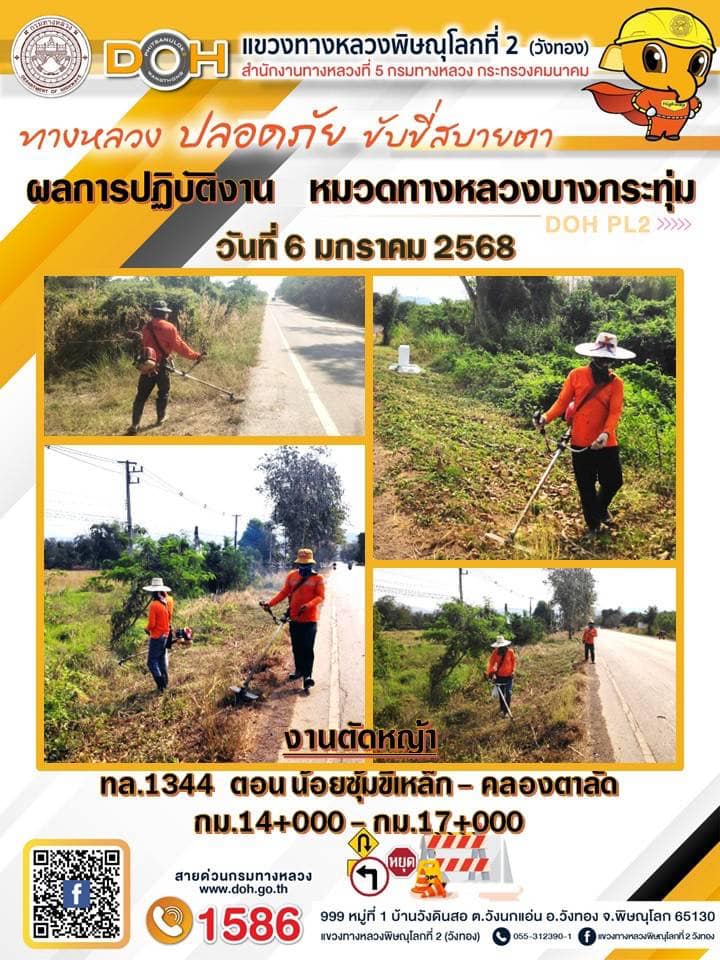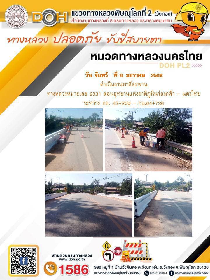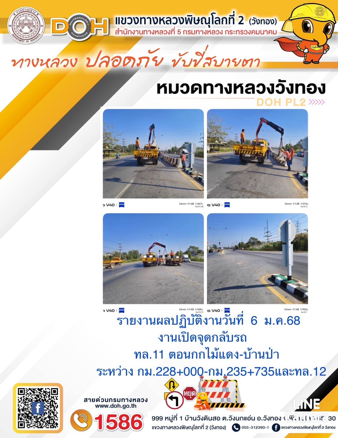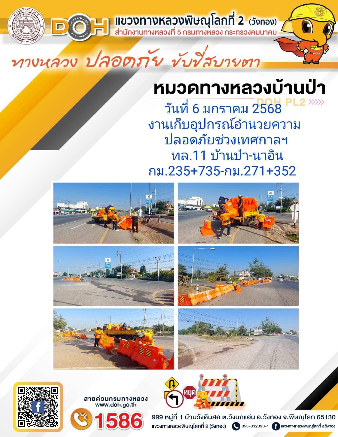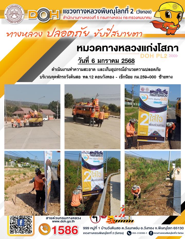 การปฏิบัติงานของ หมวดทางหลวง และ หน่วยงานในสังกัด เพื่ออำนวยความสะดวก และปลอดภัยให้กับประชาชนผู้ใช้เส้นทาง ประจำ วันจันทร์ ที่ 6 มกราคม 2568