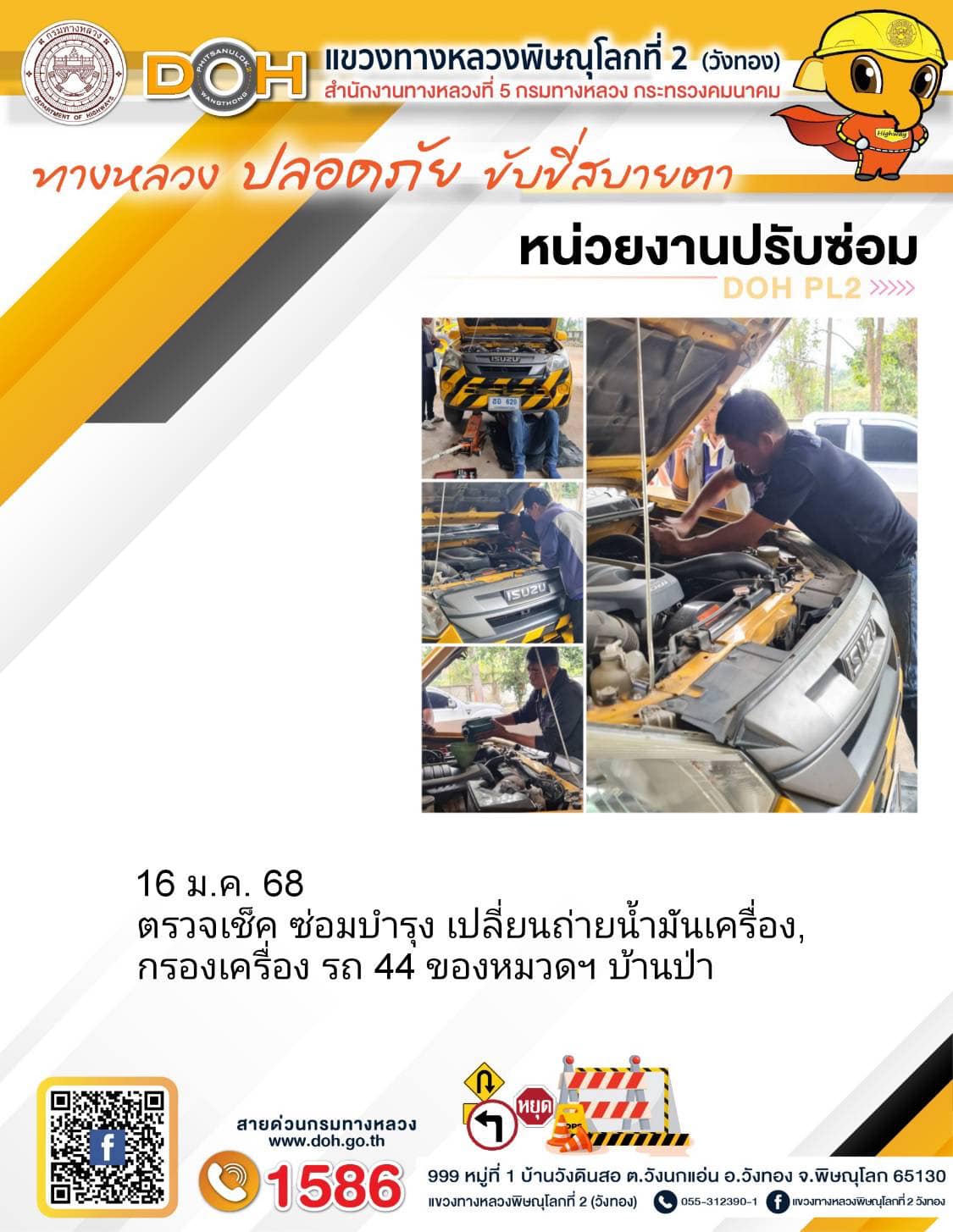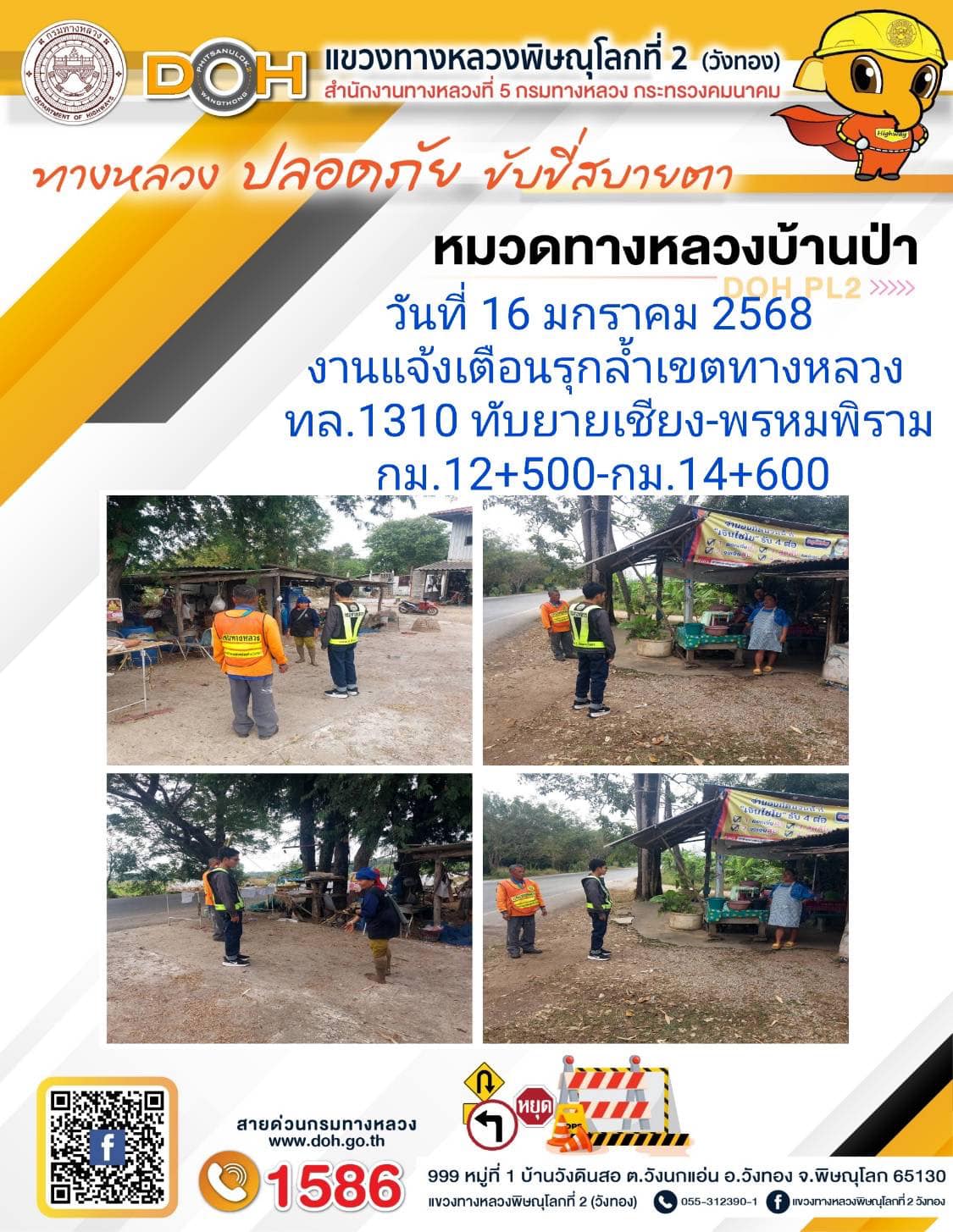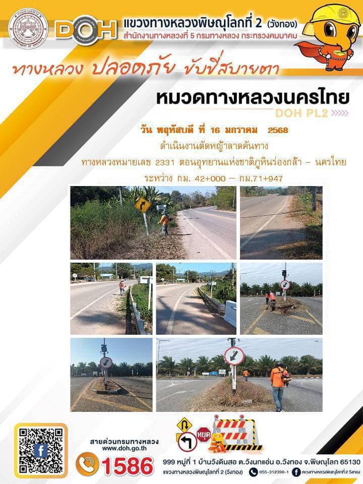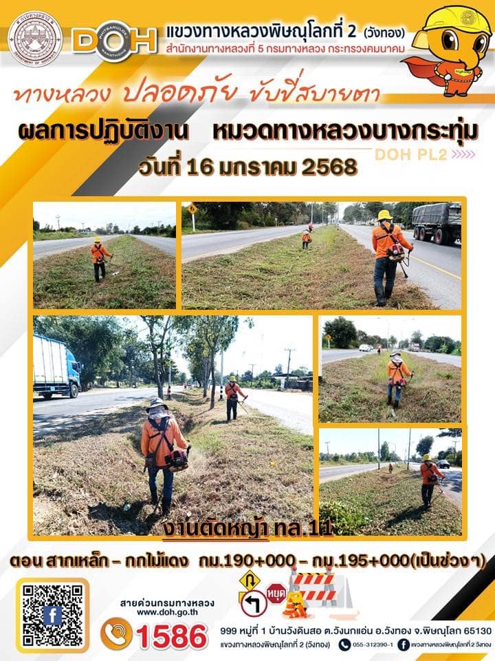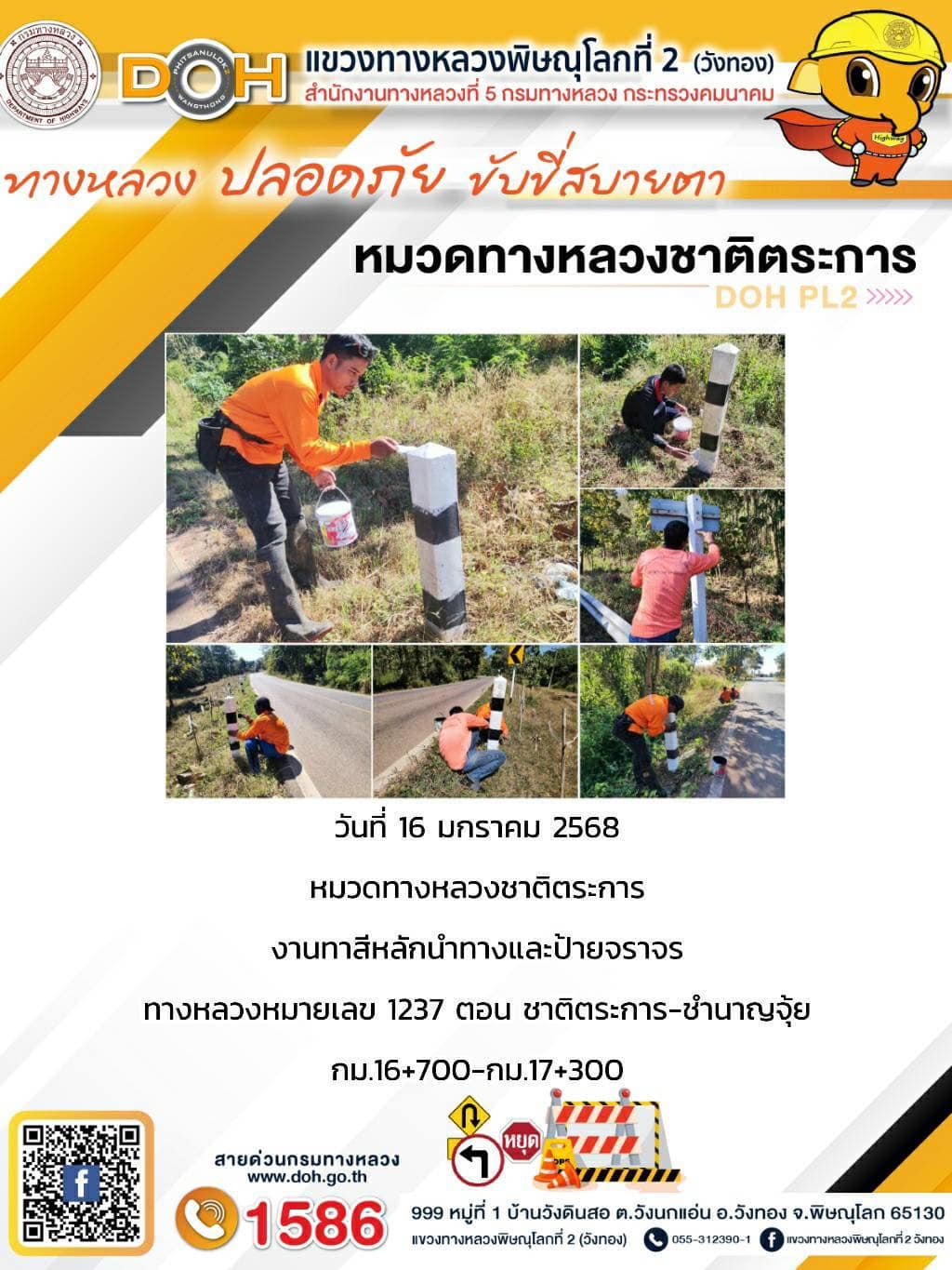 การปฏิบัติงานของ หมวดทางหลวง และ หน่วยงานในสังกัด เพื่ออำนวยความสะดวก และปลอดภัยให้กับประชาชนผู้ใช้เส้นทาง ประจำ วันพฤหัสบดี ที่ 16 มกราคม 2568