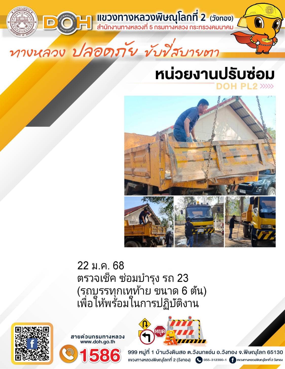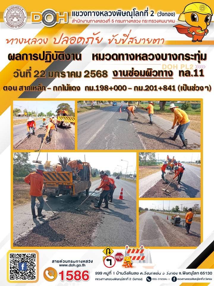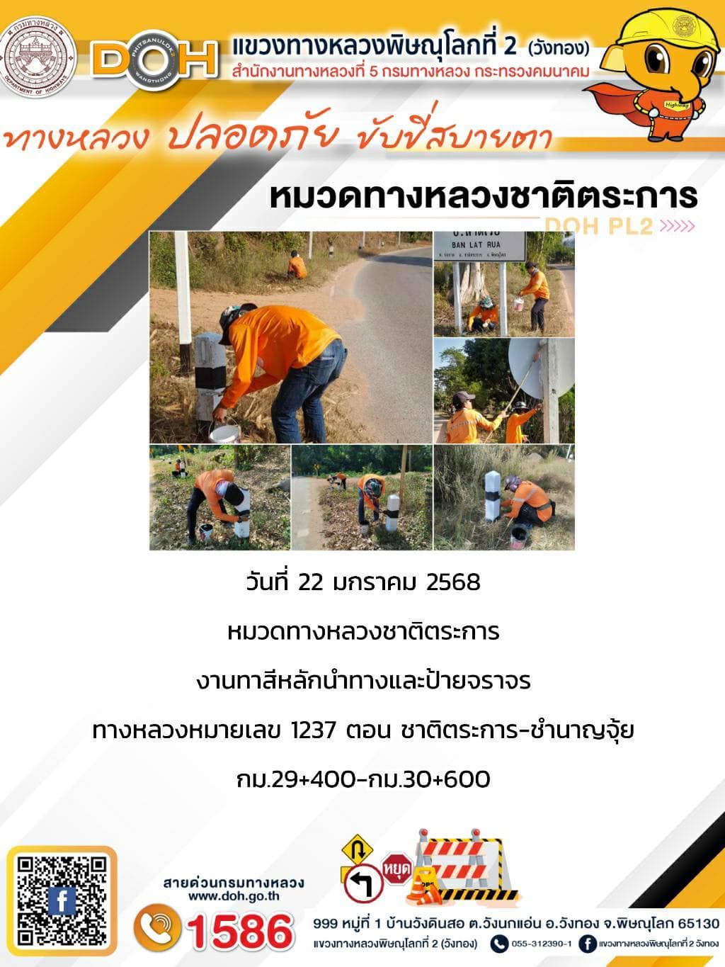การปฏิบัติงานของ หมวดทางหลวง และ หน่วยงานในสังกัด เพื่ออำนวยความสะดวก และปลอดภัยให้กับประชาชนผู้ใช้เส้นทาง ประจำ วันพุธ ที่ 22 มกราคม 2568