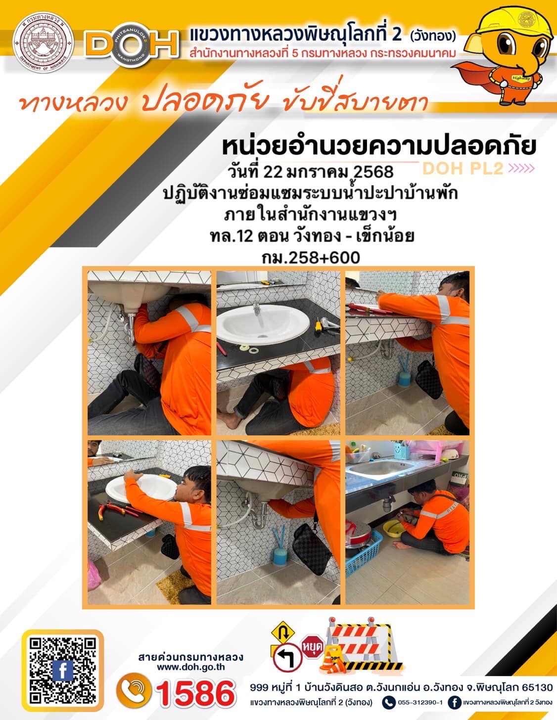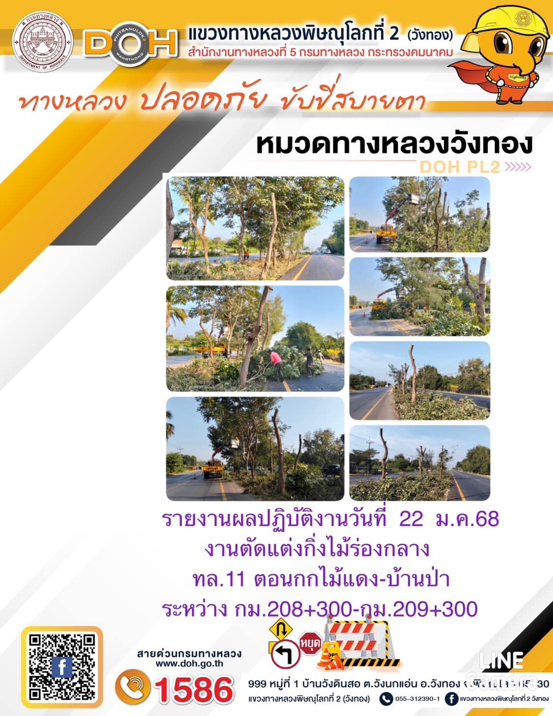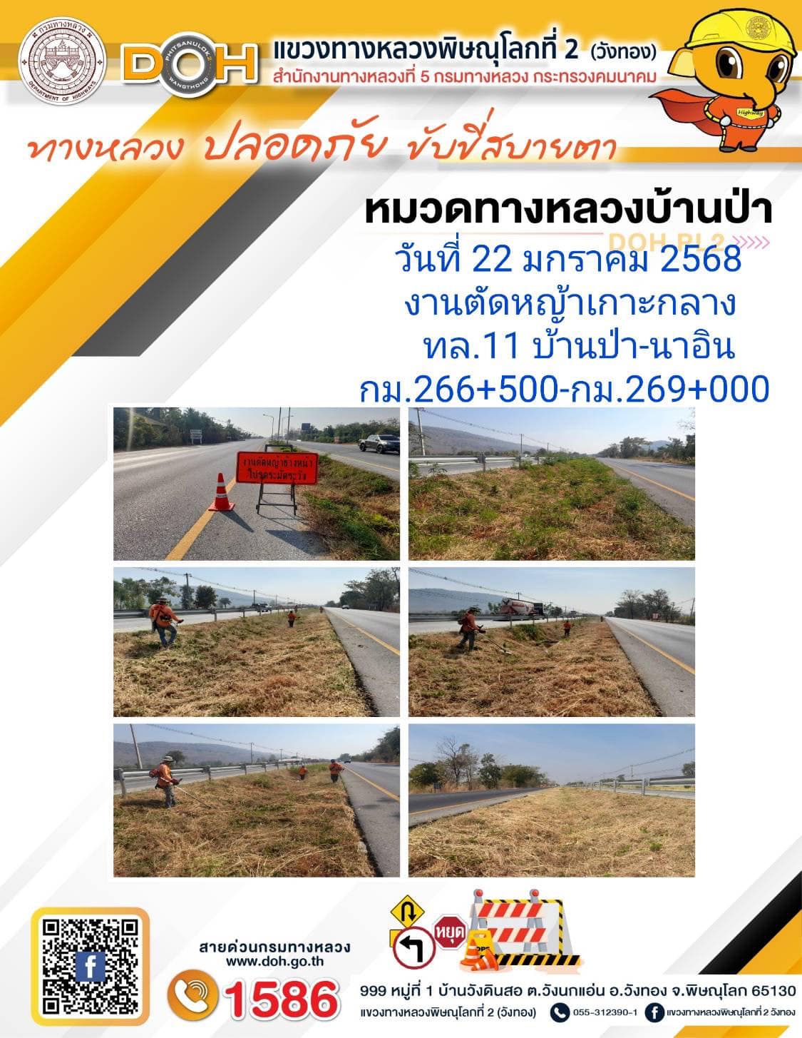 การปฏิบัติงานของ หมวดทางหลวง และ หน่วยงานในสังกัด เพื่ออำนวยความสะดวก และปลอดภัยให้กับประชาชนผู้ใช้เส้นทาง ประจำ วันพุธ ที่ 22 มกราคม 2568