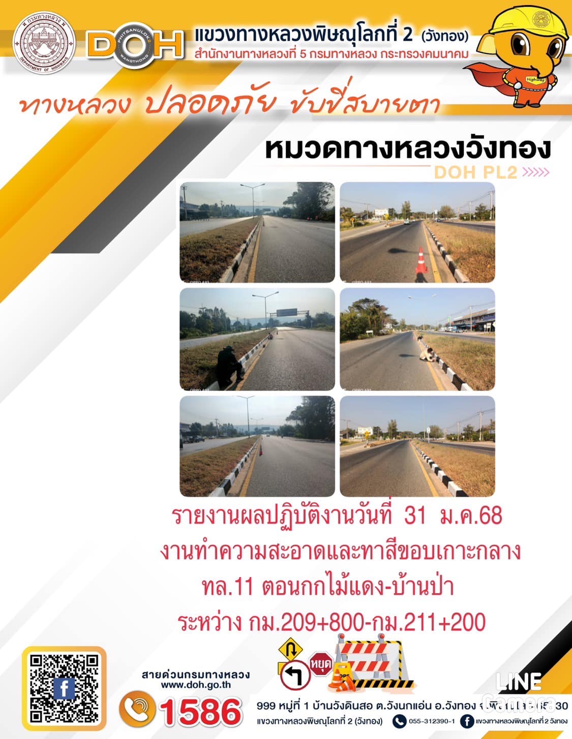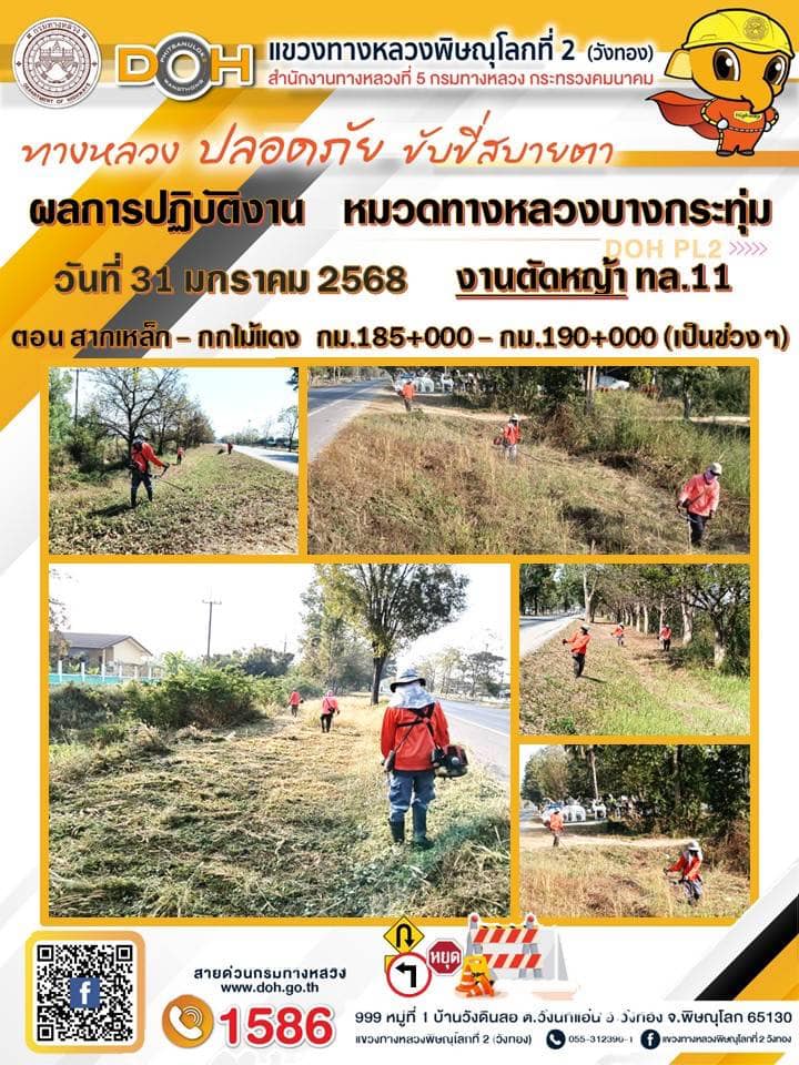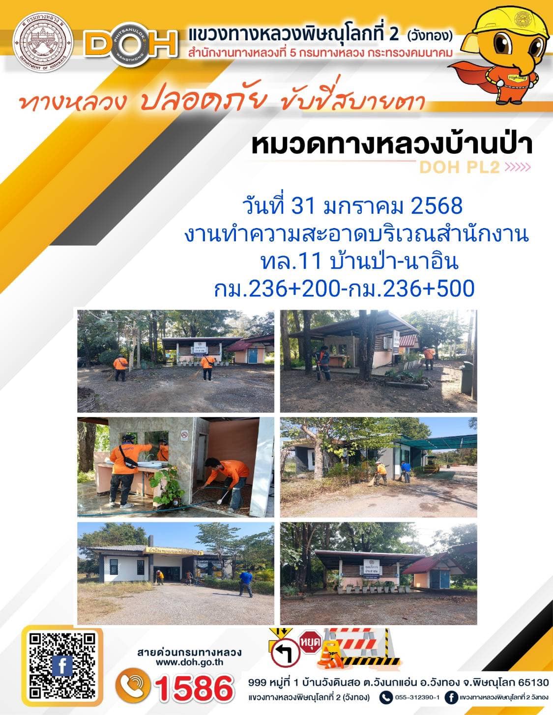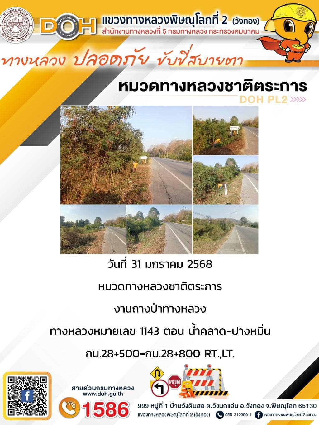 การปฏิบัติงานของ หมวดทางหลวง และ หน่วยงานในสังกัด เพื่ออำนวยความสะดวก และปลอดภัยให้กับประชาชนผู้ใช้เส้นทาง ประจำ วันศุกร์ ที่ 31 มกราคม 2568