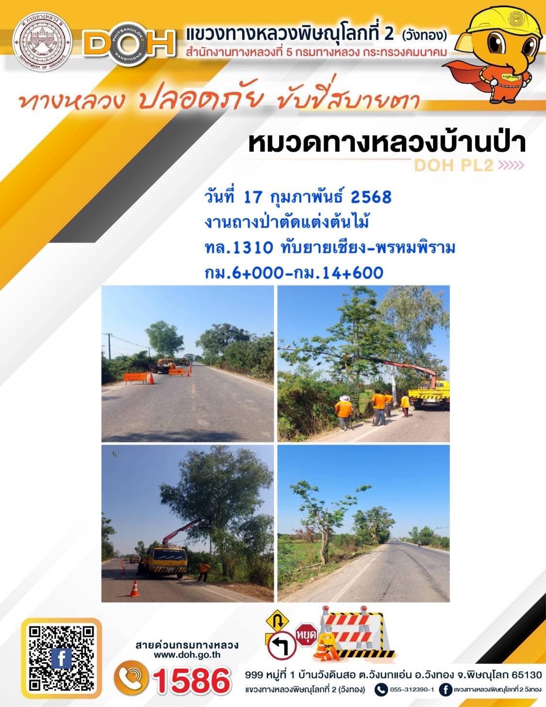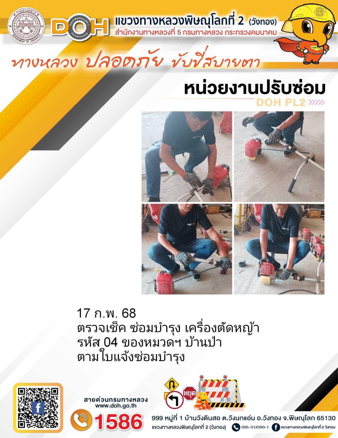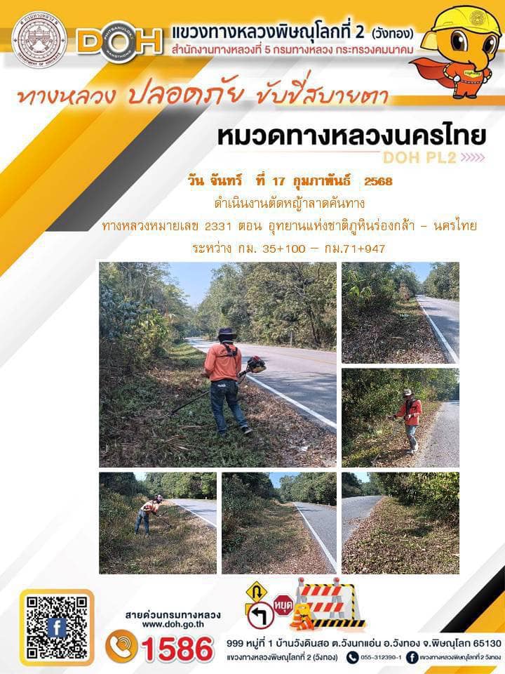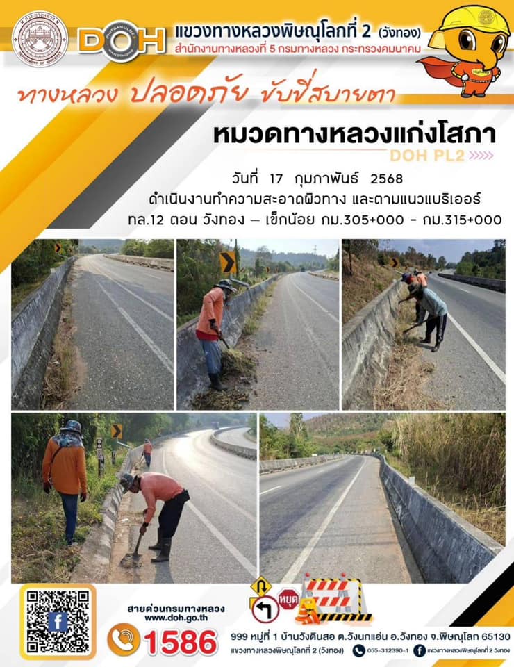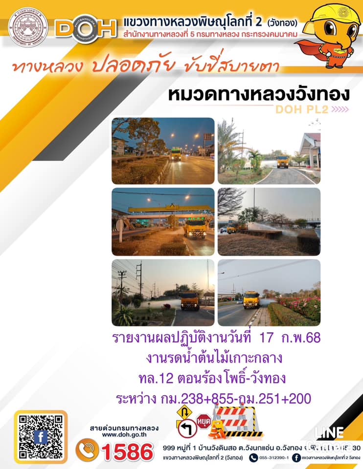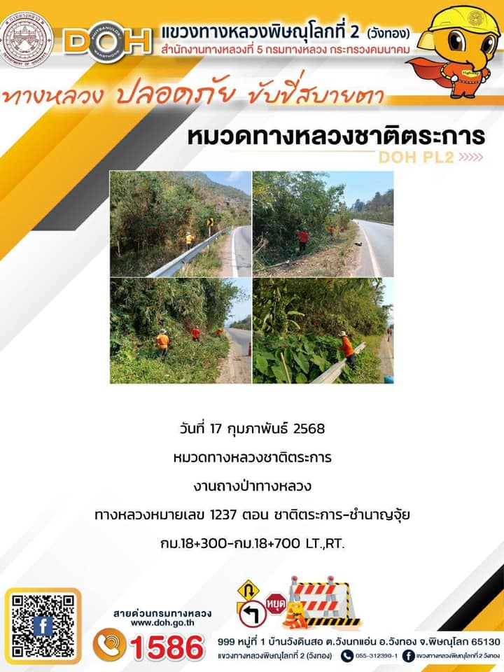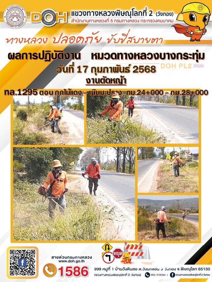การปฏิบัติงานของ หมวดทางหลวง และ หน่วยงานในสังกัด เพื่ออำนวยความสะดวก และปลอดภัยให้กับประชาชนผู้ใช้เส้นทาง ประจำวันจันทร์ ที่ 17 กุมภาพันธ์ 2568