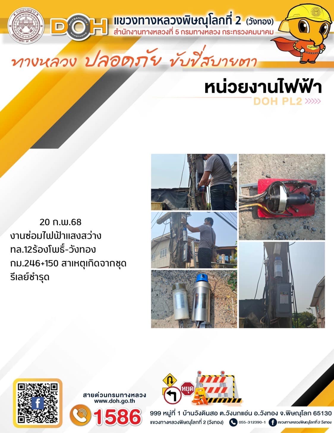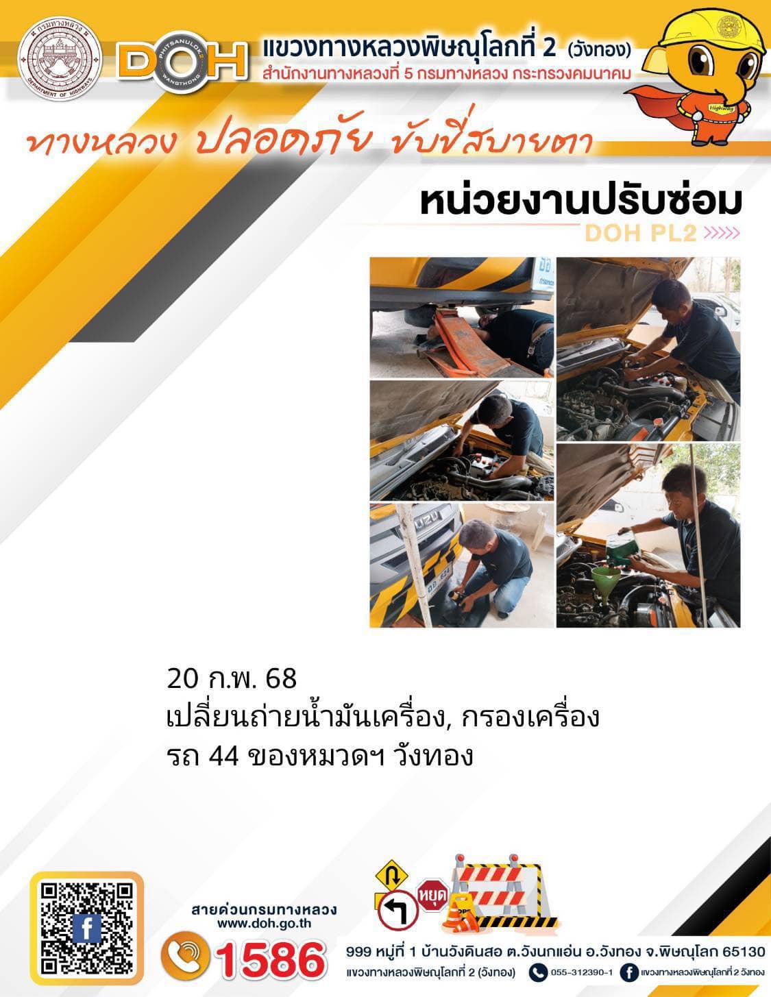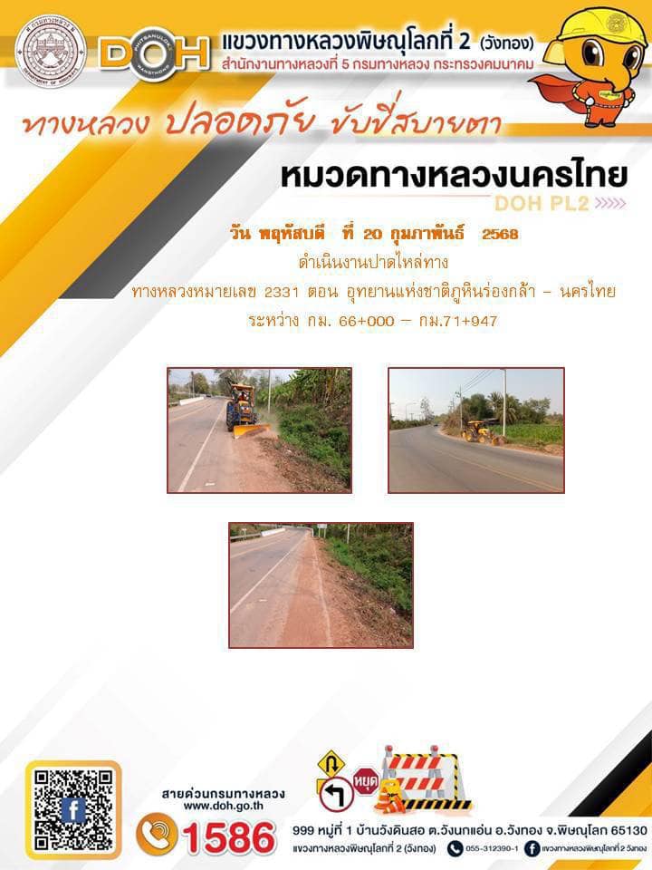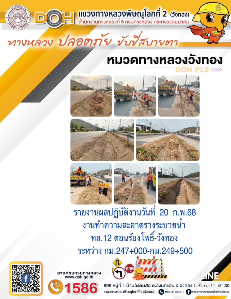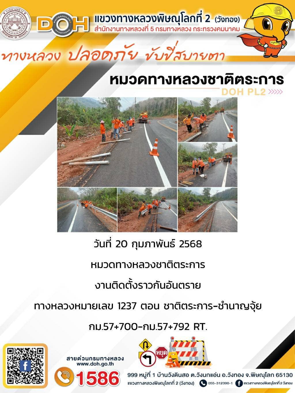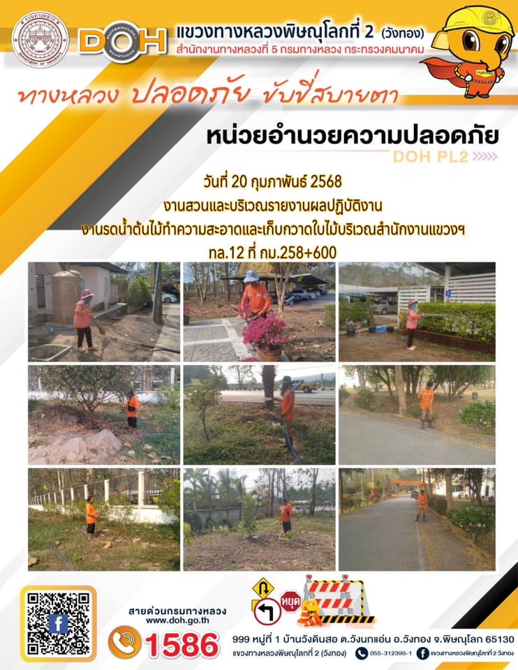 การปฏิบัติงานของ หมวดทางหลวง และ หน่วยงานในสังกัด เพื่ออำนวยความสะดวก และปลอดภัยให้กับประชาชนผู้ใช้เส้นทาง ประจำวันพฤหัสบดี ที่ 20 กุมภาพันธ์ 2568