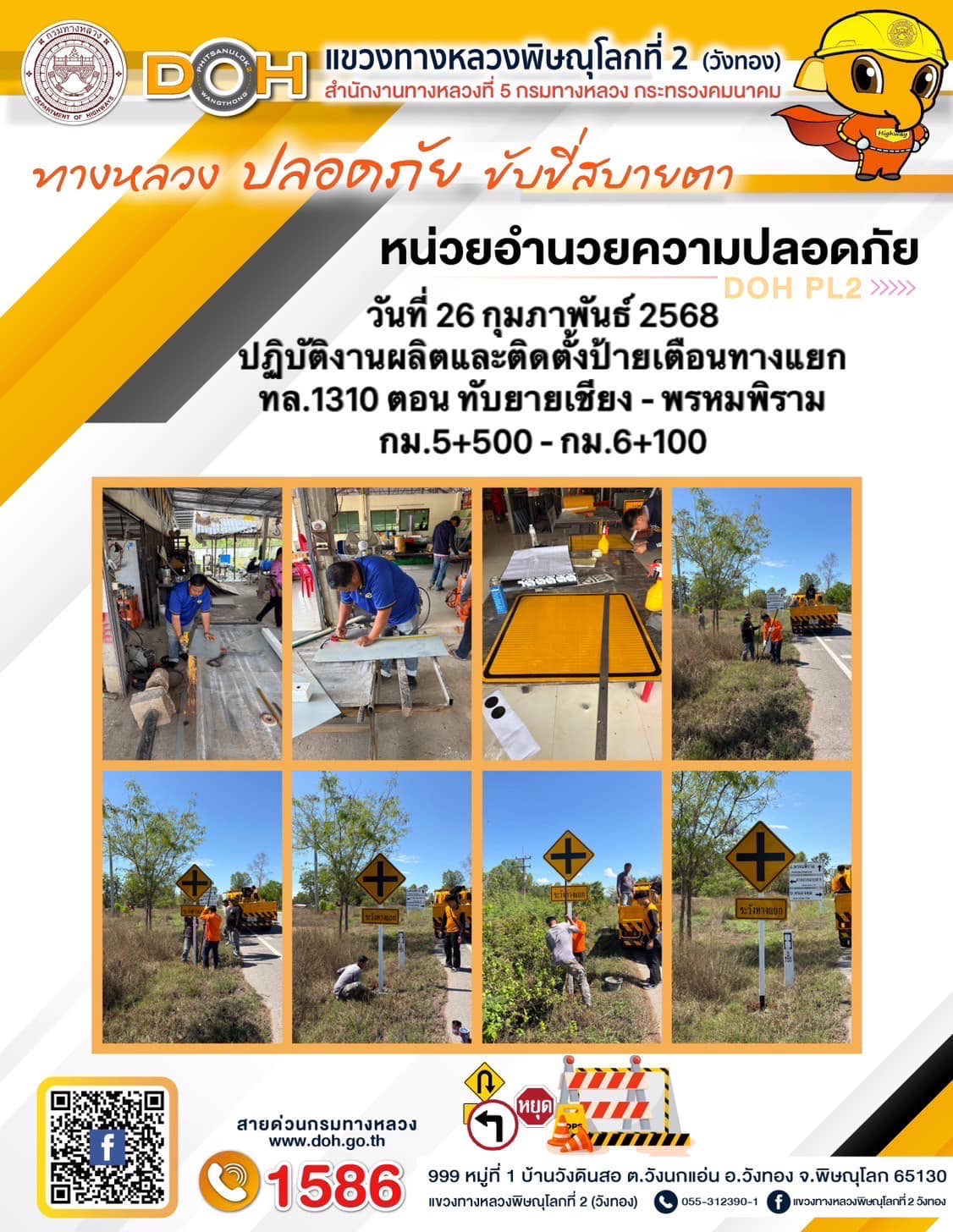 การปฏิบัติงานของ หมวดทางหลวง และ หน่วยงานในสังกัด เพื่ออำนวยความสะดวก และปลอดภัยให้กับประชาชนผู้ใช้เส้นทาง ประจำวันพุธ ที่ 26 กุมภาพันธ์ 2568