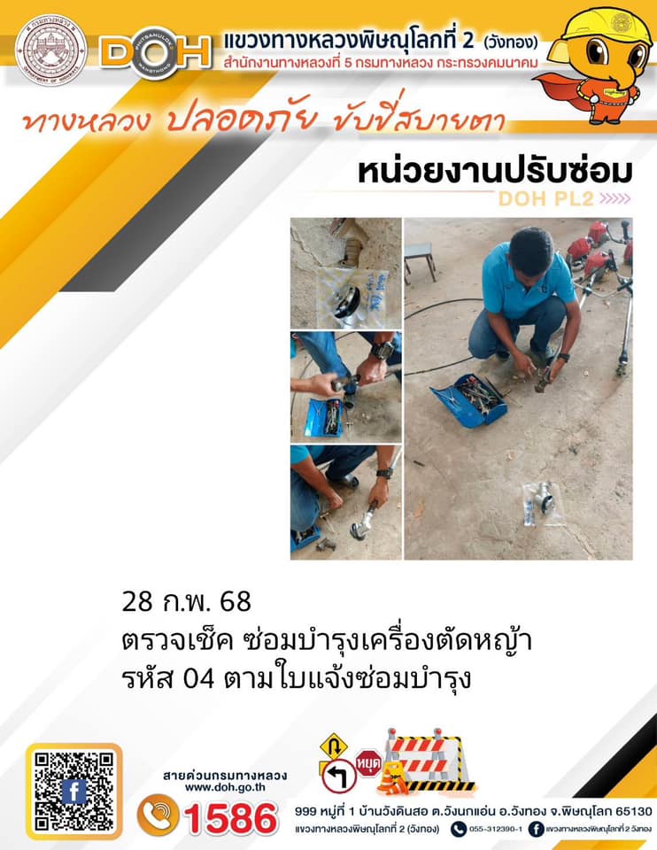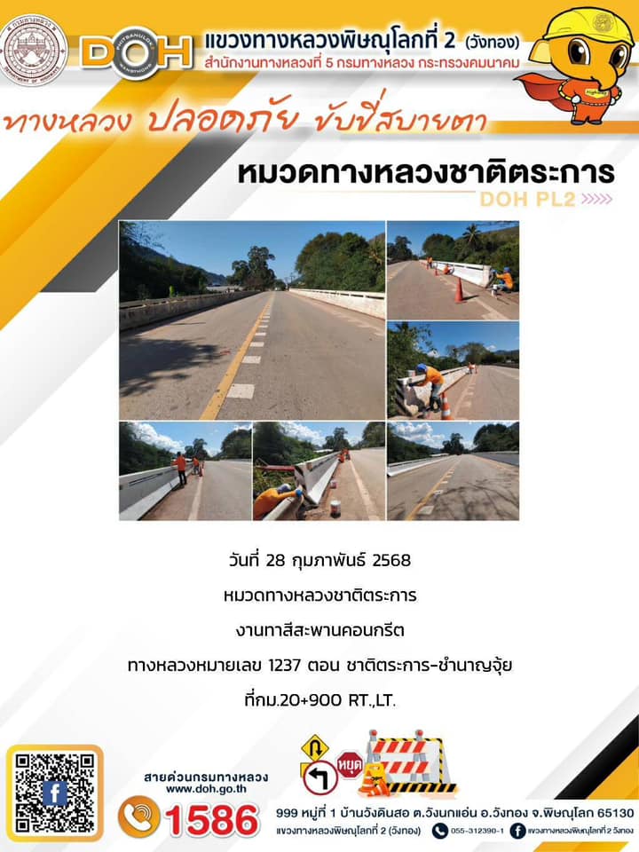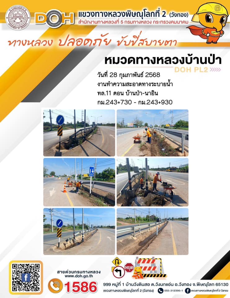 การปฏิบัติงานของ หมวดทางหลวง และ หน่วยงานในสังกัด เพื่ออำนวยความสะดวก และปลอดภัยให้กับประชาชนผู้ใช้เส้นทาง ประจำวันศุกร์ ที่ 28 กุมภาพันธ์ 2568