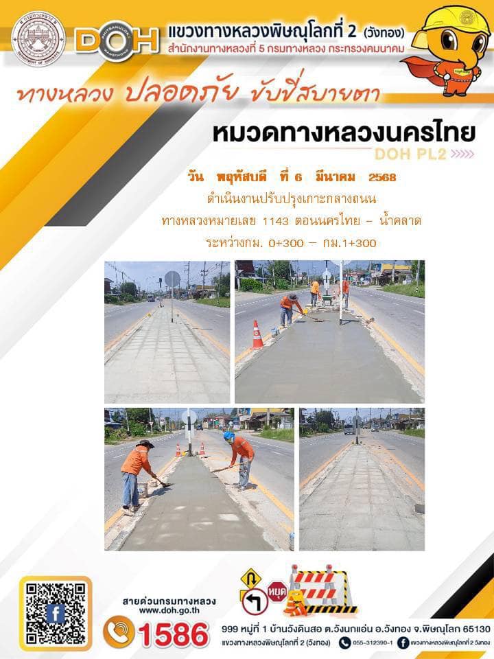 การปฏิบัติงานของ หมวดทางหลวง และ หน่วยงานในสังกัด เพื่ออำนวยความสะดวก และปลอดภัยให้กับประชาชนผู้ใช้เส้นทาง ประจำวันพฤหัสบดี ที่ 6 มีนาคม 2568