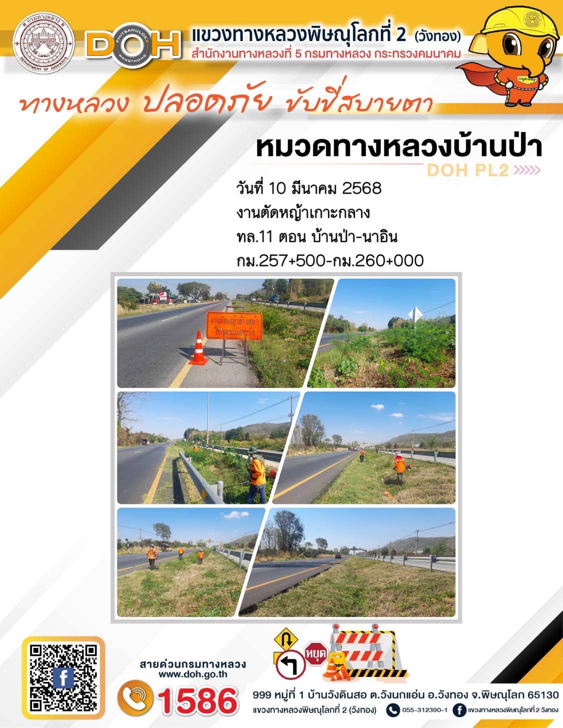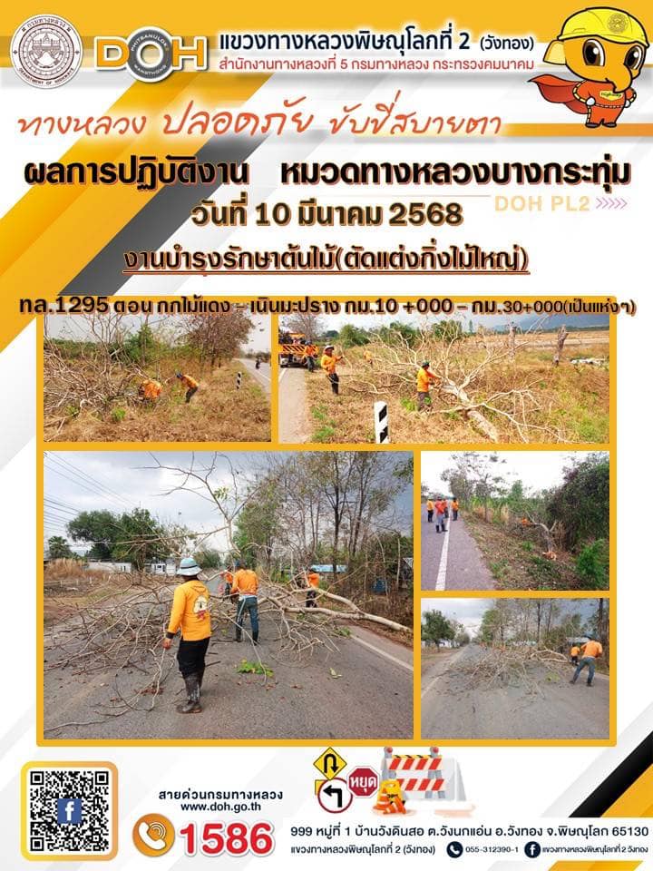 การปฏิบัติงานของ หมวดทางหลวง และ หน่วยงานในสังกัด เพื่ออำนวยความสะดวก และปลอดภัยให้กับประชาชนผู้ใช้เส้นทาง ประจำวันจันทร์ ที่ 10 มีนาคม 2568