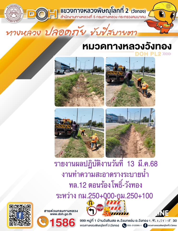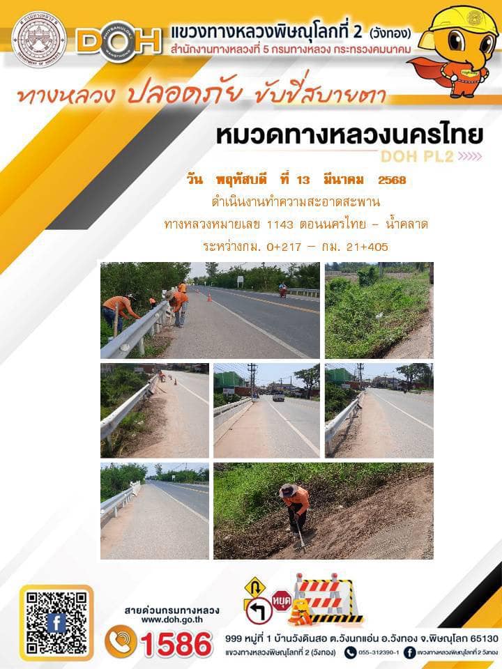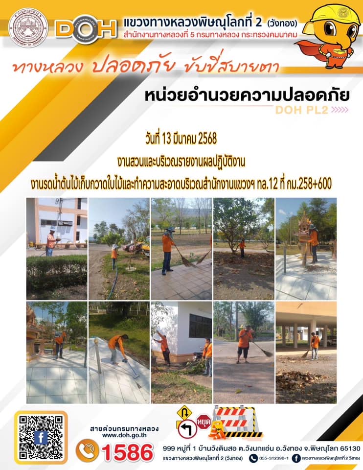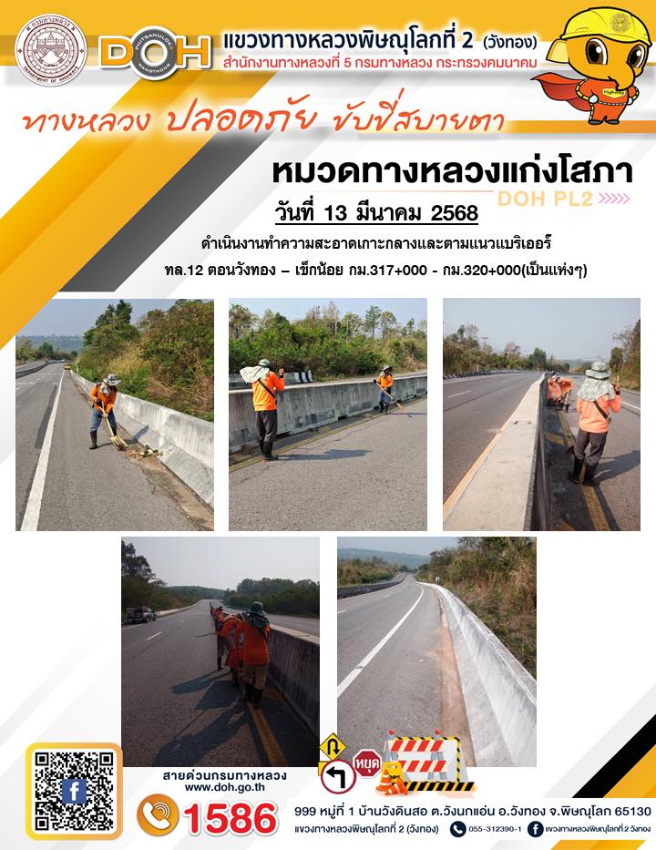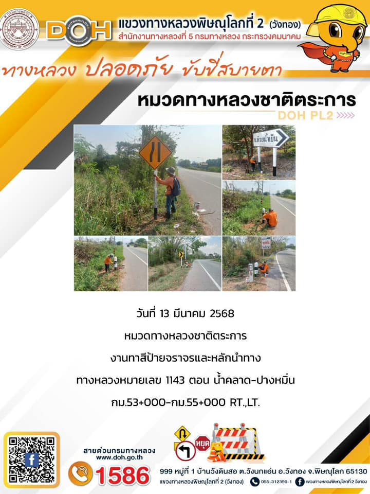 การปฏิบัติงานของ หมวดทางหลวง และ หน่วยงานในสังกัด เพื่ออำนวยความสะดวก และปลอดภัยให้กับประชาชนผู้ใช้เส้นทาง ประจำวันพฤหัสบดี ที่ 13 มีนาคม 2568