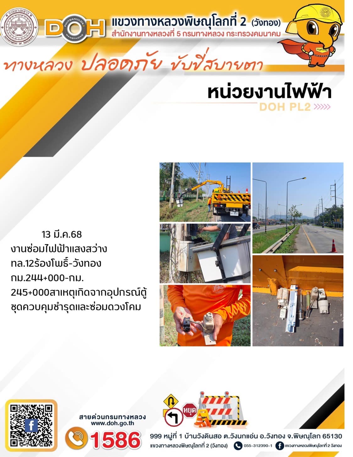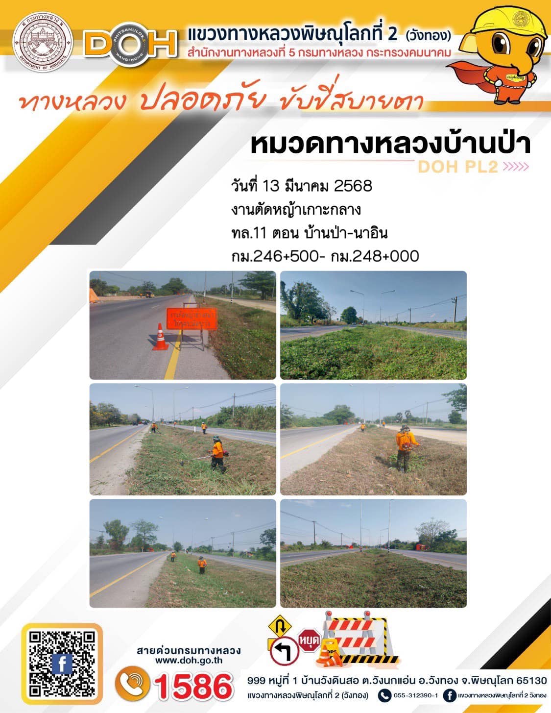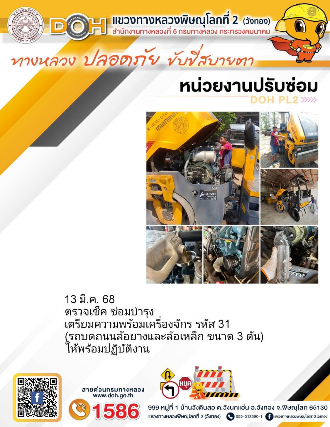 การปฏิบัติงานของ หมวดทางหลวง และ หน่วยงานในสังกัด เพื่ออำนวยความสะดวก และปลอดภัยให้กับประชาชนผู้ใช้เส้นทาง ประจำวันพฤหัสบดี ที่ 13 มีนาคม 2568