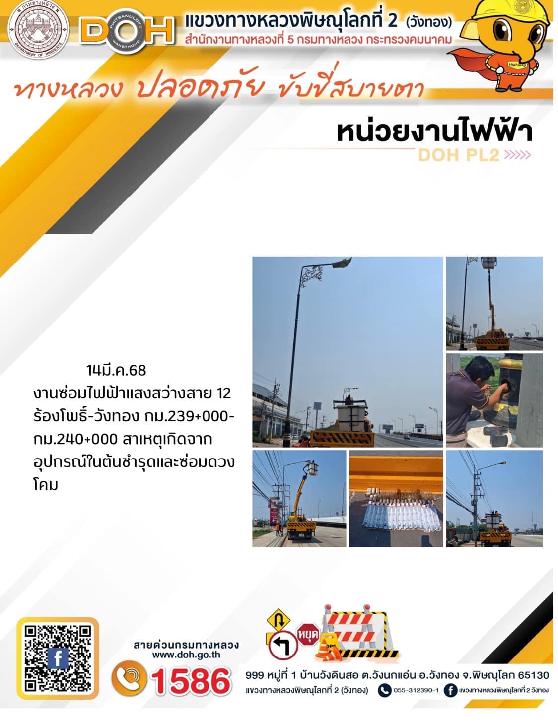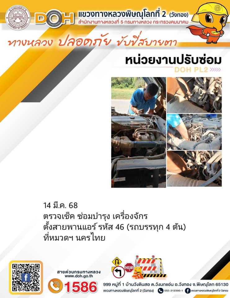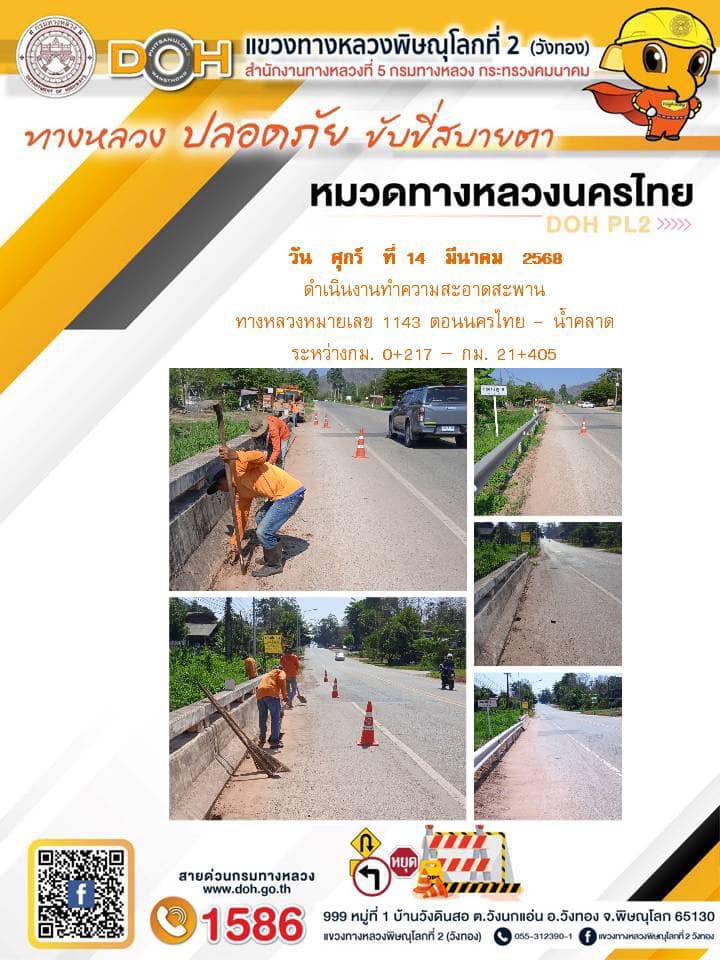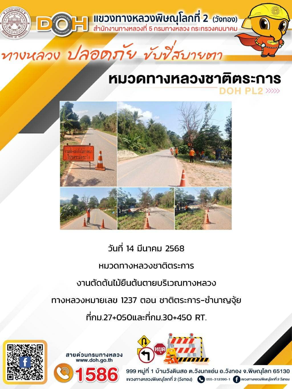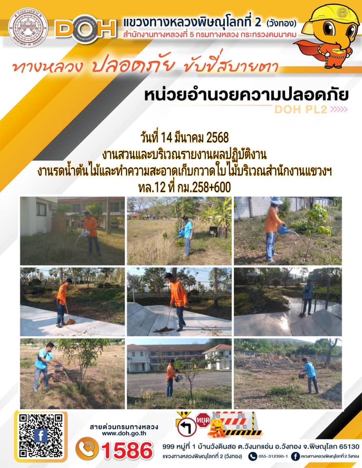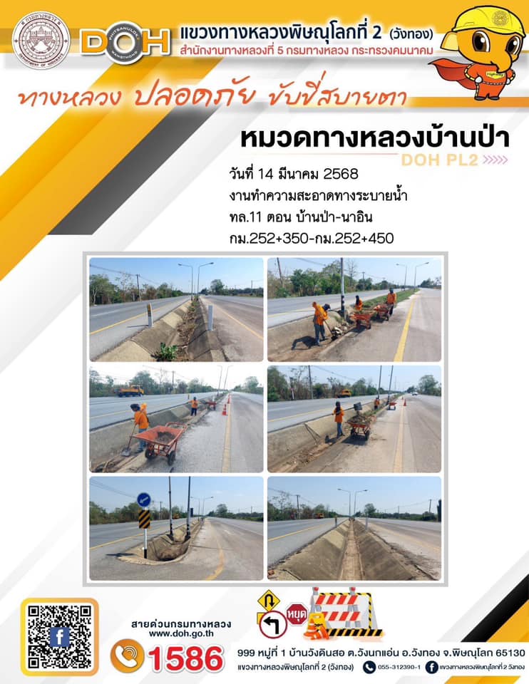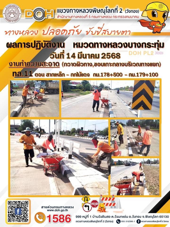 การปฏิบัติงานของ หมวดทางหลวง และ หน่วยงานในสังกัด เพื่ออำนวยความสะดวก และปลอดภัยให้กับประชาชนผู้ใช้เส้นทาง ประจำวันศุกร์ ที่ 14 มีนาคม 2568