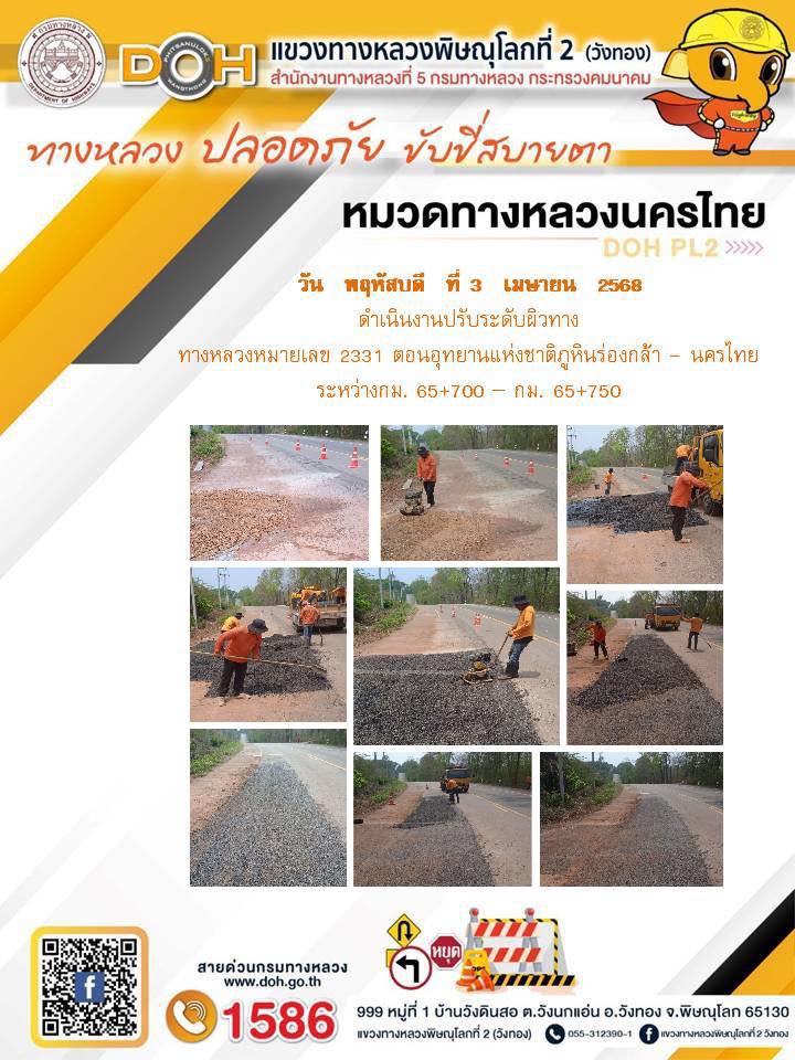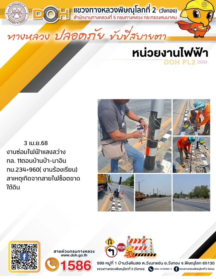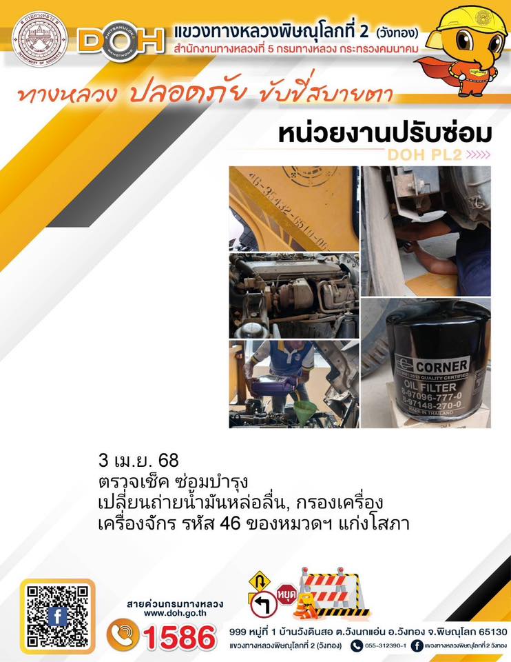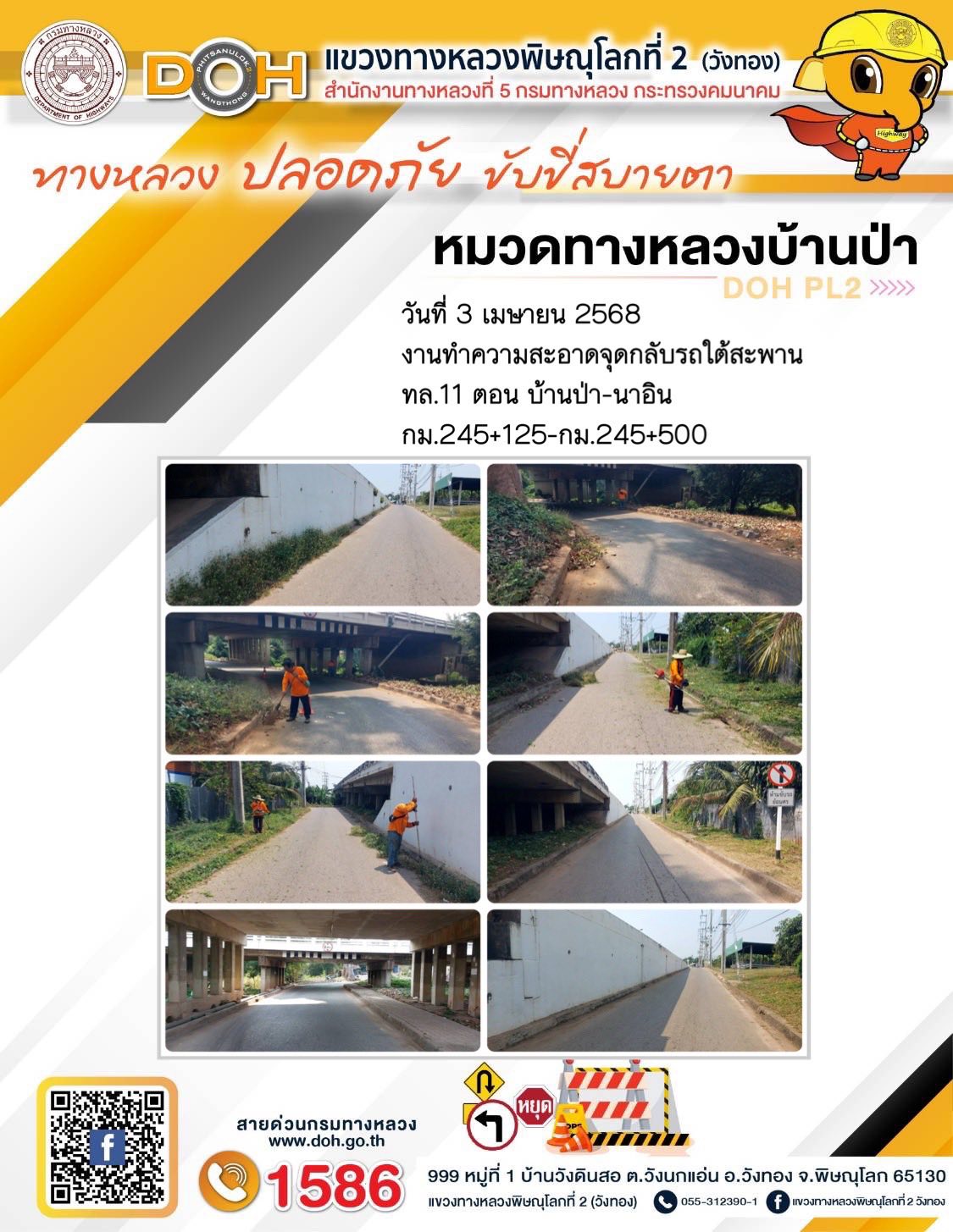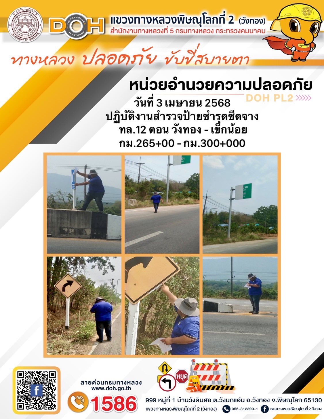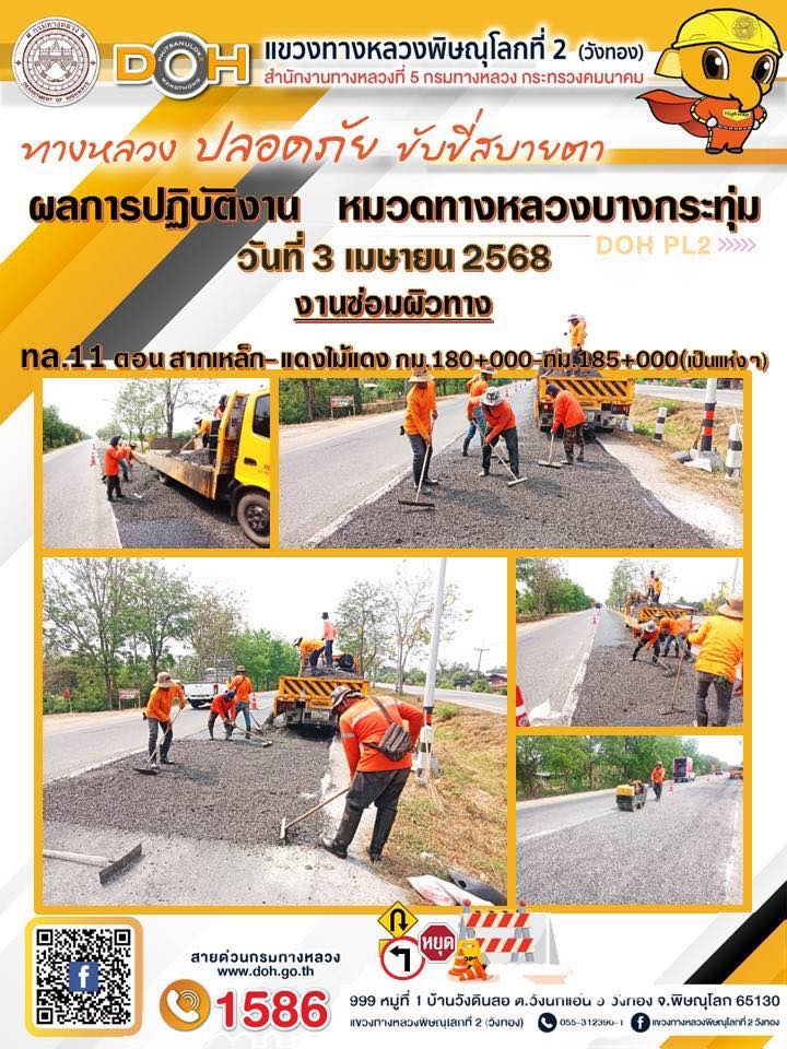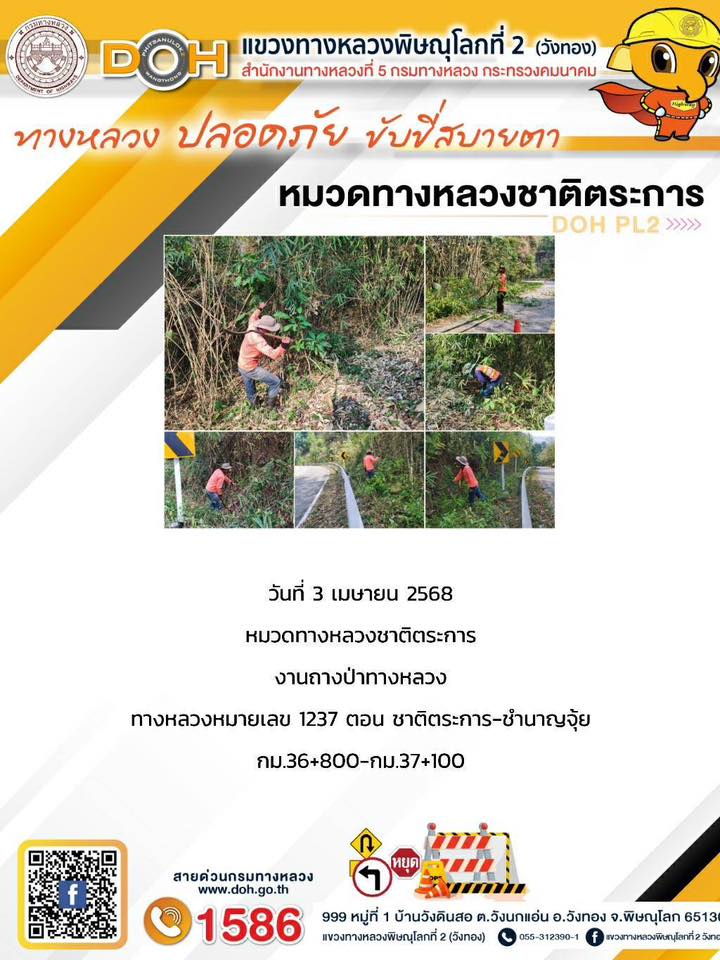 การปฏิบัติงานของ หมวดทางหลวง และ หน่วยงานในสังกัด เพื่ออำนวยความสะดวก และปลอดภัยให้กับประชาชนผู้ใช้เส้นทาง ประจำวันพฤหัสบดี ที่ 3 เมษายน 2568