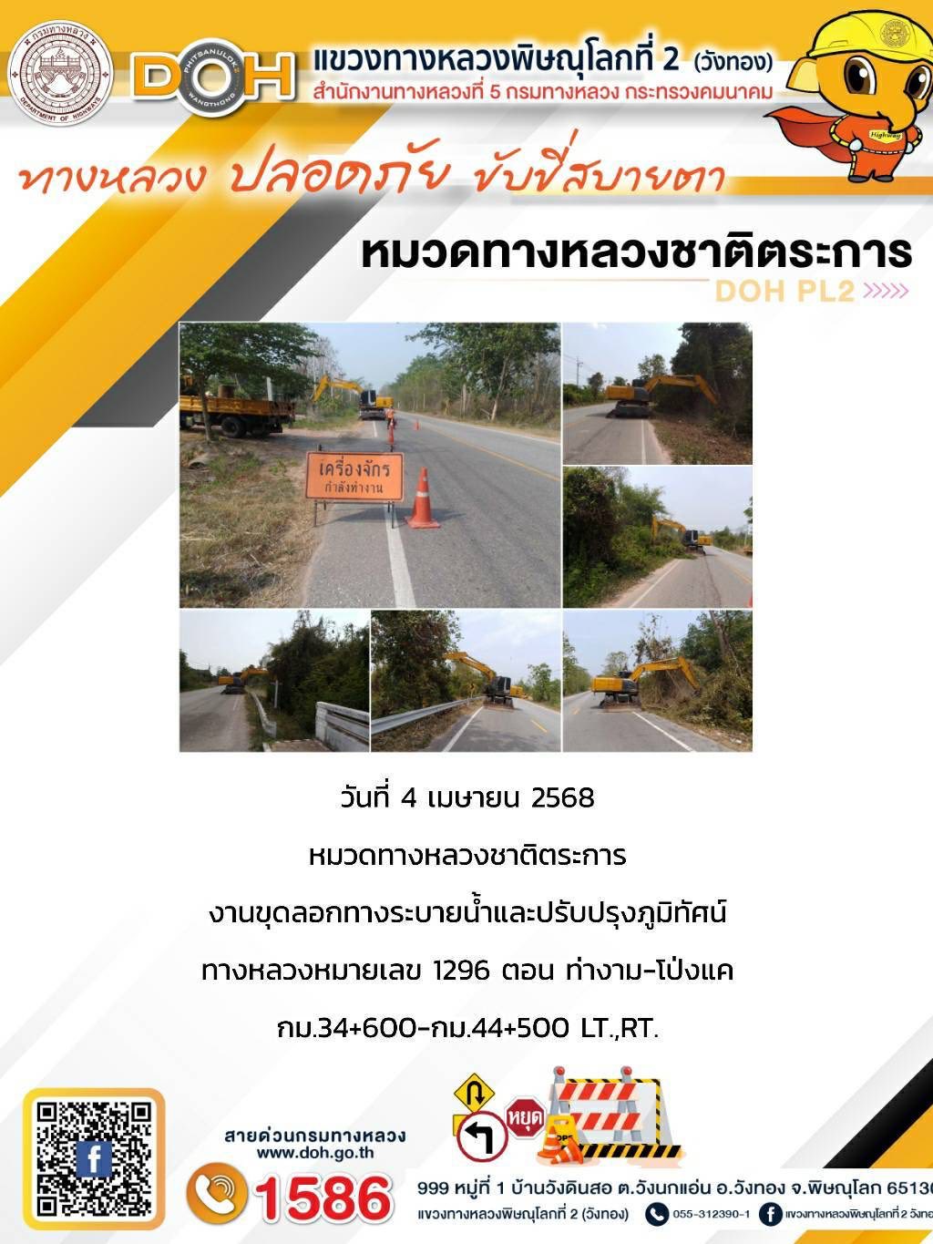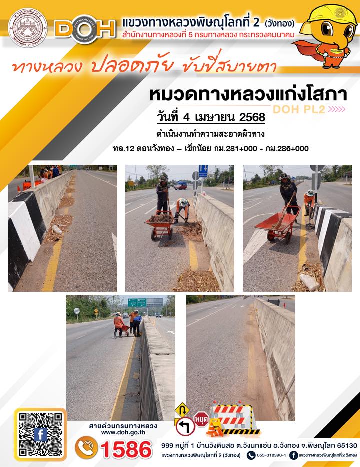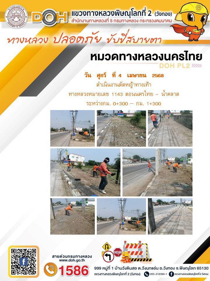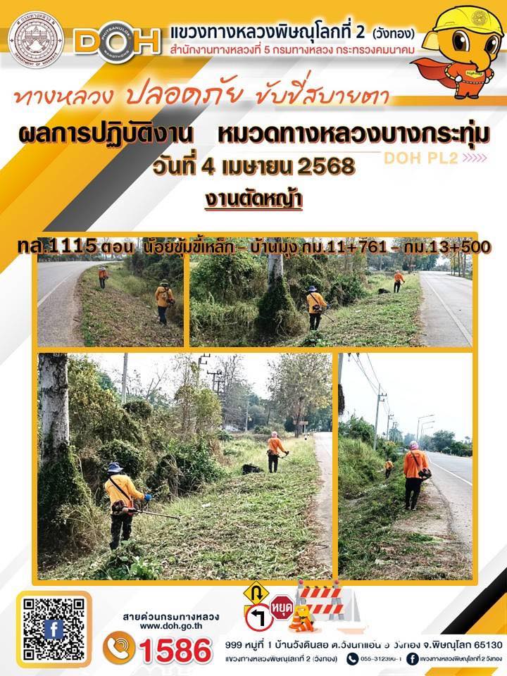 การปฏิบัติงานของ หมวดทางหลวง และ หน่วยงานในสังกัด เพื่ออำนวยความสะดวก และปลอดภัยให้กับประชาชนผู้ใช้เส้นทาง ประจำวันศุกร์ ที่ 4 เมษายน 2568