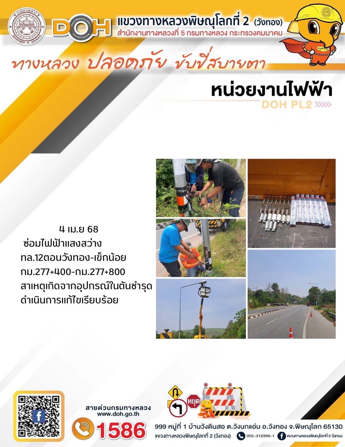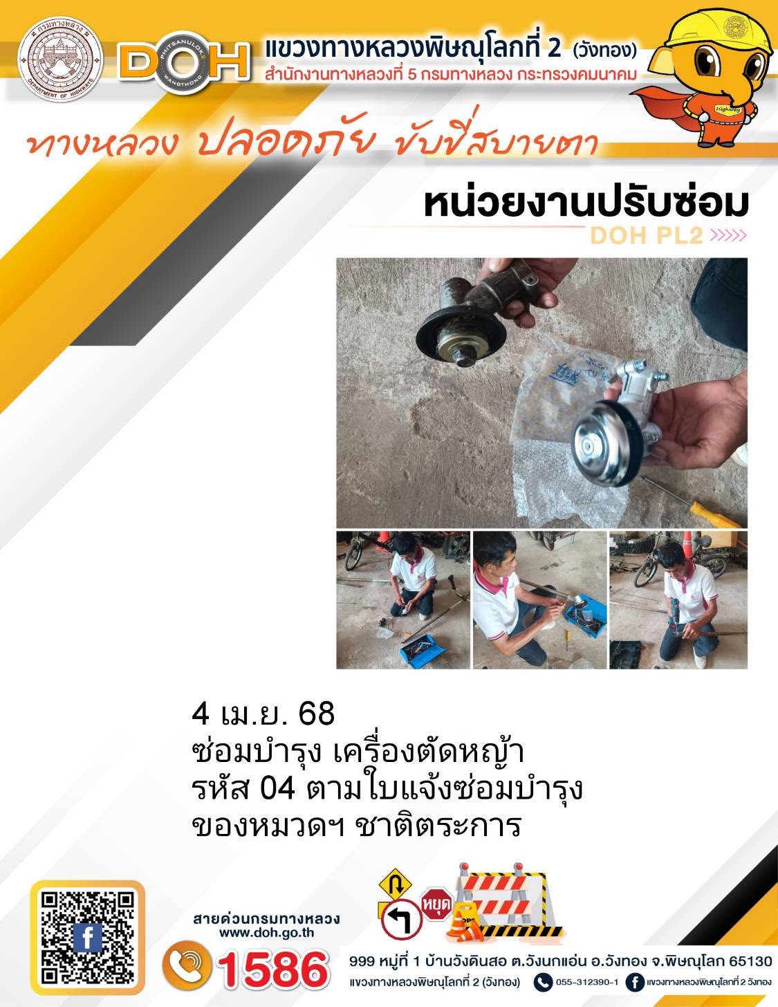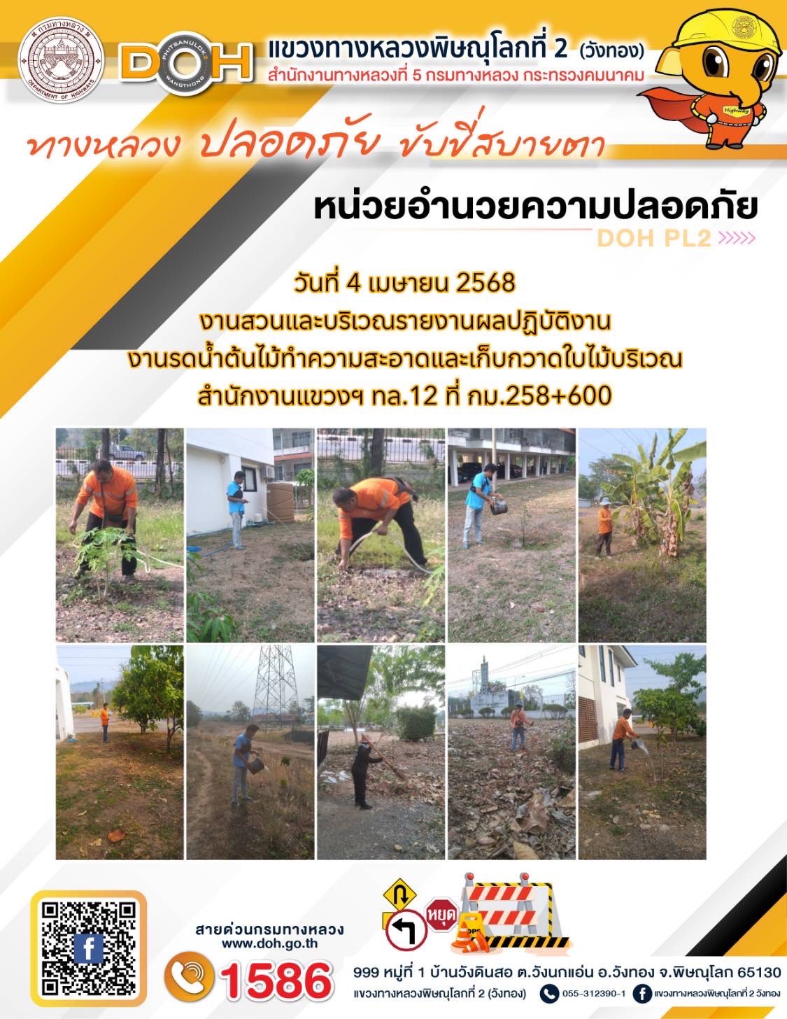 การปฏิบัติงานของ หมวดทางหลวง และ หน่วยงานในสังกัด เพื่ออำนวยความสะดวก และปลอดภัยให้กับประชาชนผู้ใช้เส้นทาง ประจำวันศุกร์ ที่ 4 เมษายน 2568