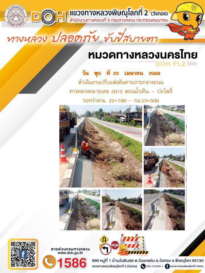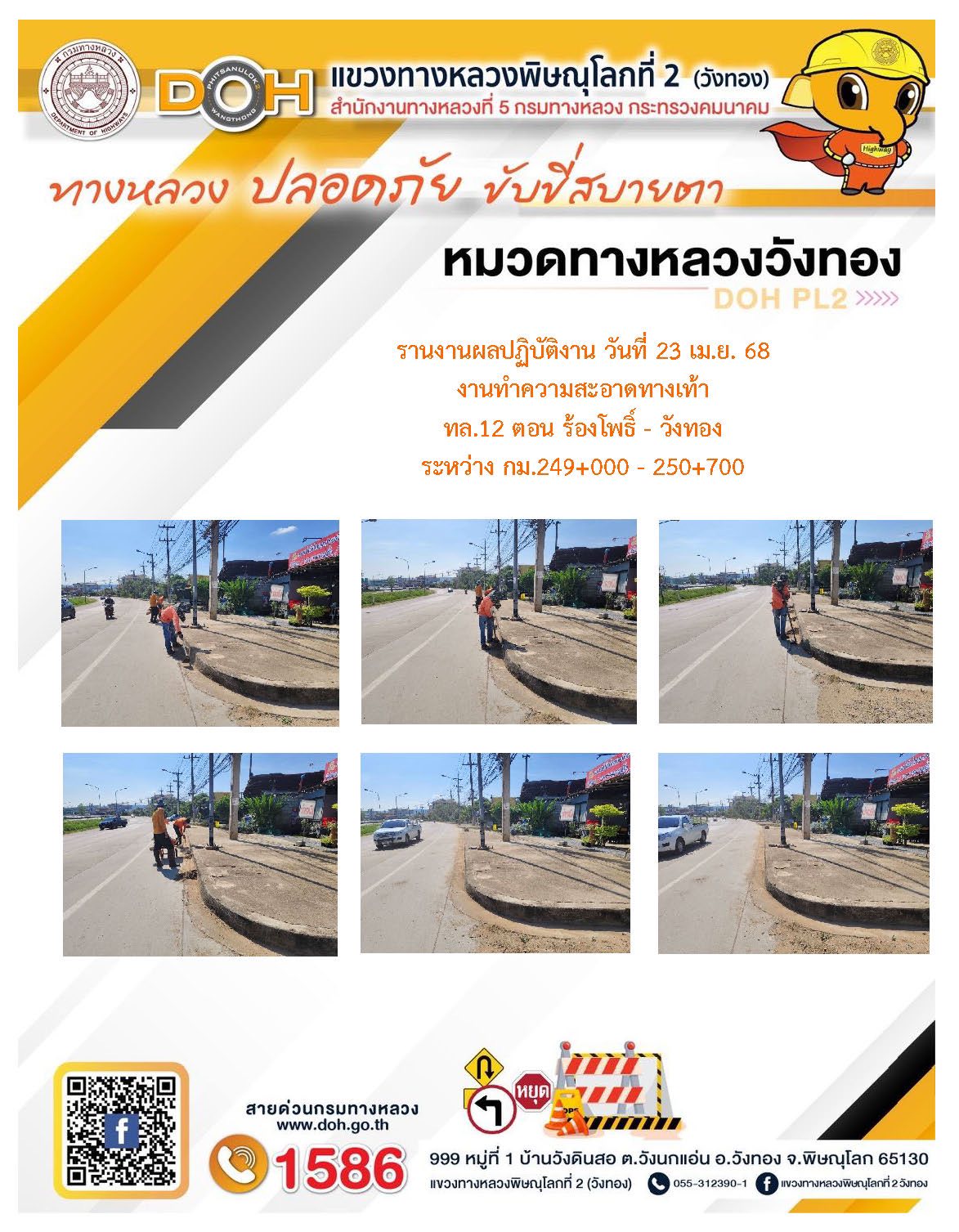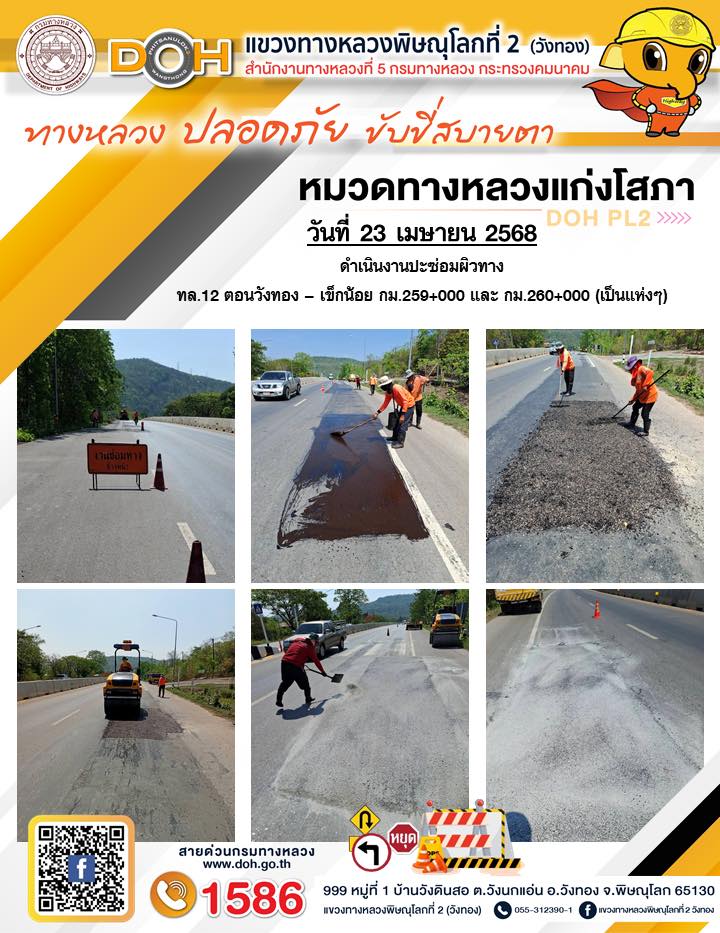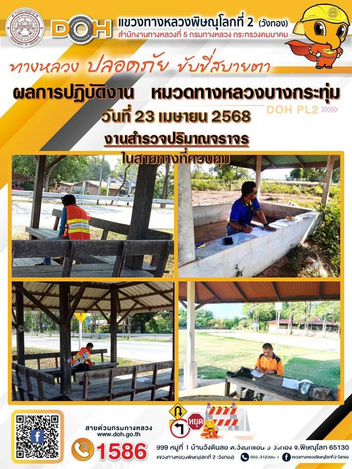 การปฏิบัติงานของ หมวดทางหลวง และ หน่วยงานในสังกัด เพื่ออำนวยความสะดวก และปลอดภัยให้กับประชาชนผู้ใช้เส้นทาง ประจำวันพุธ ที่ 23 เมษายน 2568