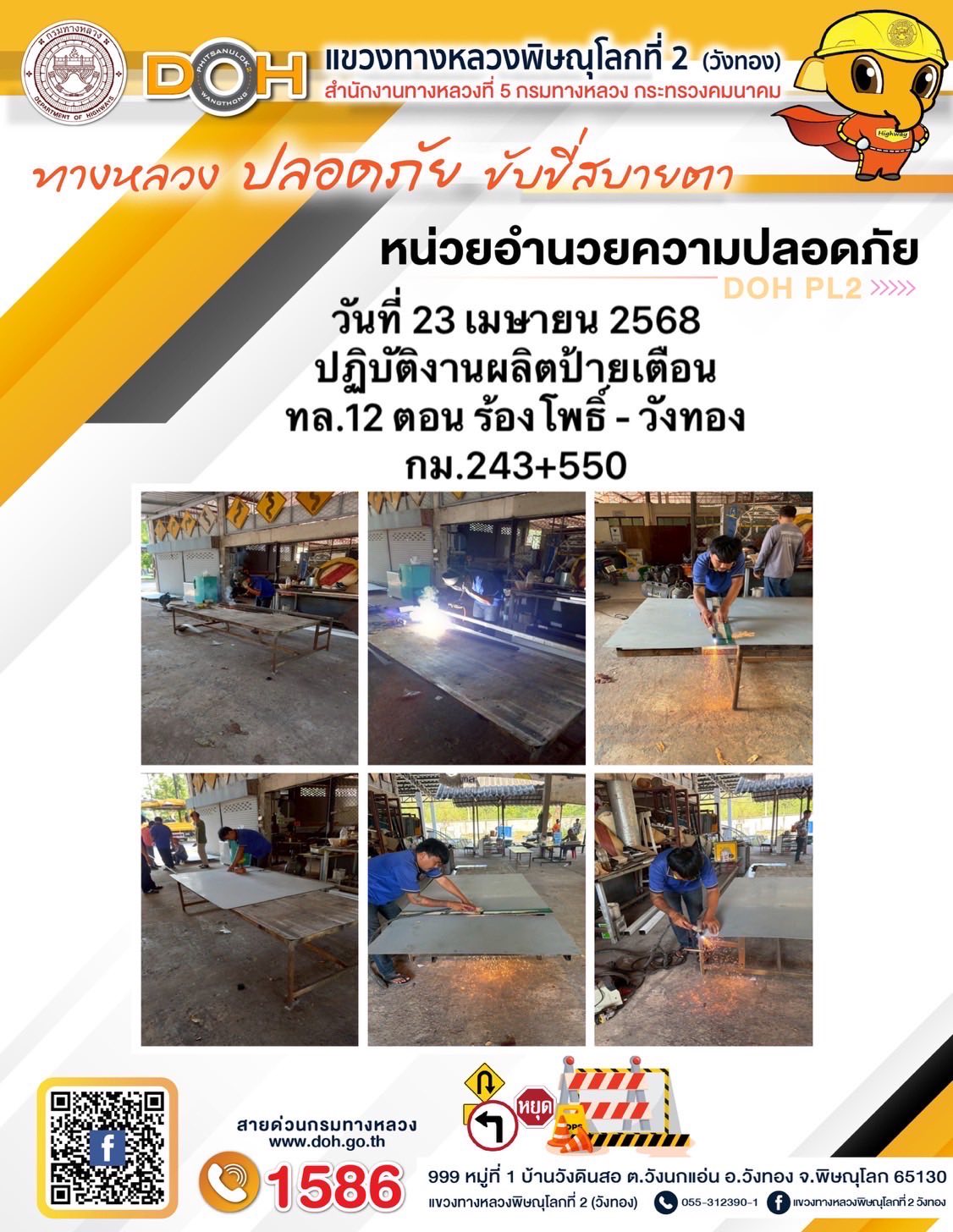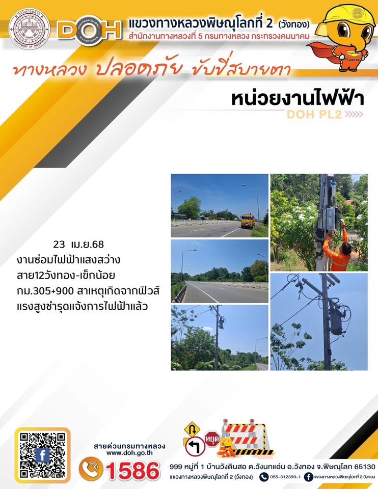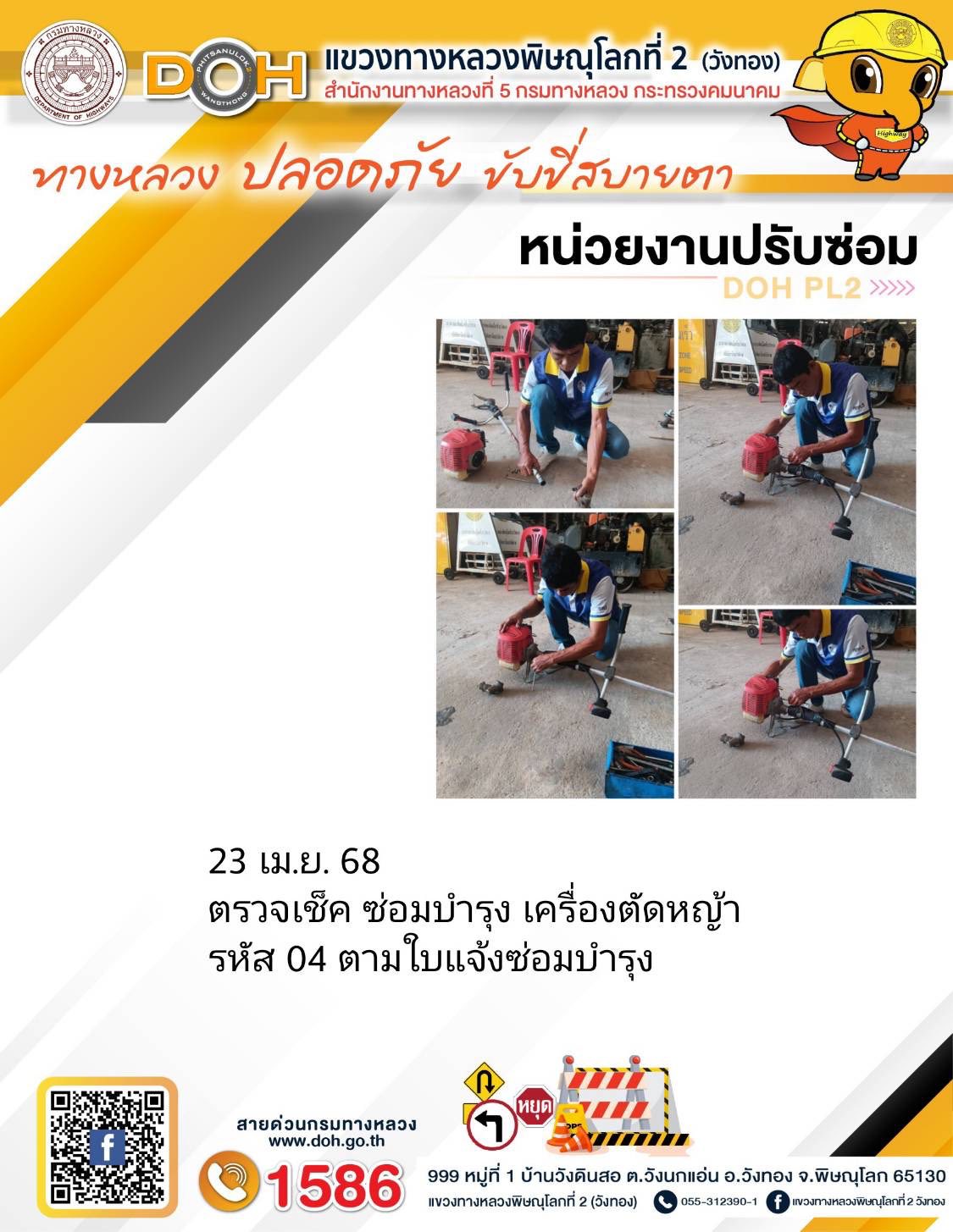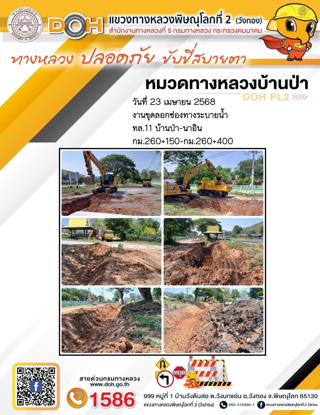 การปฏิบัติงานของ หมวดทางหลวง และ หน่วยงานในสังกัด เพื่ออำนวยความสะดวก และปลอดภัยให้กับประชาชนผู้ใช้เส้นทาง ประจำวันพุธ ที่ 23 เมษายน 2568