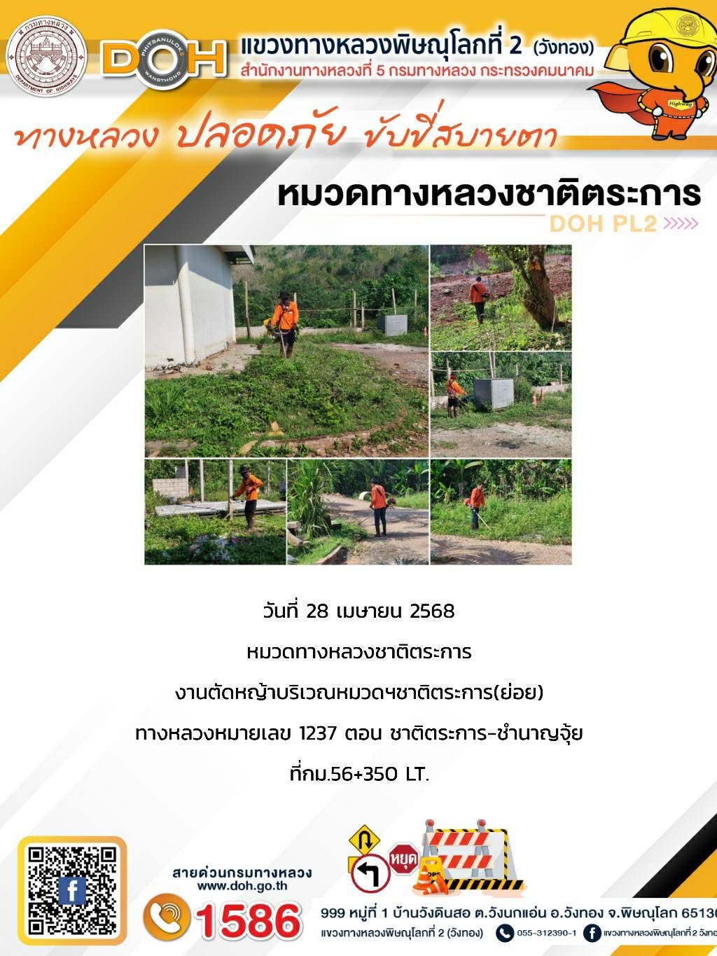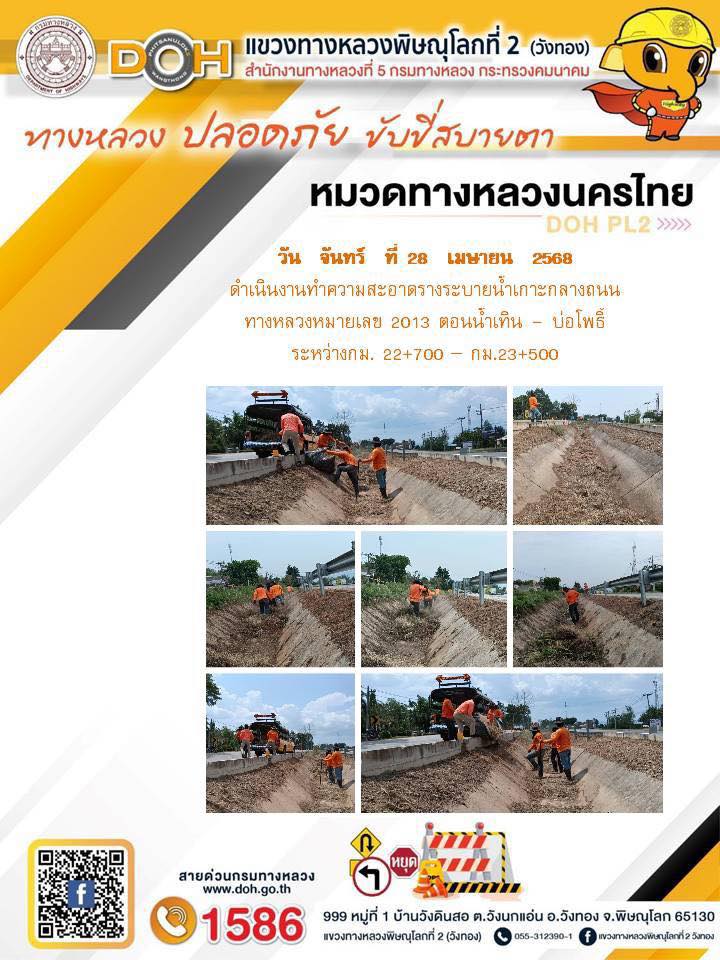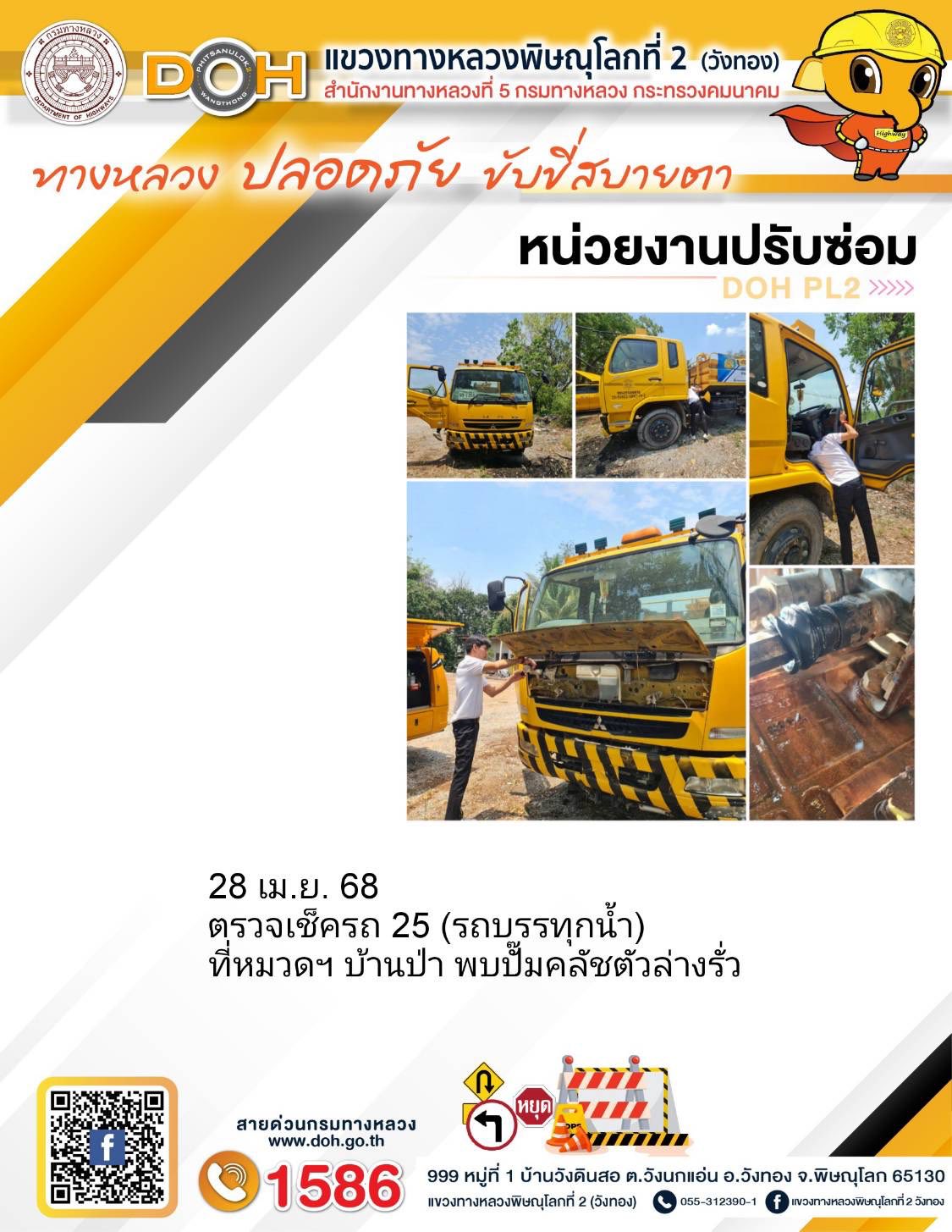 การปฏิบัติงานของ หมวดทางหลวง และ หน่วยงานในสังกัด เพื่ออำนวยความสะดวก และปลอดภัยให้กับประชาชนผู้ใช้เส้นทาง ประจำวันจันทร์ ที่ 28 เมษายน 2568