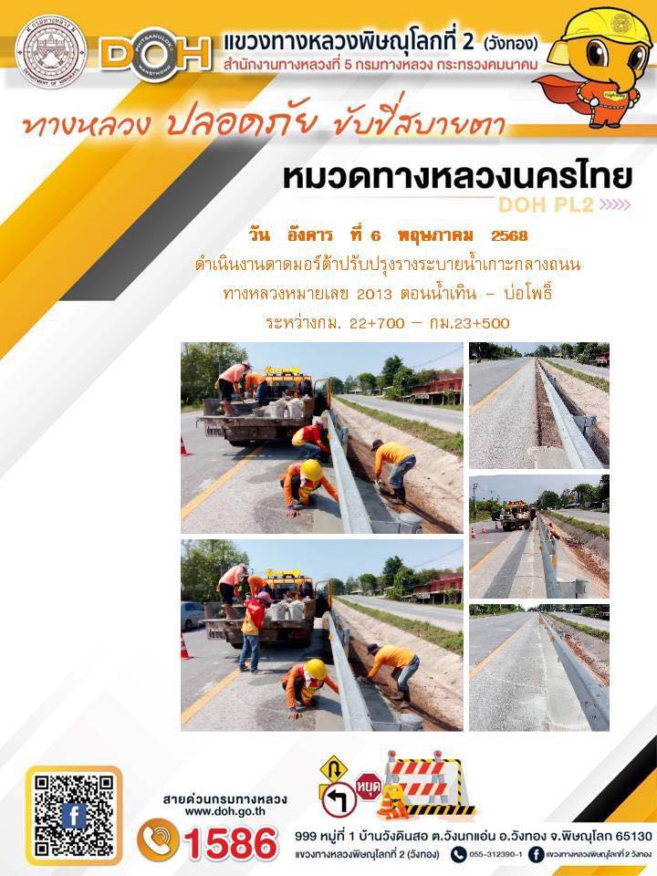 การปฏิบัติงานของ หมวดทางหลวง และ หน่วยงานในสังกัด เพื่ออำนวยความสะดวก และปลอดภัยให้กับประชาชนผู้ใช้เส้นทาง ประจำวันอังคาร ที่ 6 พฤษภาคม 2568
