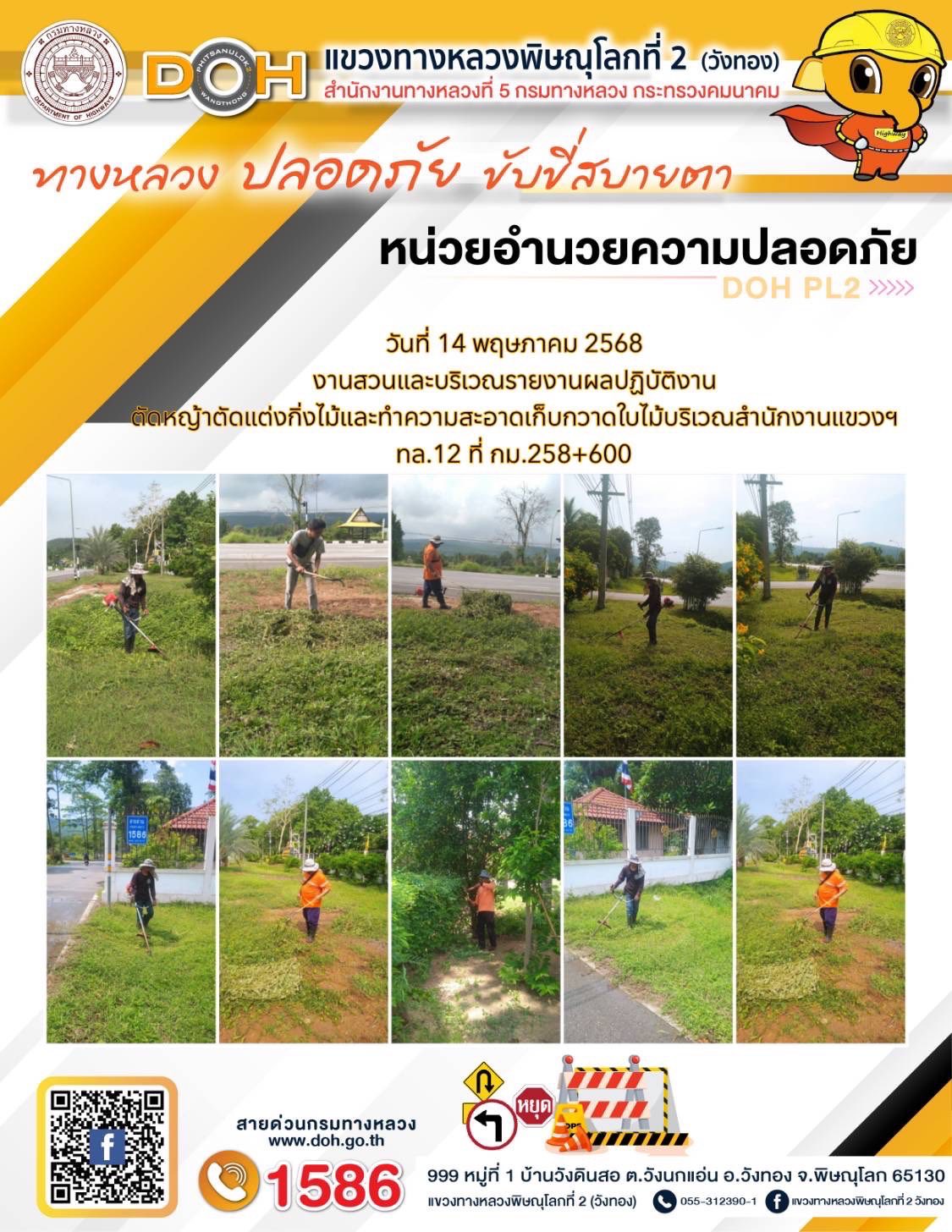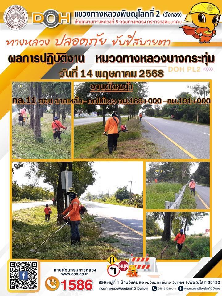 การปฏิบัติงานของ หมวดทางหลวง และ หน่วยงานในสังกัด เพื่ออำนวยความสะดวก และปลอดภัยให้กับประชาชนผู้ใช้เส้นทาง ประจำวันพุธ ที่ 14 พฤษภาคม 2568