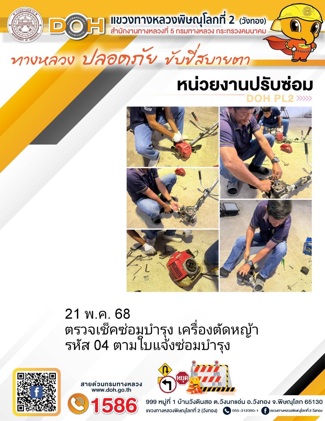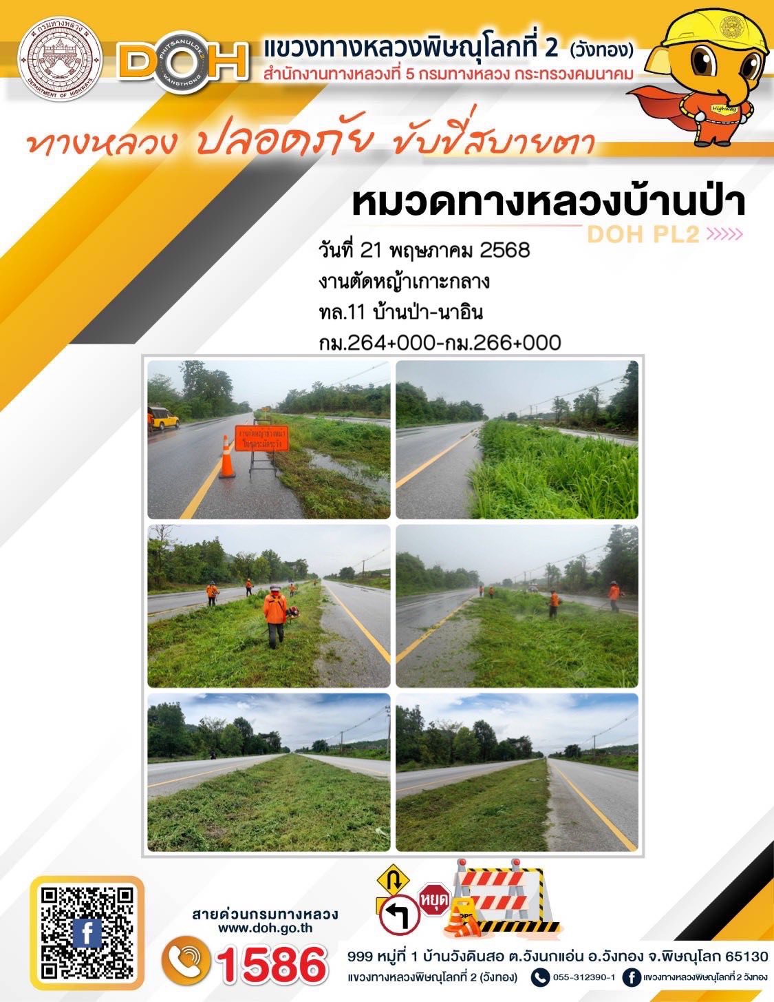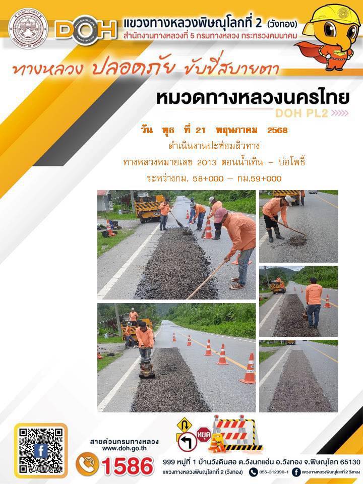การปฏิบัติงานของ หมวดทางหลวง และ หน่วยงานในสังกัด เพื่ออำนวยความสะดวก และปลอดภัยให้กับประชาชนผู้ใช้เส้นทาง ประจำวันพุธ ที่ 21 พฤษภาคม 2568