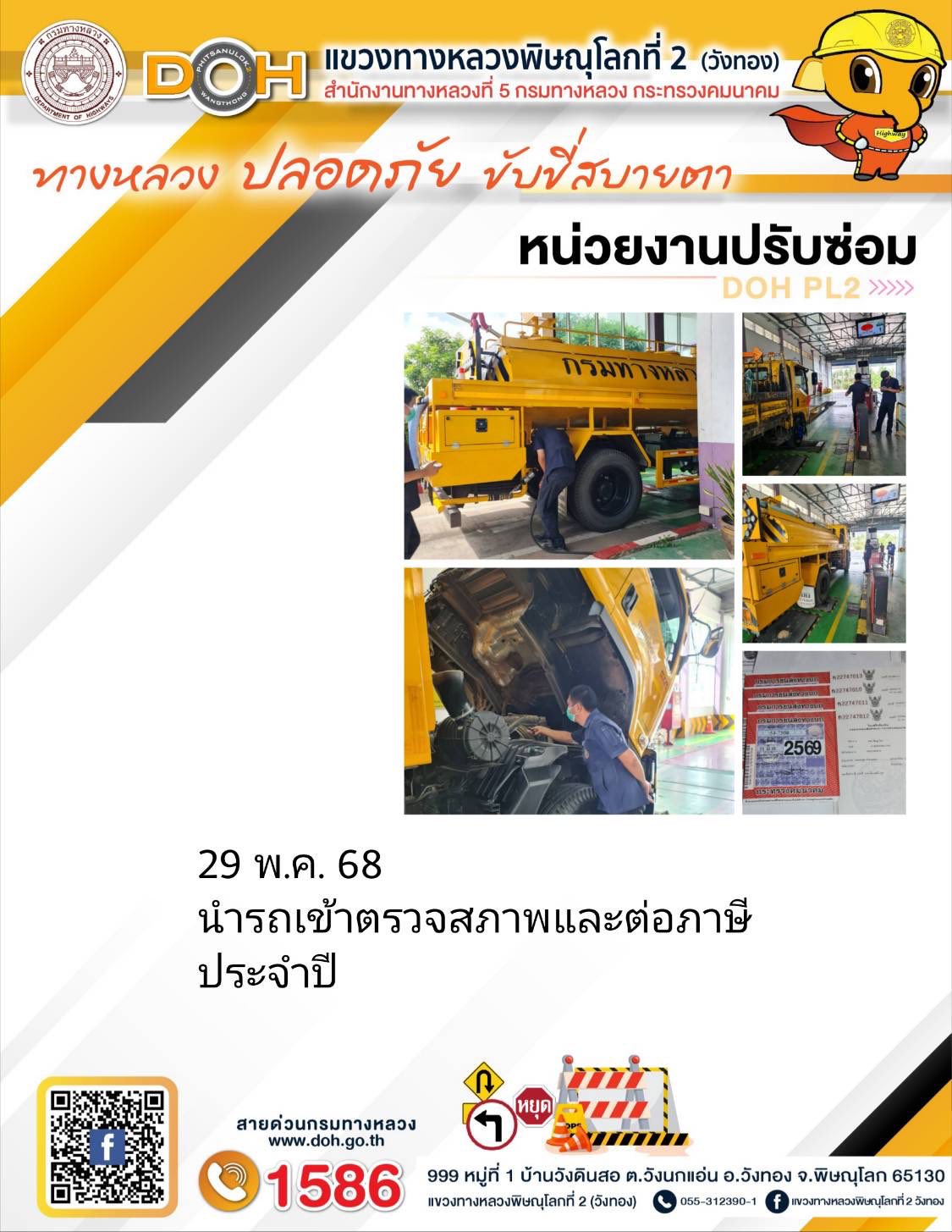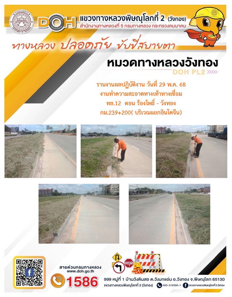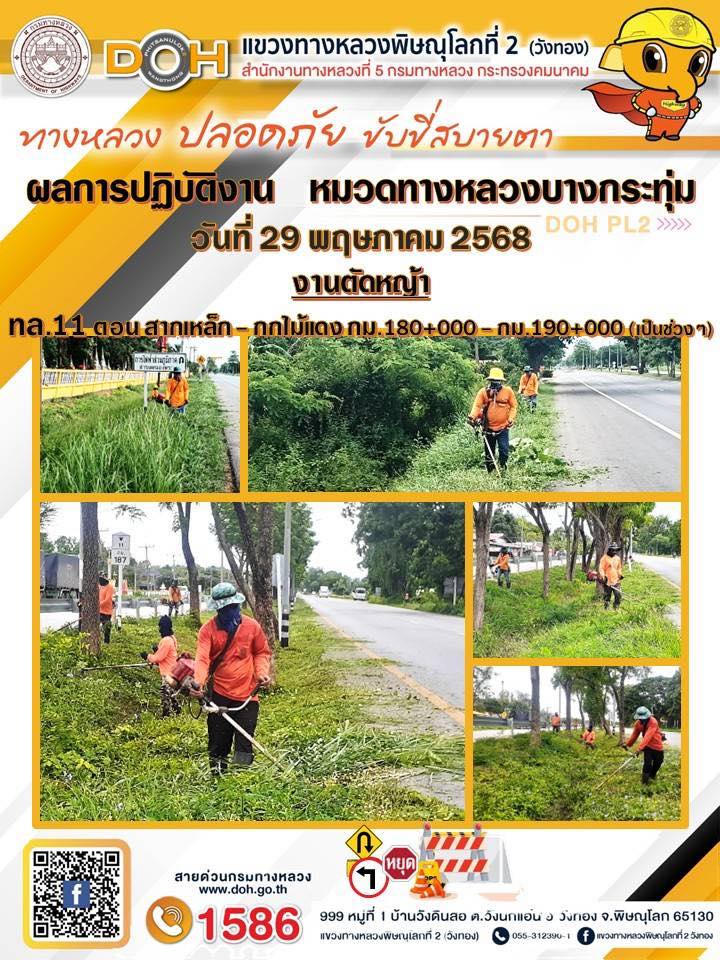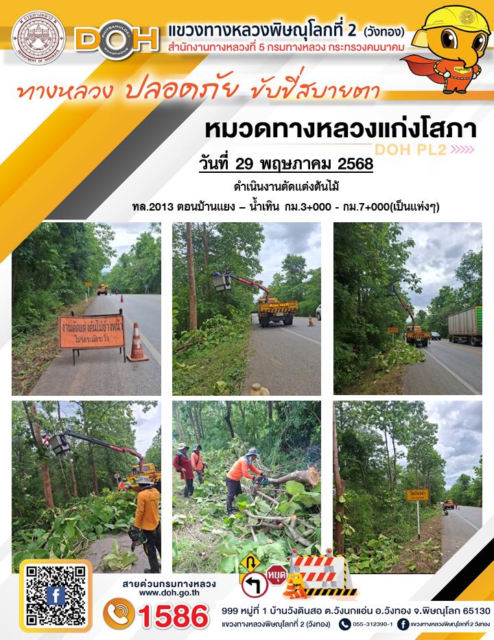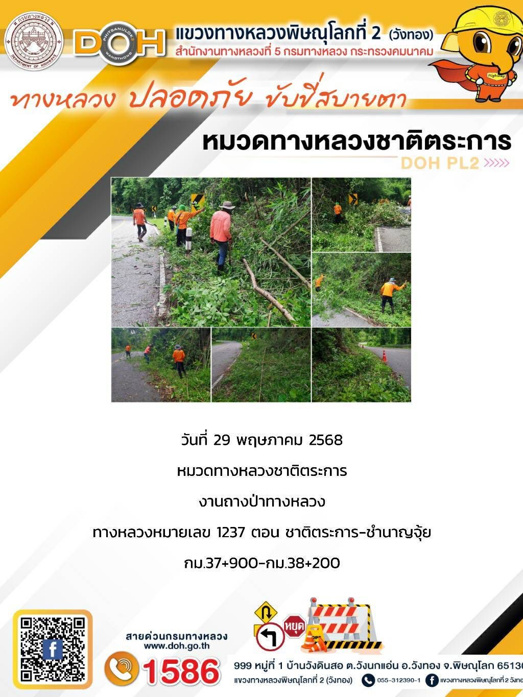 การปฏิบัติงานของ หมวดทางหลวง และ หน่วยงานในสังกัด เพื่ออำนวยความสะดวก และปลอดภัยให้กับประชาชนผู้ใช้เส้นทาง ประจำวันพฤหัสบดี ที่ 29 พฤษภาคม 2568