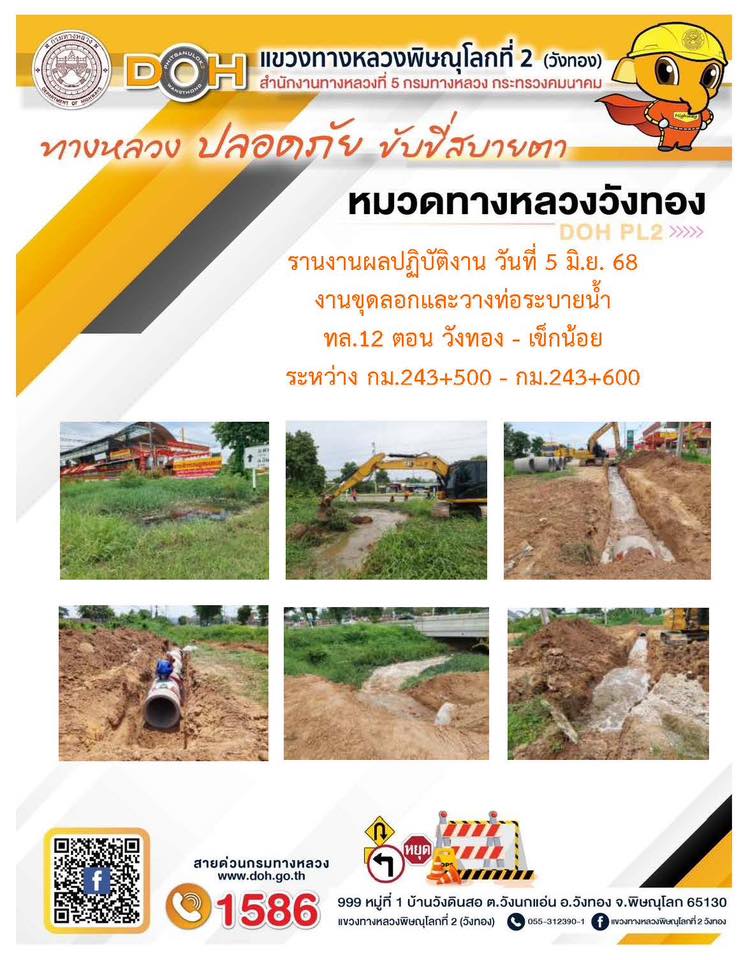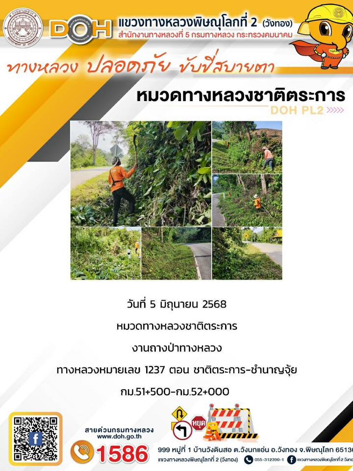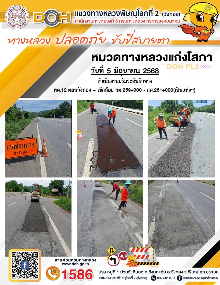 การปฏิบัติงานของ หมวดทางหลวง และ หน่วยงานในสังกัด เพื่ออำนวยความสะดวก และปลอดภัยให้กับประชาชนผู้ใช้เส้นทาง ประจำวันพฤหัสบดี ที่ 5 มิถุนายน 2568
