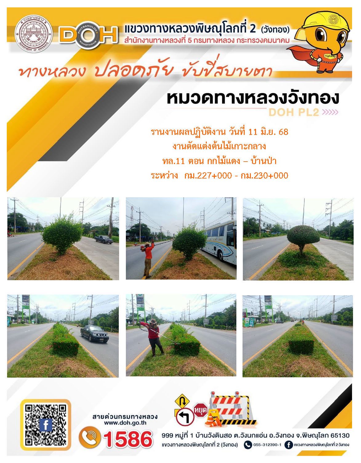 การปฏิบัติงานของ หมวดทางหลวง และ หน่วยงานในสังกัด เพื่ออำนวยความสะดวก และปลอดภัยให้กับประชาชนผู้ใช้เส้นทาง ประจำวันพุธ ที่ 11 มิถุนายน 2568