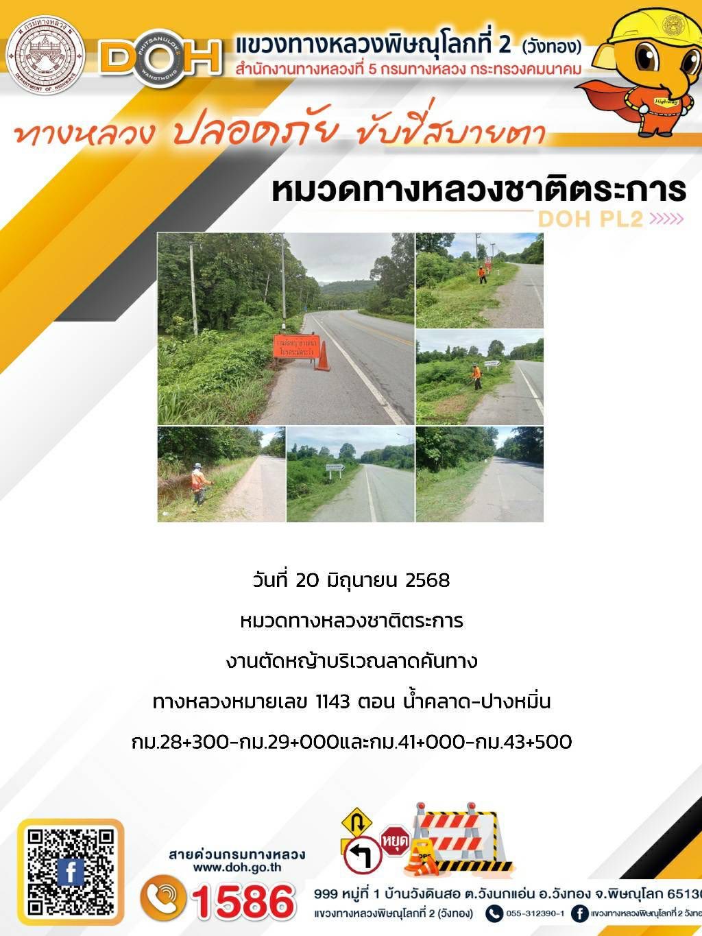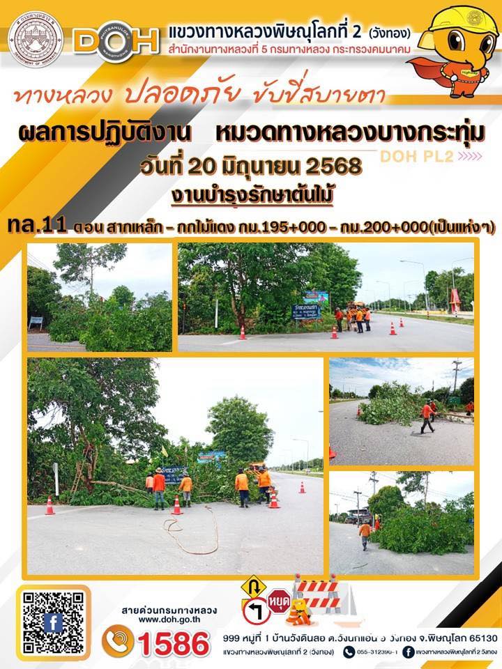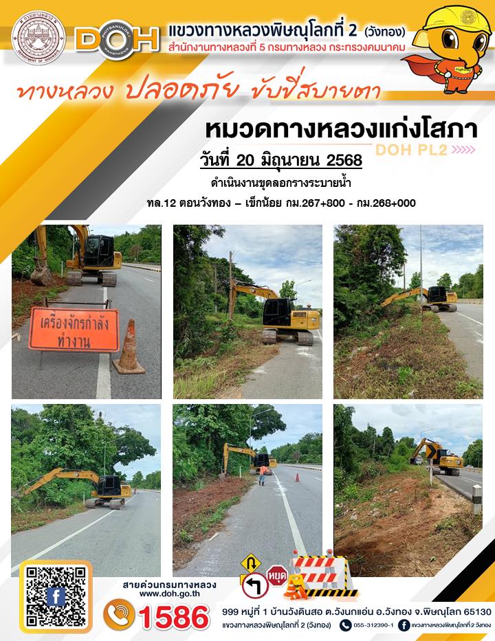 การปฏิบัติงานของ หมวดทางหลวง และ หน่วยงานในสังกัด เพื่ออำนวยความสะดวก และปลอดภัยให้กับประชาชนผู้ใช้เส้นทาง ประจำวันศุกร์ ที่ 20 มิถุนายน 2568