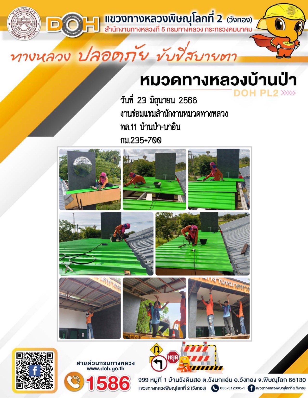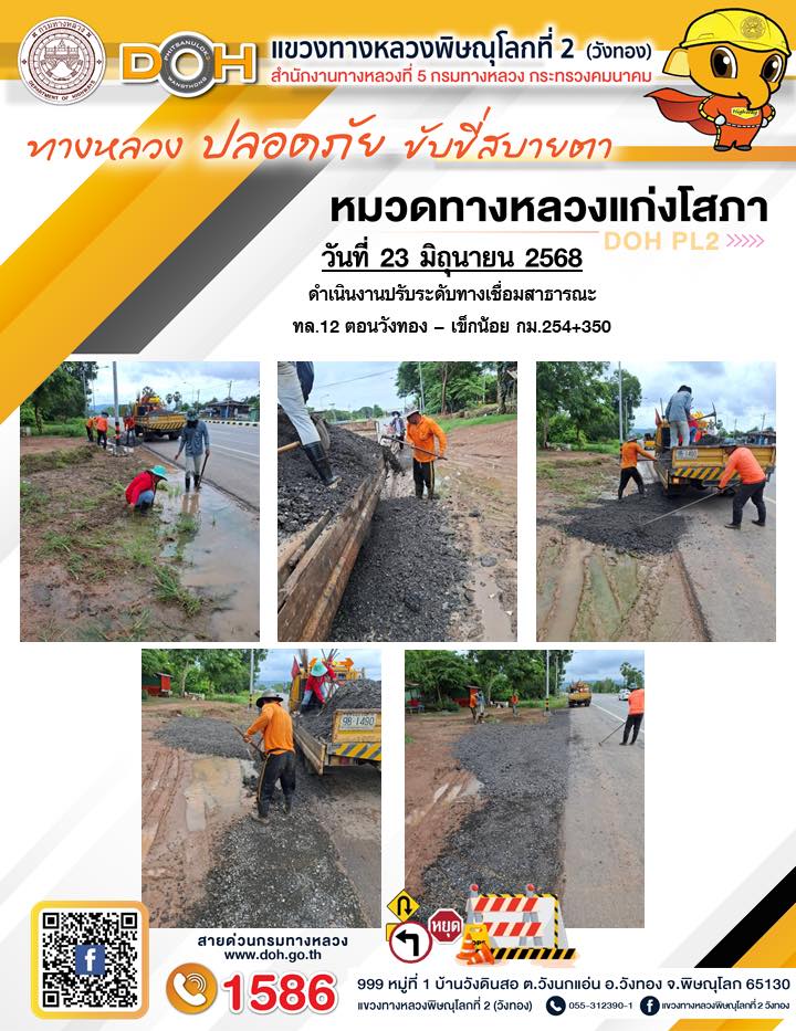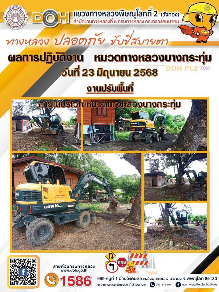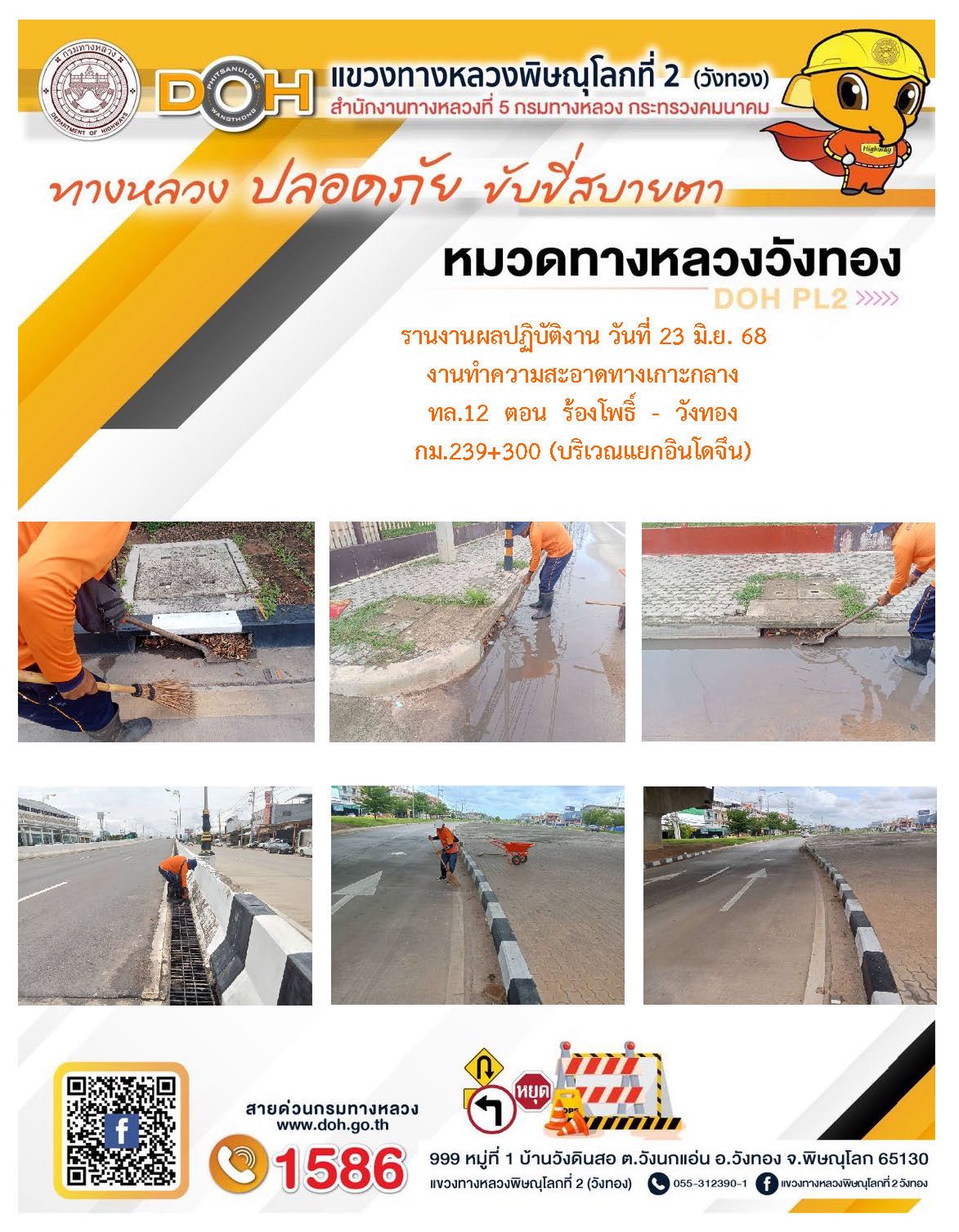 การปฏิบัติงานของ หมวดทางหลวง และ หน่วยงานในสังกัด เพื่ออำนวยความสะดวก และปลอดภัยให้กับประชาชนผู้ใช้เส้นทาง ประจำวันจันทร์ ที่ 23 มิถุนายน 2568