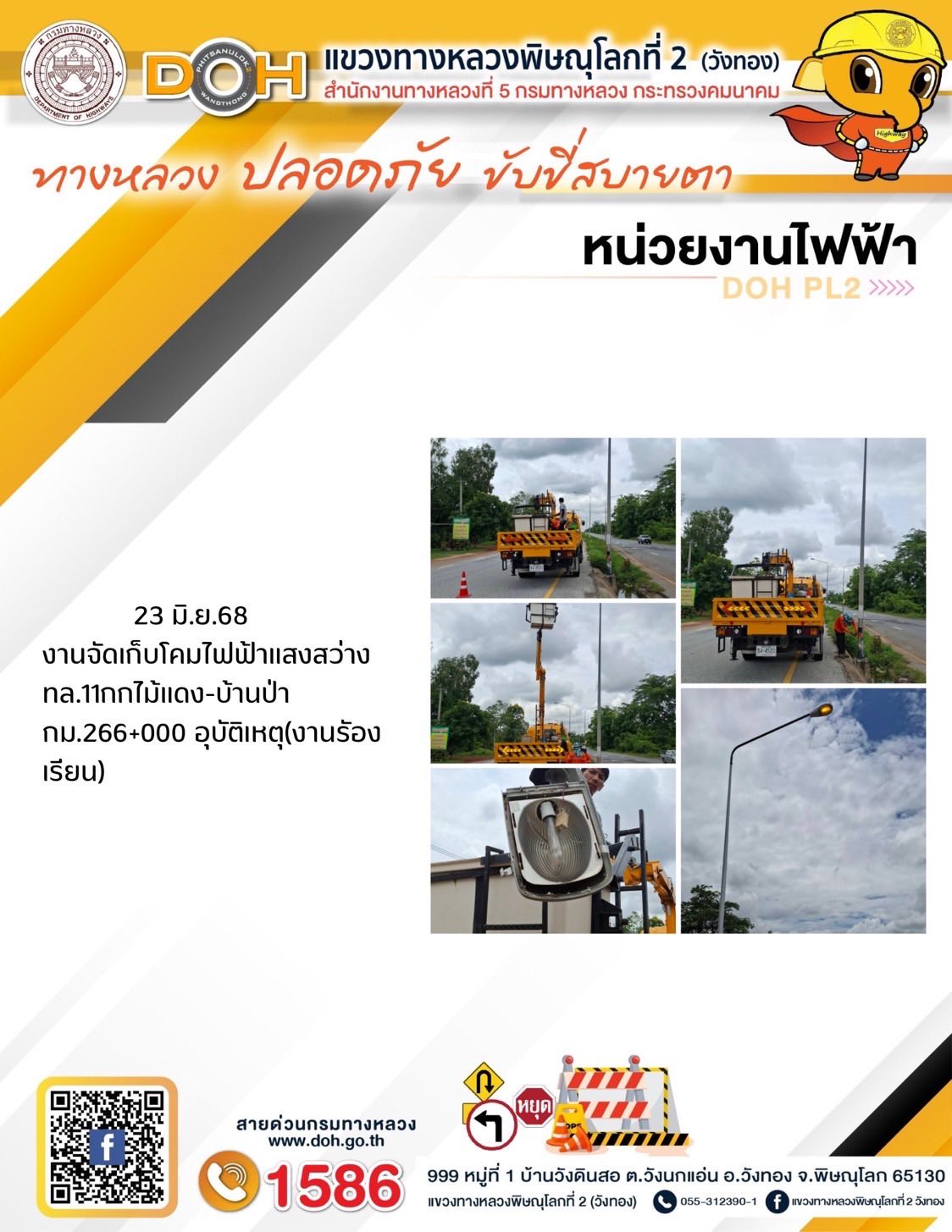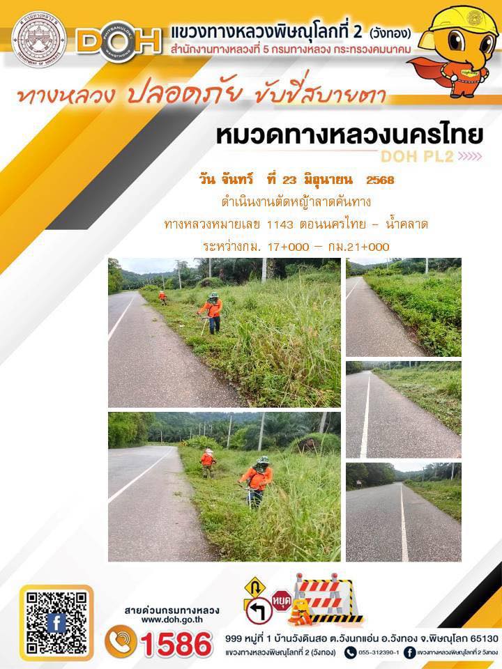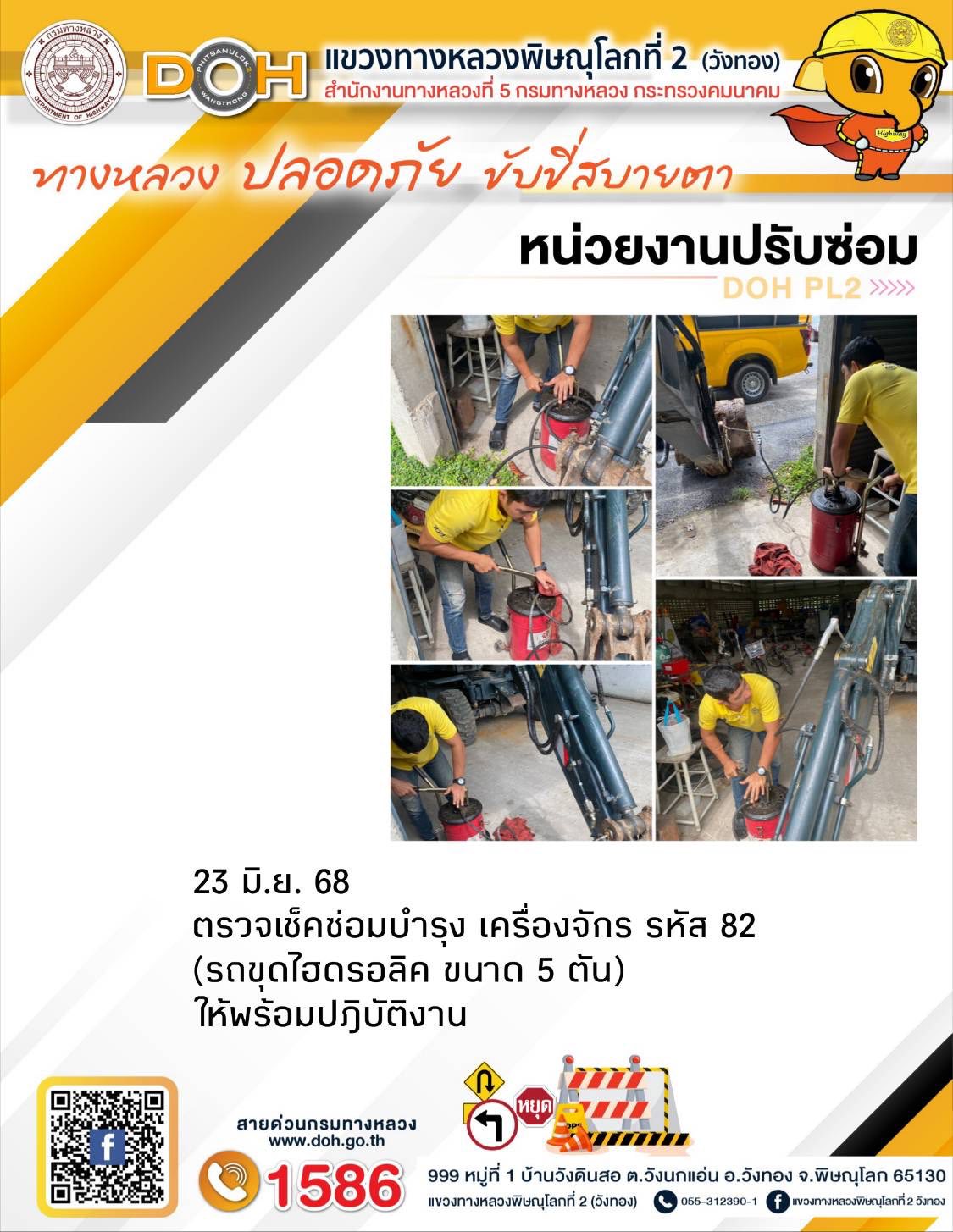การปฏิบัติงานของ หมวดทางหลวง และ หน่วยงานในสังกัด เพื่ออำนวยความสะดวก และปลอดภัยให้กับประชาชนผู้ใช้เส้นทาง ประจำวันจันทร์ ที่ 23 มิถุนายน 2568