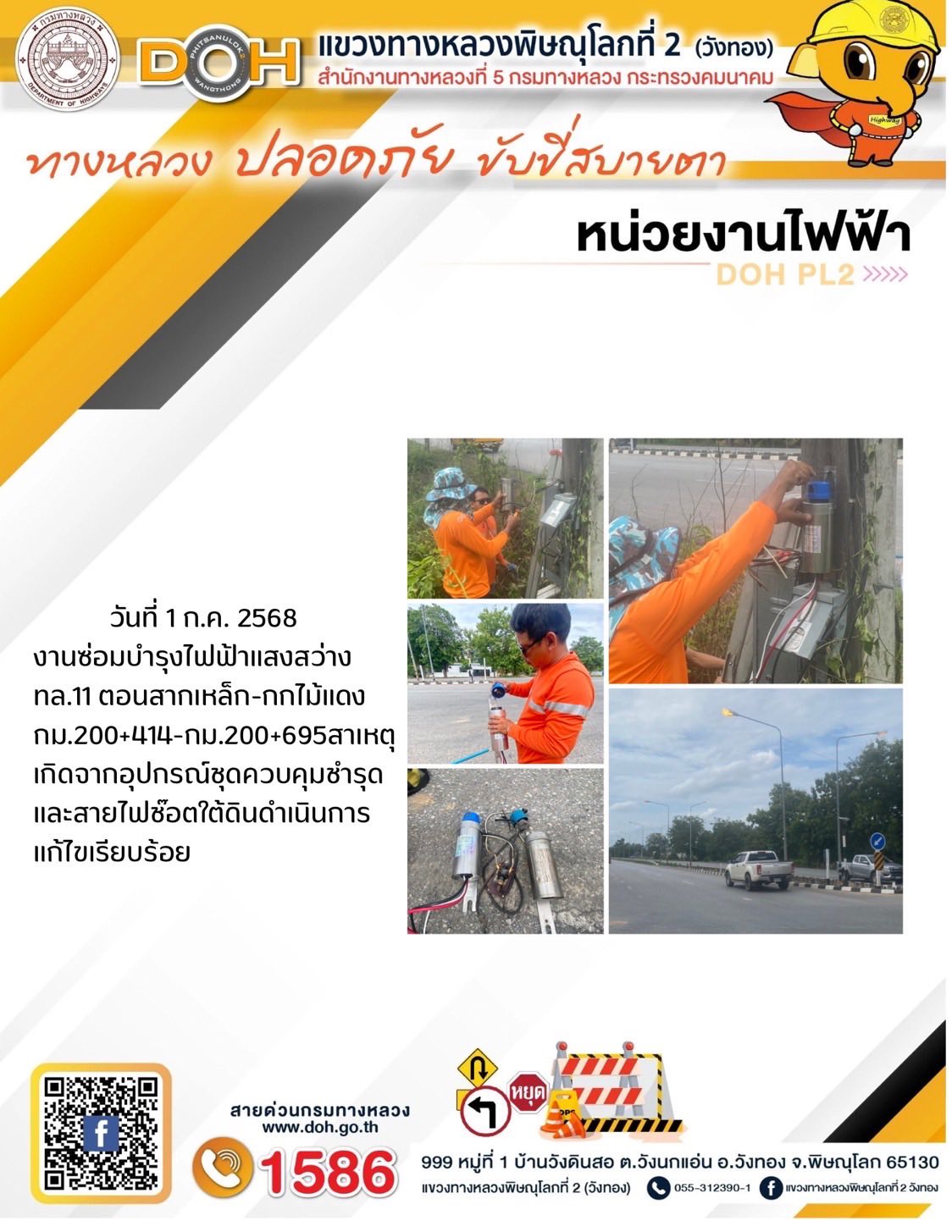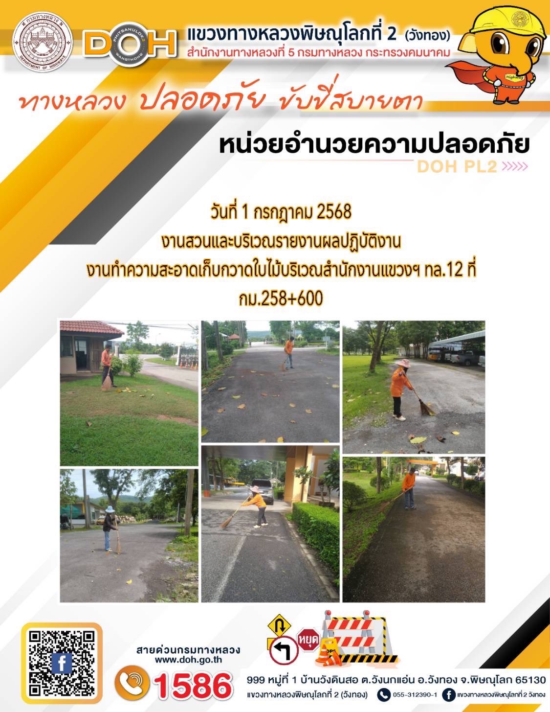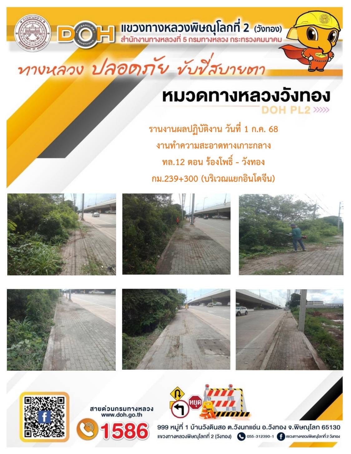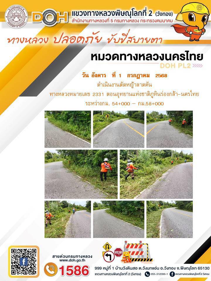 การปฏิบัติงานของ หมวดทางหลวง และ หน่วยงานในสังกัด เพื่ออำนวยความสะดวก และปลอดภัยให้กับประชาชนผู้ใช้เส้นทาง ประจำวันอังคาร ที่ 1 กรกฎาคม 2568