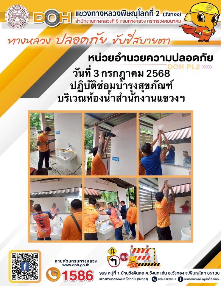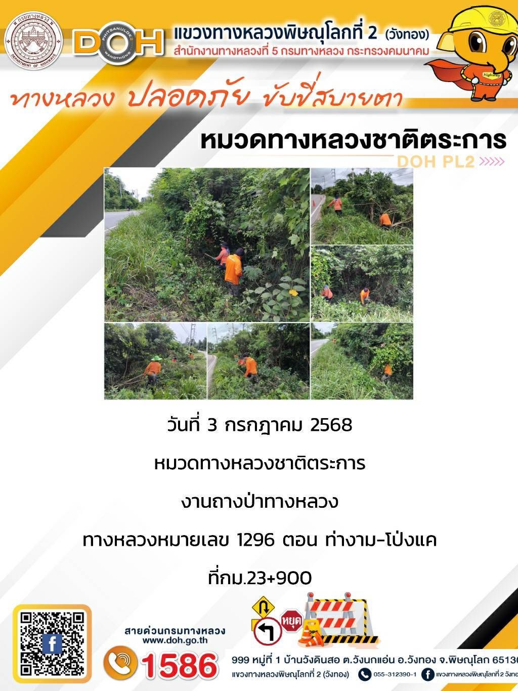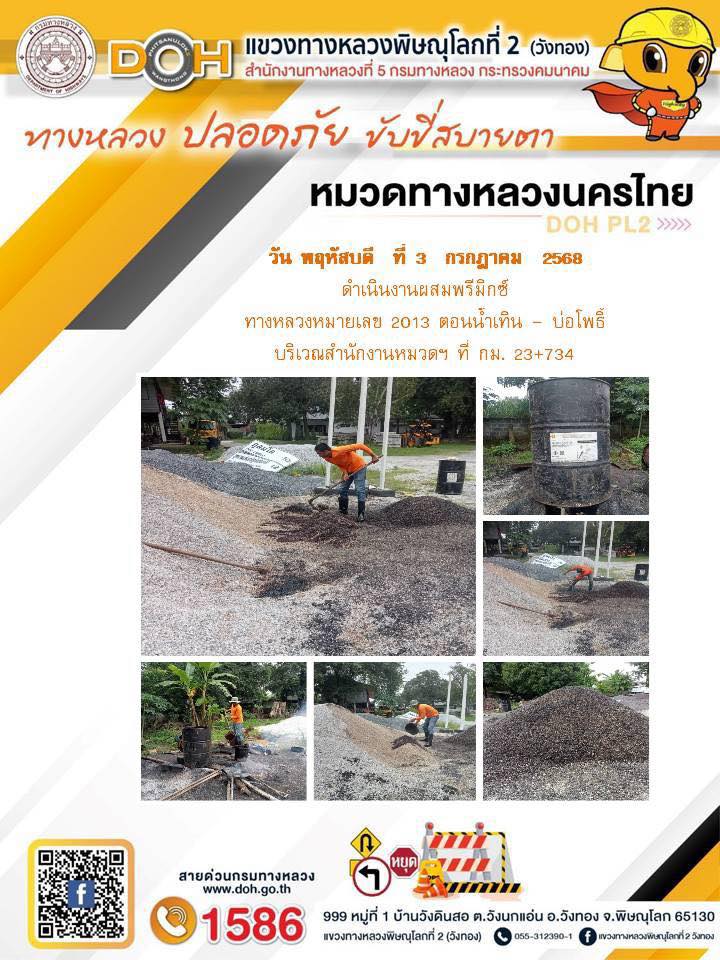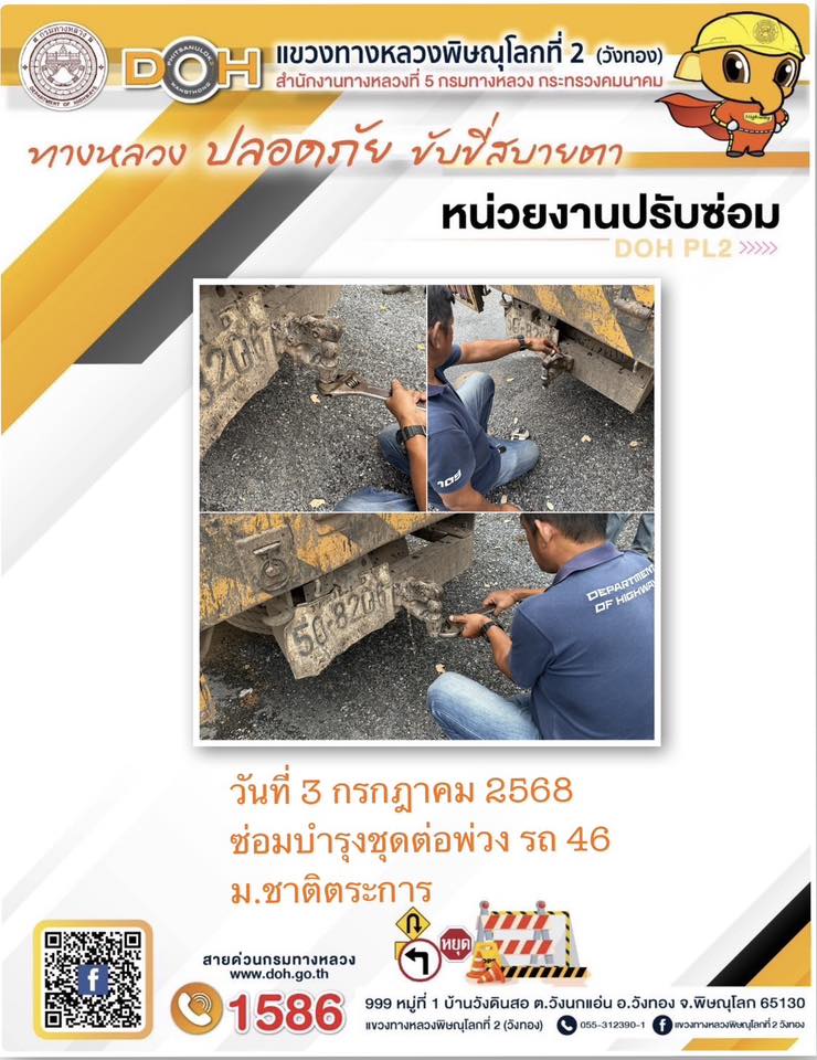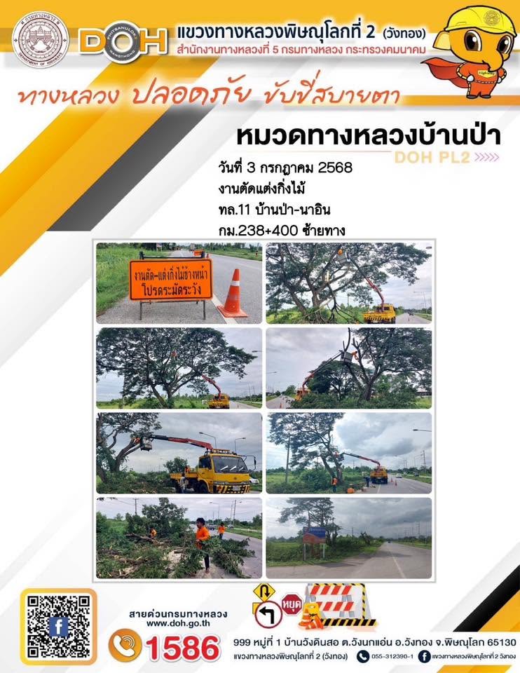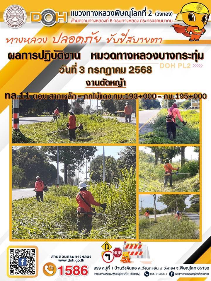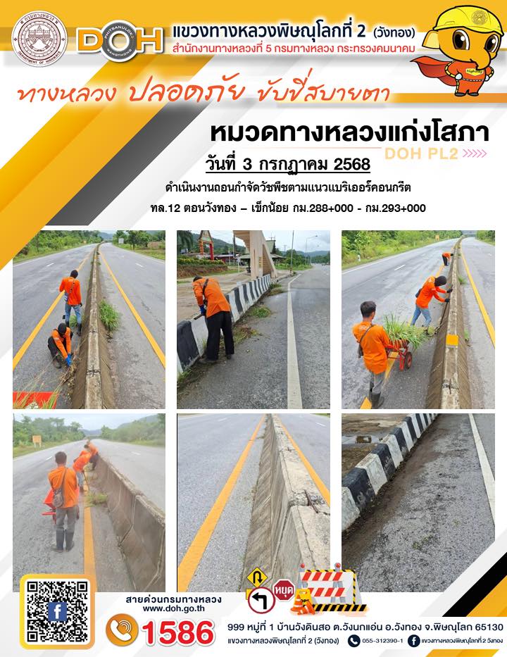 การปฏิบัติงานของ หมวดทางหลวง และ หน่วยงานในสังกัด เพื่ออำนวยความสะดวก และปลอดภัยให้กับประชาชนผู้ใช้เส้นทาง ประจำวันพฤหัสบดี ที่ 3 กรกฎาคม 2568