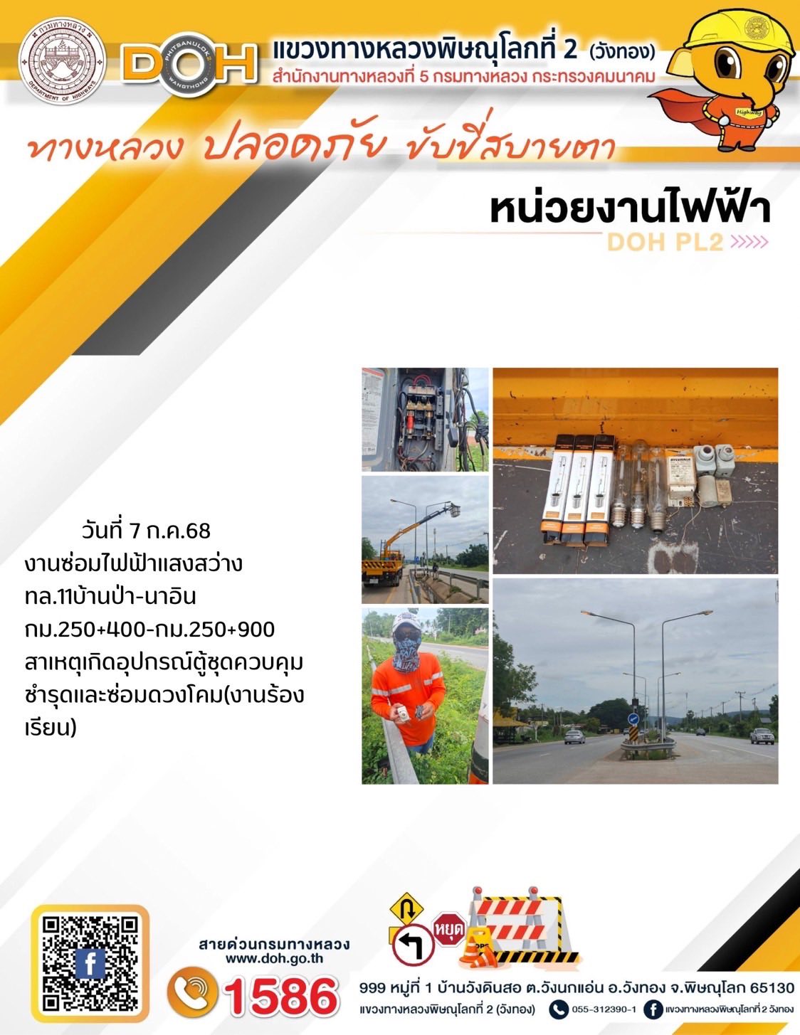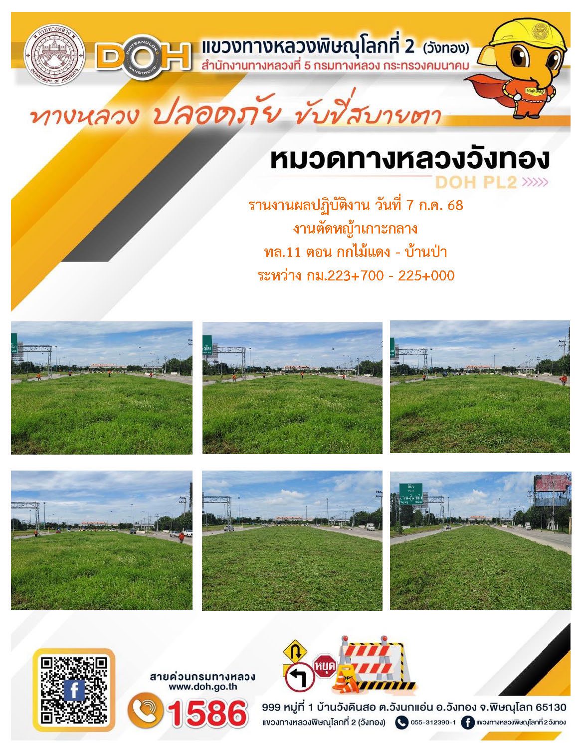 การปฏิบัติงานของ หมวดทางหลวง และ หน่วยงานในสังกัด เพื่ออำนวยความสะดวก และปลอดภัยให้กับประชาชนผู้ใช้เส้นทาง ประจำวันจันทร์ ที่ 7 กรกฎาคม 2568