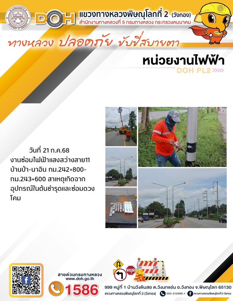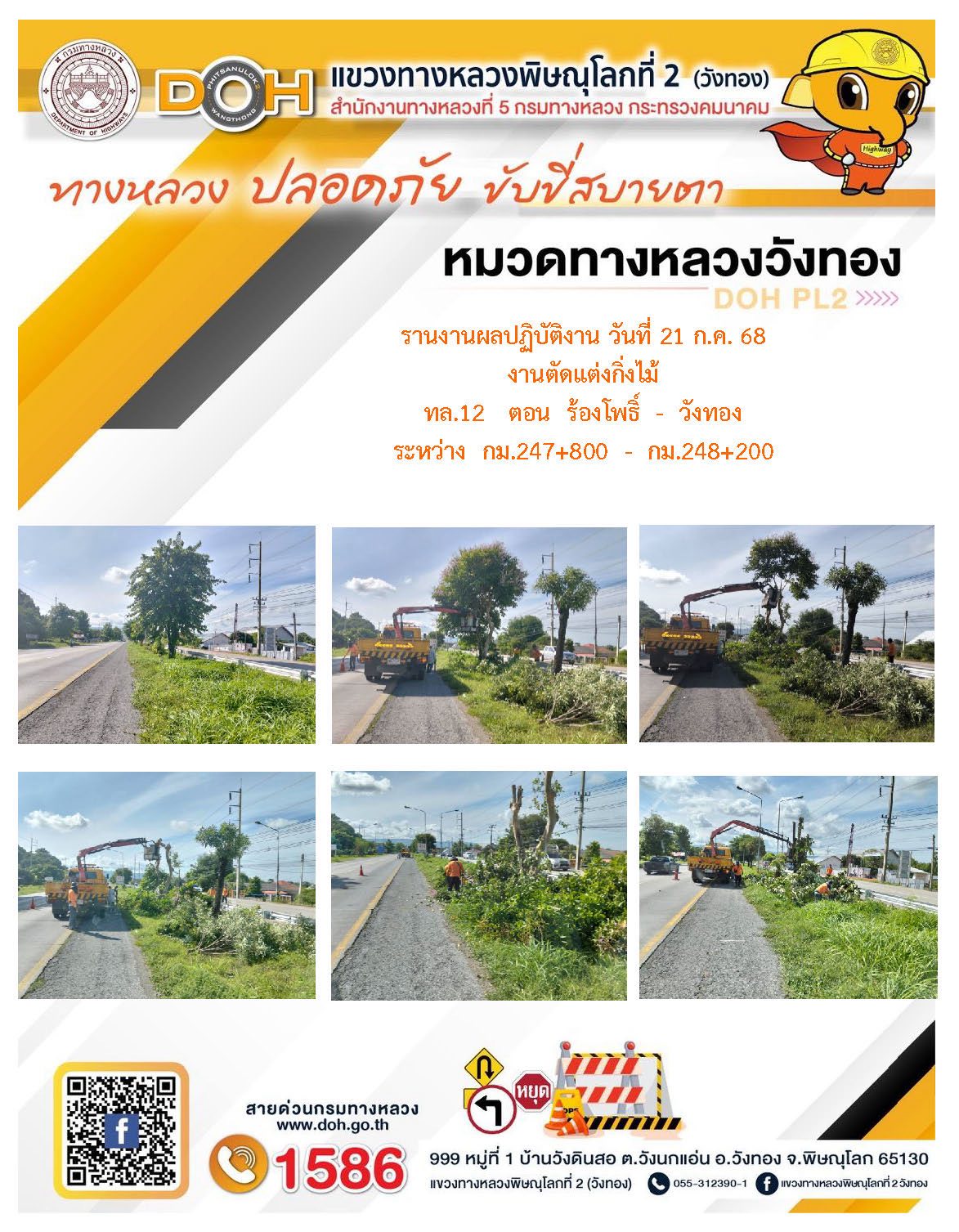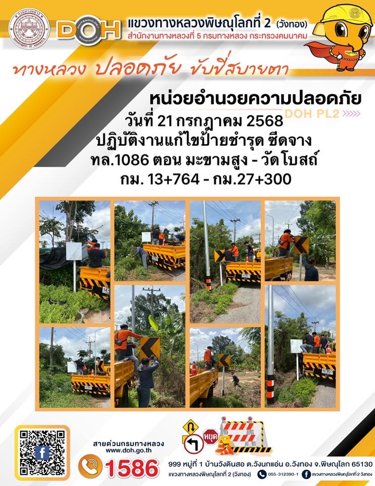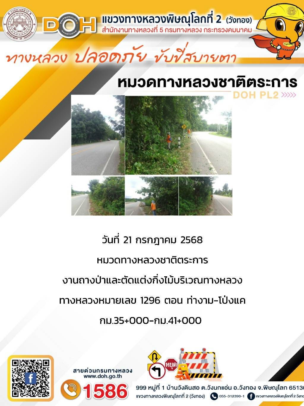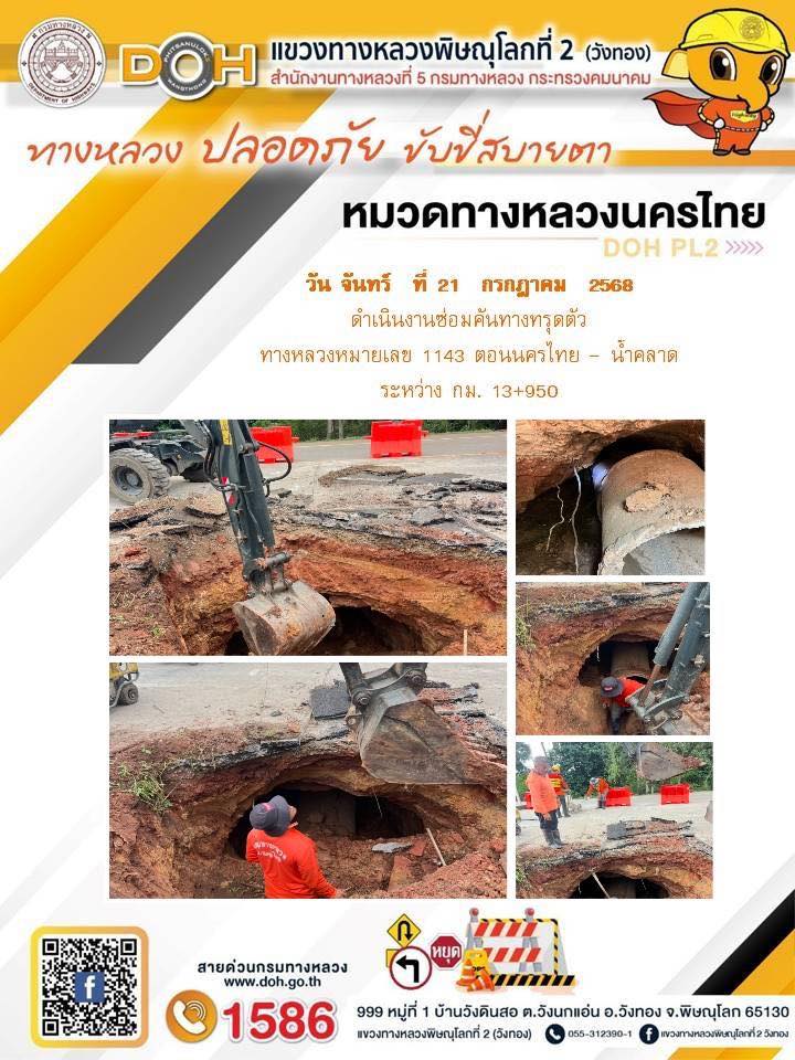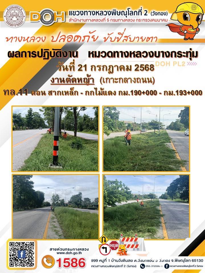 การปฏิบัติงานของ หมวดทางหลวง และ หน่วยงานในสังกัด เพื่ออำนวยความสะดวก และปลอดภัยให้กับประชาชนผู้ใช้เส้นทาง ประจำวันจันทร์ ที่ 21 กรกฎาคม 2568