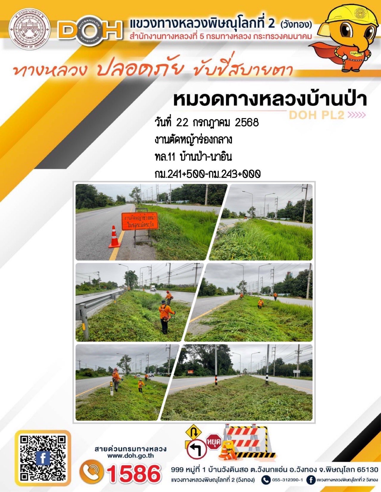 การปฏิบัติงานของ หมวดทางหลวง และ หน่วยงานในสังกัด เพื่ออำนวยความสะดวก และปลอดภัยให้กับประชาชนผู้ใช้เส้นทาง ประจำวันอังคาร ที่ 22 กรกฎาคม 2568