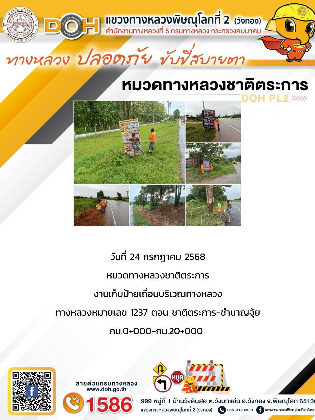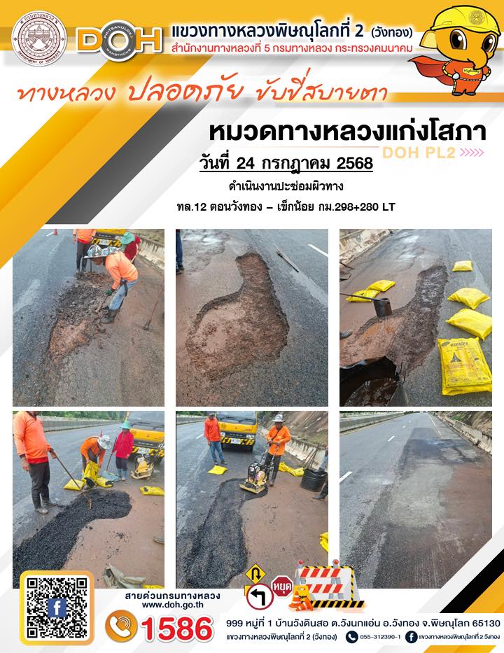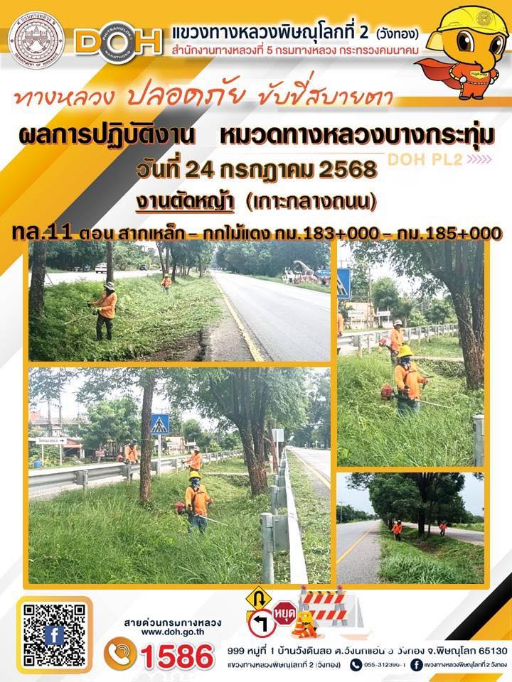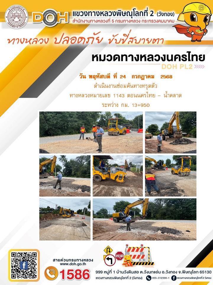 การปฏิบัติงานของ หมวดทางหลวง และ หน่วยงานในสังกัด เพื่ออำนวยความสะดวก และปลอดภัยให้กับประชาชนผู้ใช้เส้นทาง ประจำวันพฤหัสบดี ที่ 24 กรกฎาคม 2568