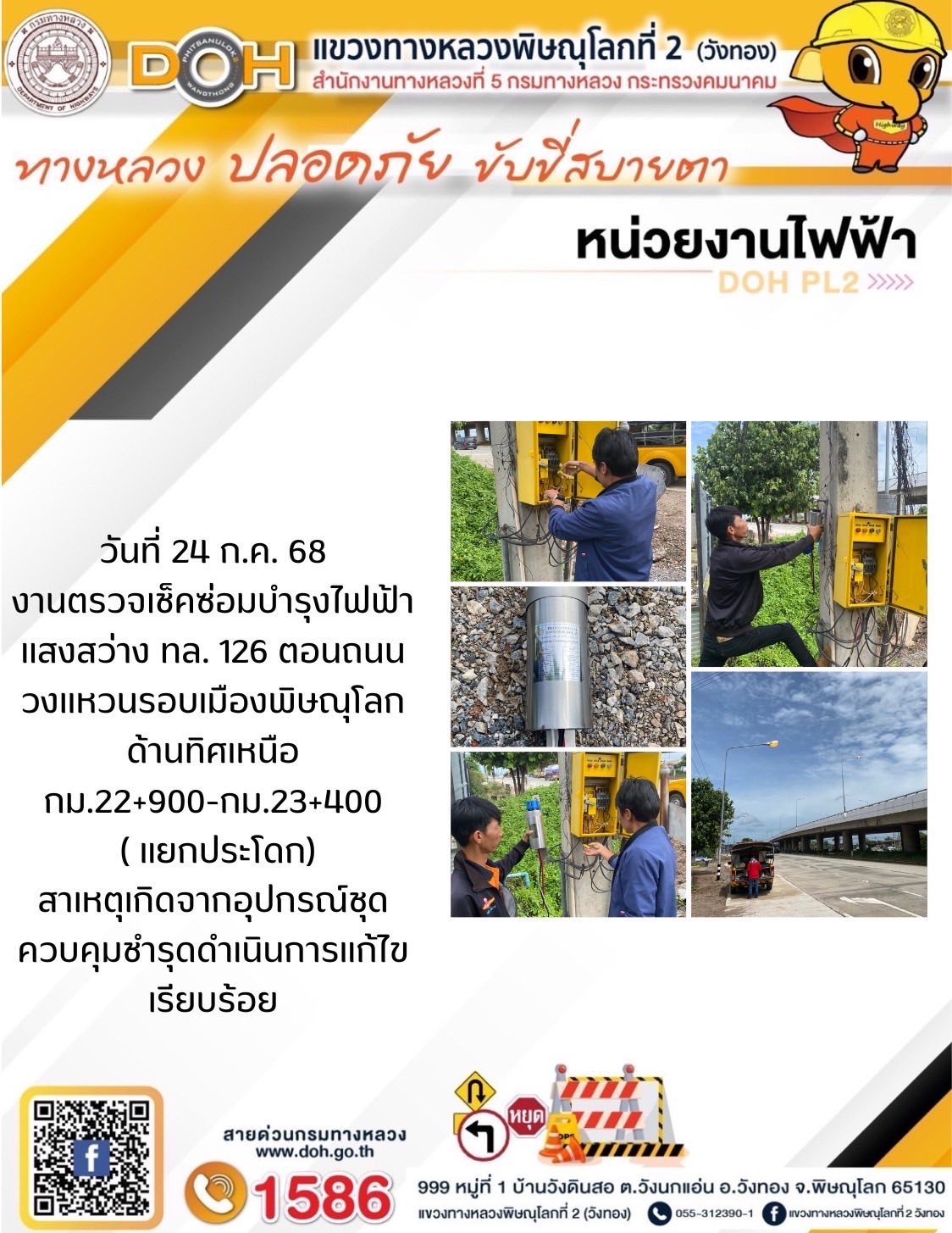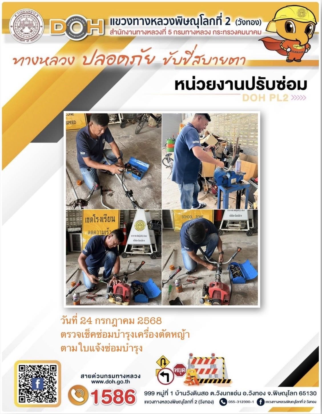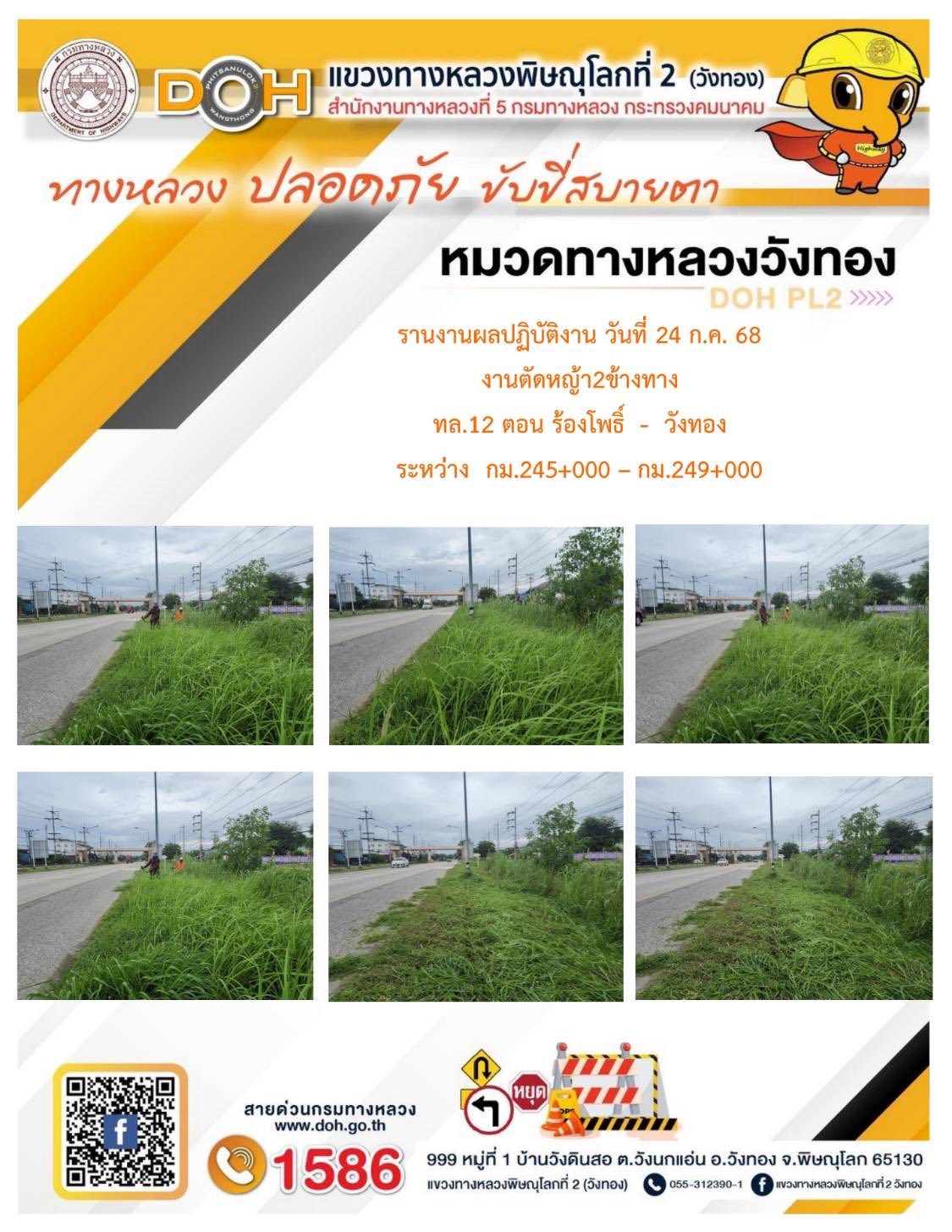 การปฏิบัติงานของ หมวดทางหลวง และ หน่วยงานในสังกัด เพื่ออำนวยความสะดวก และปลอดภัยให้กับประชาชนผู้ใช้เส้นทาง ประจำวันพฤหัสบดี ที่ 24 กรกฎาคม 2568