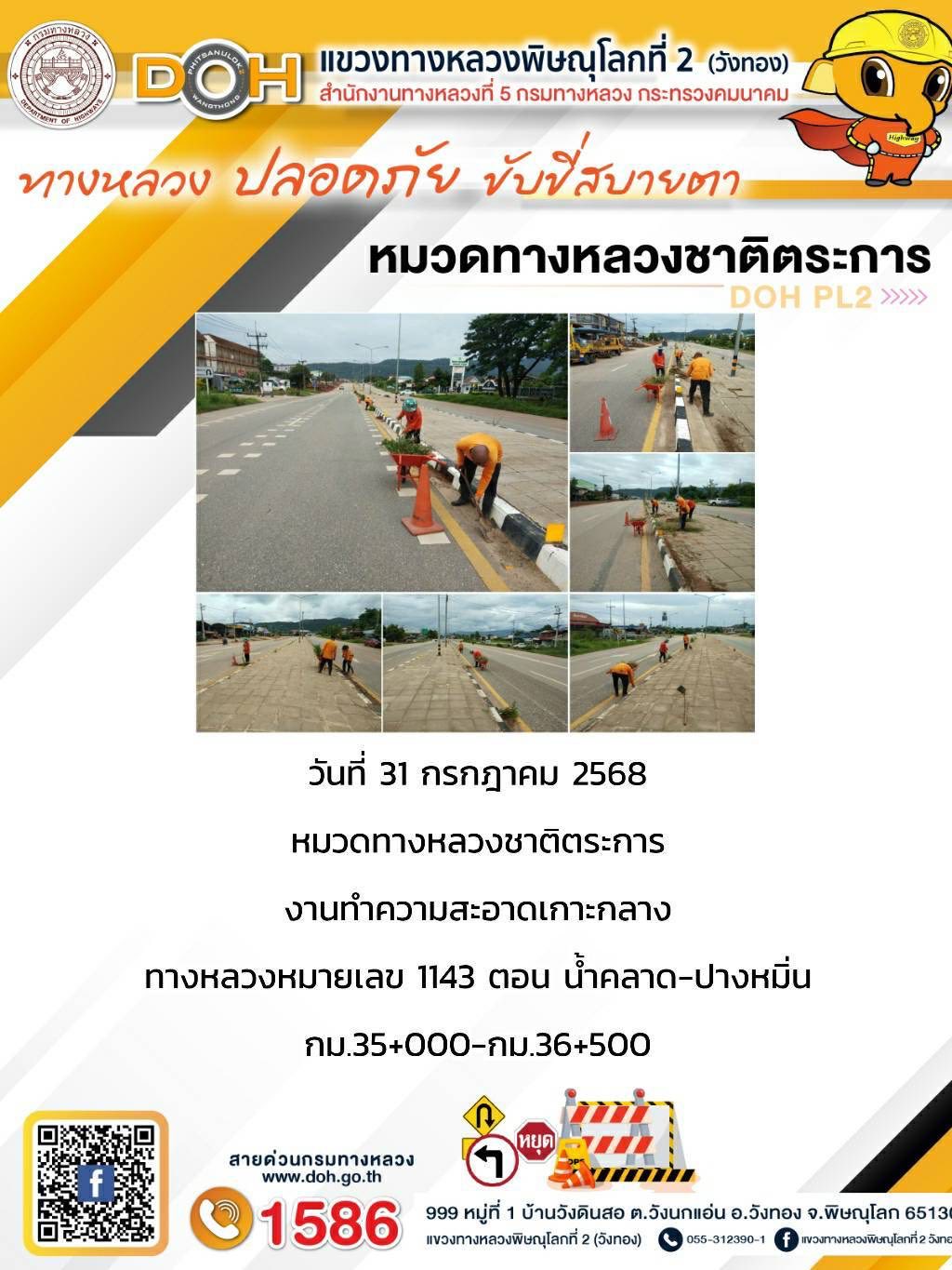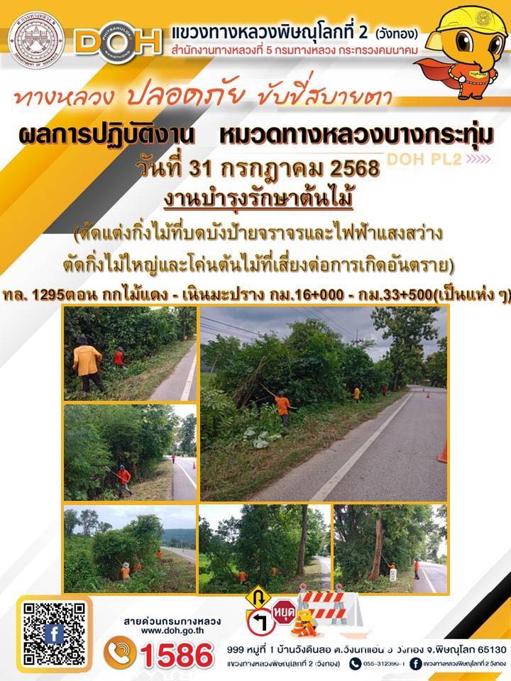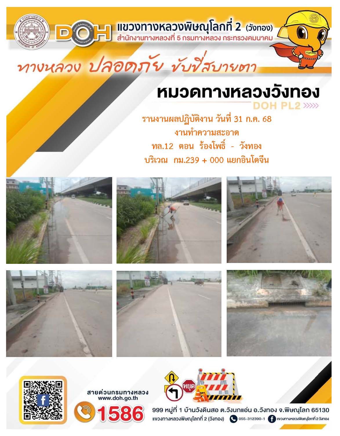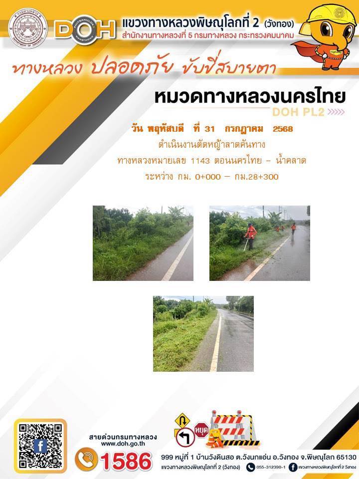 การปฏิบัติงานของ หมวดทางหลวง และ หน่วยงานในสังกัด เพื่ออำนวยความสะดวก และปลอดภัยให้กับประชาชนผู้ใช้เส้นทาง ประจำวันพฤหัสบดี ที่ 31 กรกฎาคม 2568