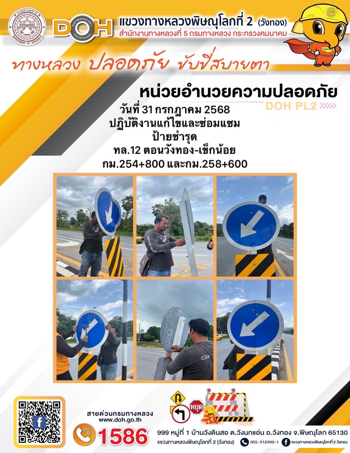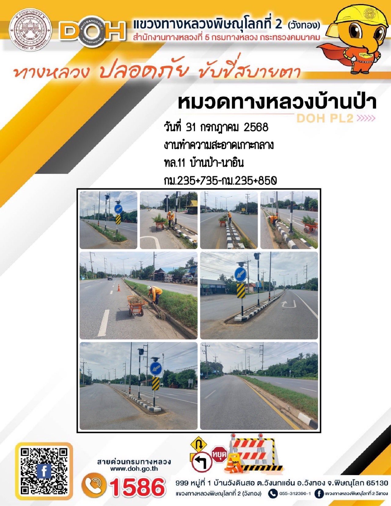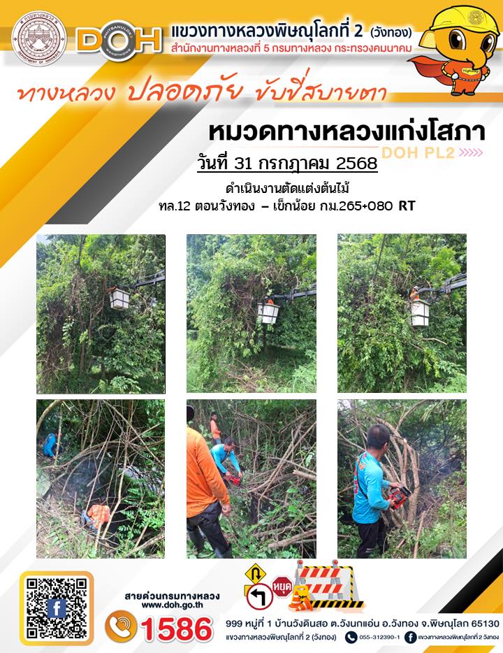 การปฏิบัติงานของ หมวดทางหลวง และ หน่วยงานในสังกัด เพื่ออำนวยความสะดวก และปลอดภัยให้กับประชาชนผู้ใช้เส้นทาง ประจำวันพฤหัสบดี ที่ 31 กรกฎาคม 2568