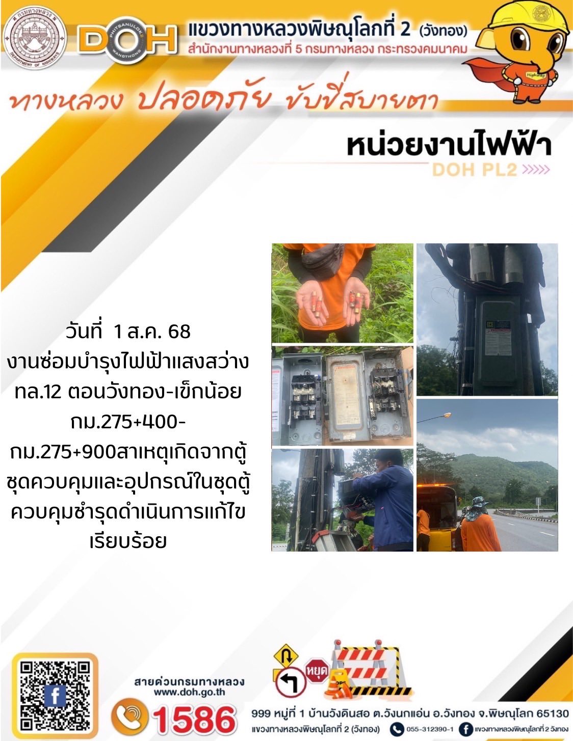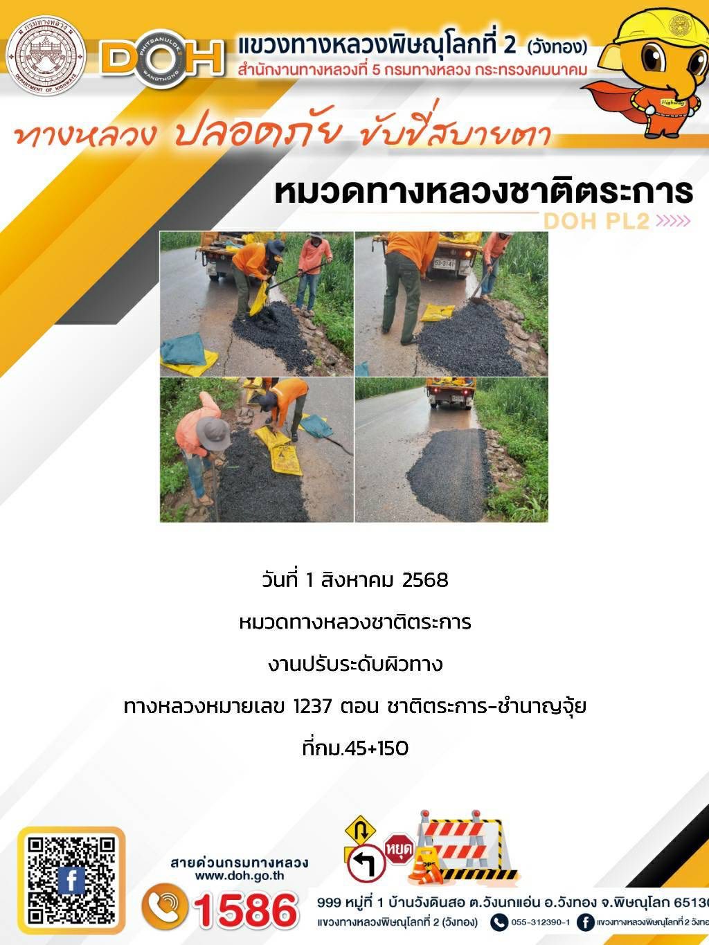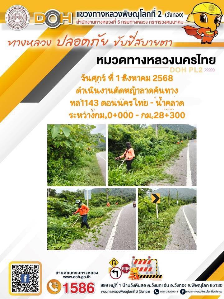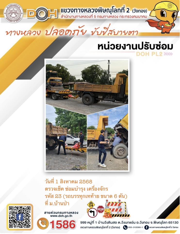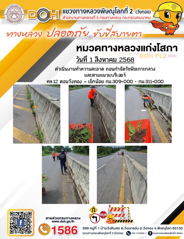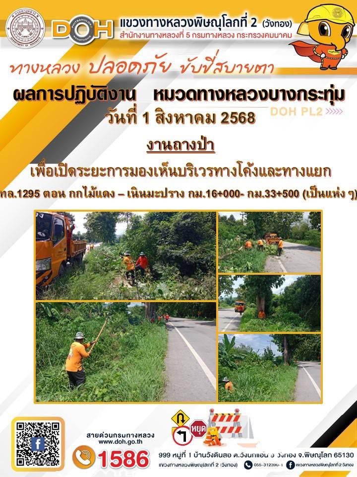 การปฏิบัติงานของ หมวดทางหลวง และ หน่วยงานในสังกัด เพื่ออำนวยความสะดวก และปลอดภัยให้กับประชาชนผู้ใช้เส้นทาง ประจำวันศุกร์ ที่ 1 สิงหาคม 2568