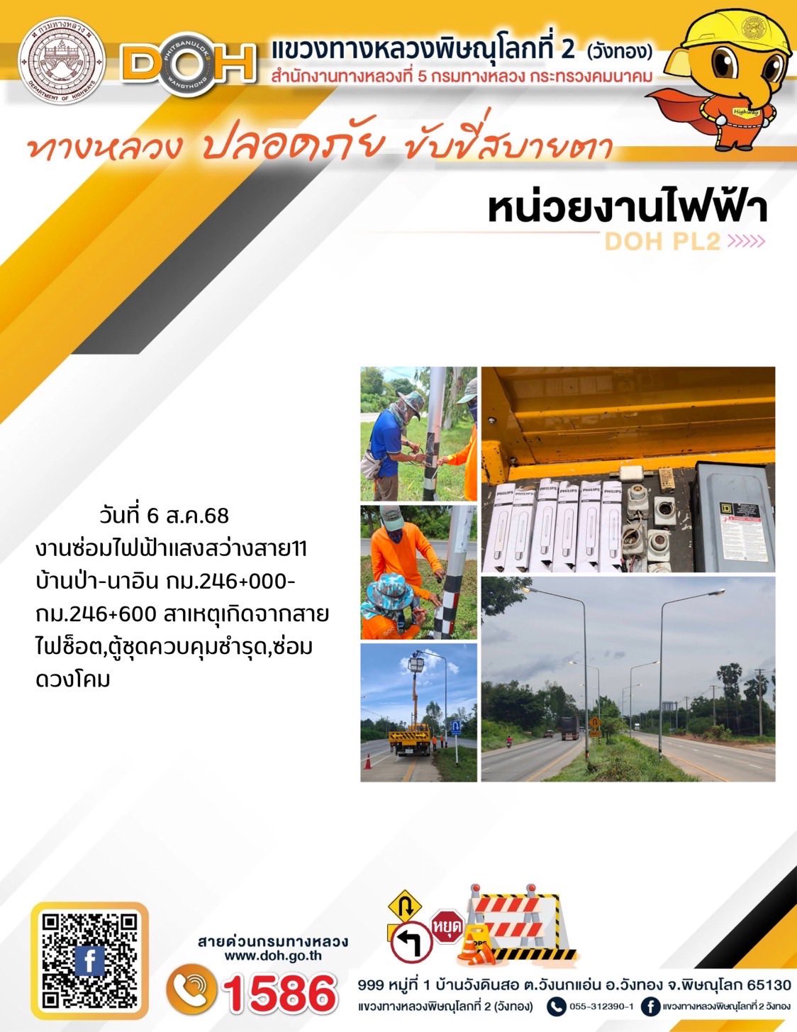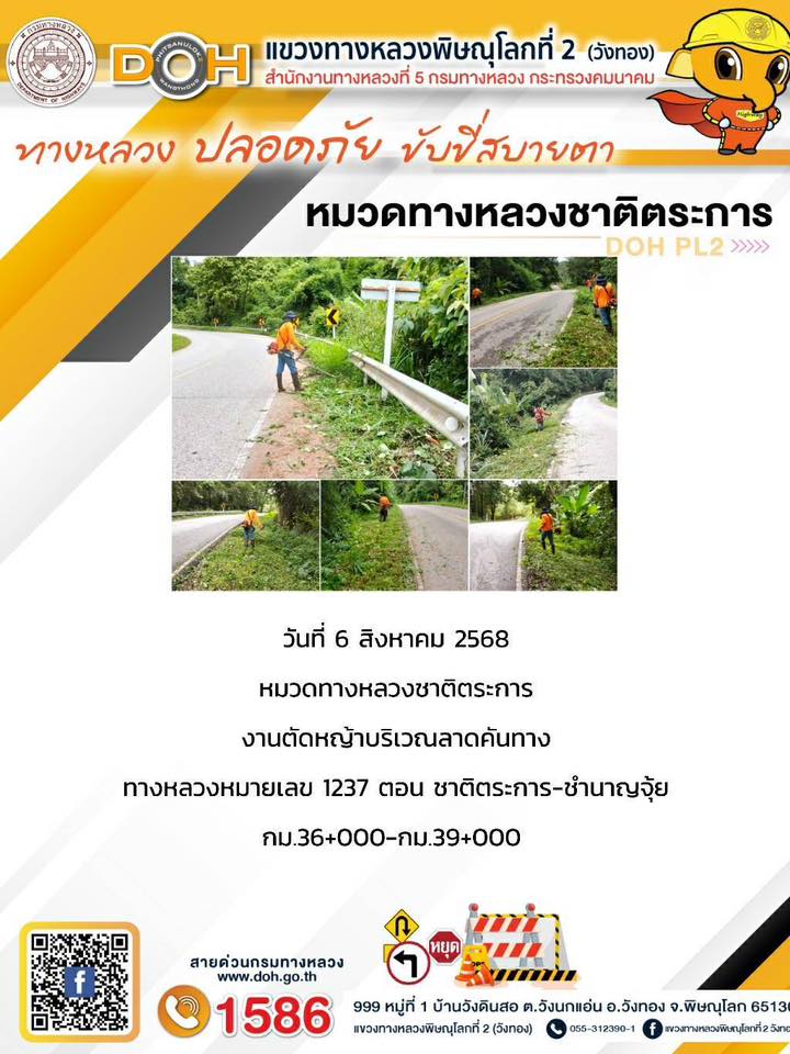 การปฏิบัติงานของ หมวดทางหลวง และ หน่วยงานในสังกัด เพื่ออำนวยความสะดวก และปลอดภัยให้กับประชาชนผู้ใช้เส้นทาง ประจำวันพุธ ที่ 6 สิงหาคม 2568