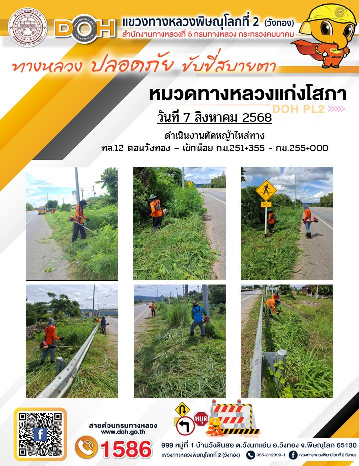 การปฏิบัติงานของ หมวดทางหลวง และ หน่วยงานในสังกัด เพื่ออำนวยความสะดวก และปลอดภัยให้กับประชาชนผู้ใช้เส้นทาง ประจำวันพฤหัสบดี ที่ 7 สิงหาคม 2568