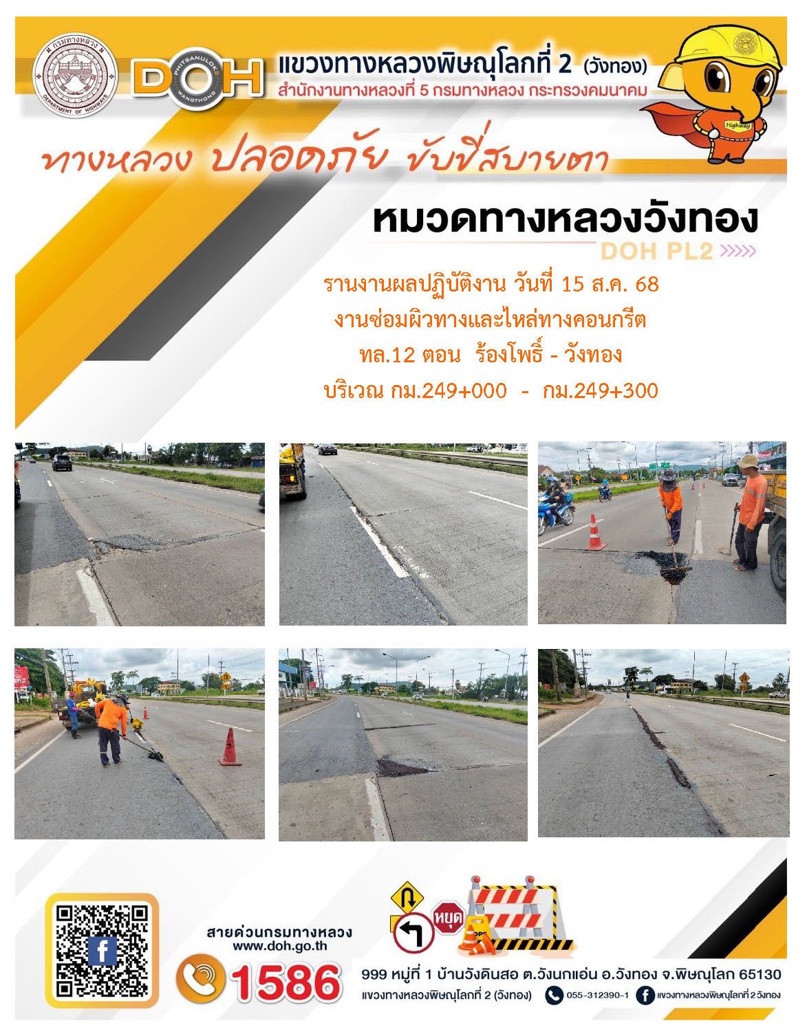 การปฏิบัติงานของ หมวดทางหลวง และ หน่วยงานในสังกัด เพื่ออำนวยความสะดวก และปลอดภัยให้กับประชาชนผู้ใช้เส้นทาง ประจำวันศุกร์ ที่ 15 สิงหาคม 2568