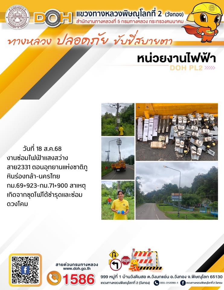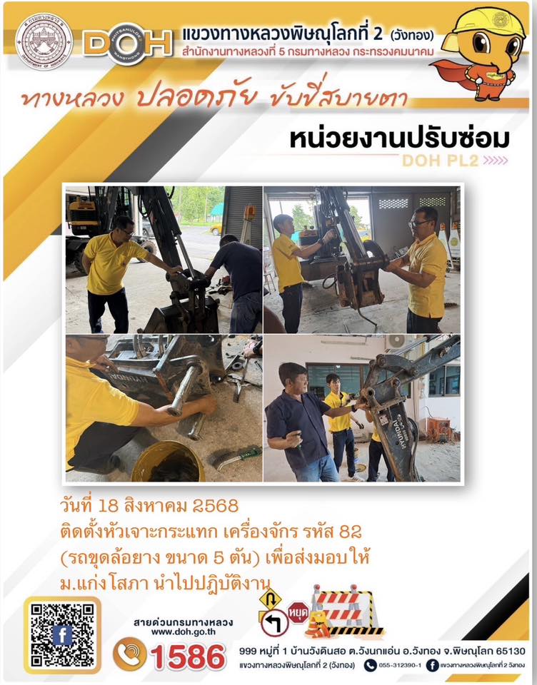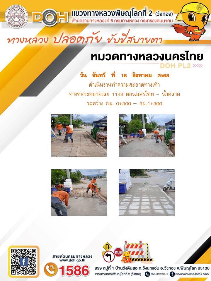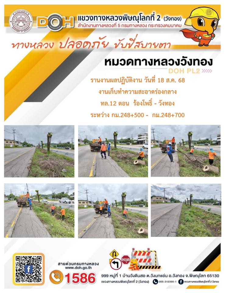 การปฏิบัติงานของ หมวดทางหลวง และ หน่วยงานในสังกัด เพื่ออำนวยความสะดวก และปลอดภัยให้กับประชาชนผู้ใช้เส้นทาง ประจำวันจันทร์ ที่ 18 สิงหาคม 2568