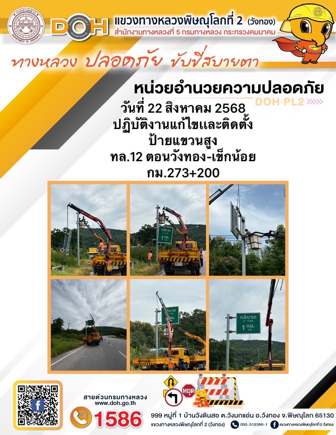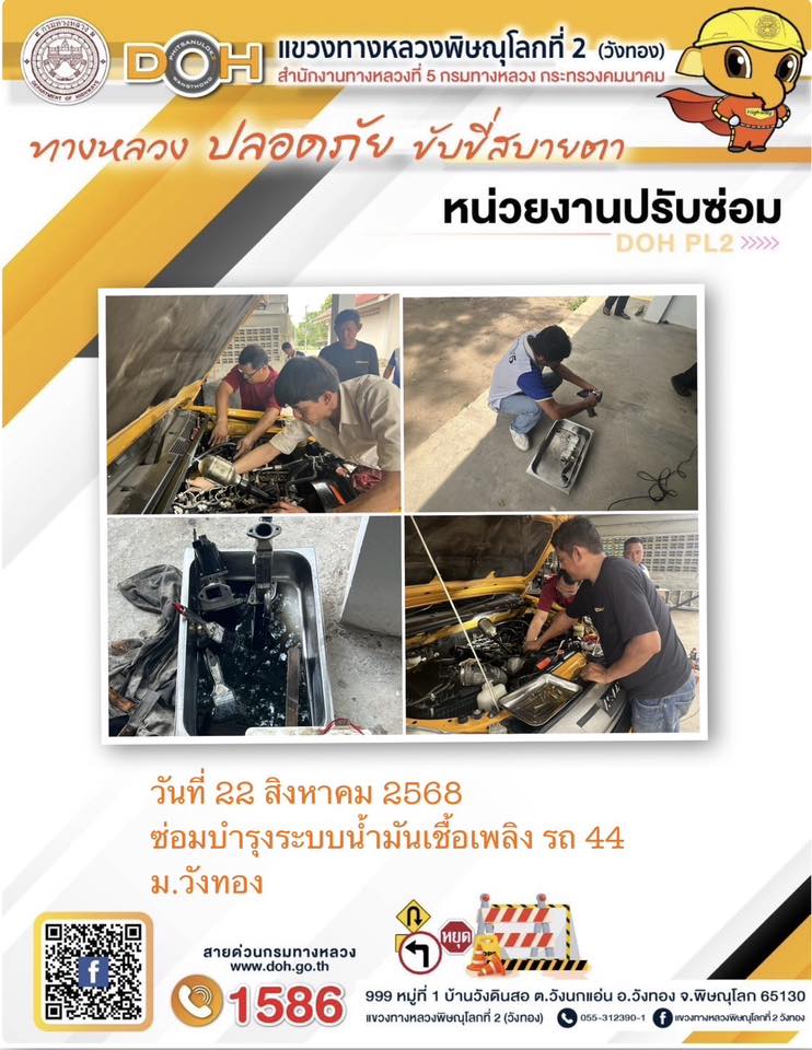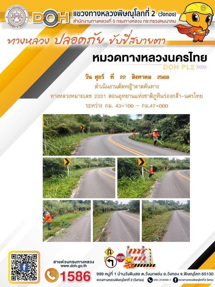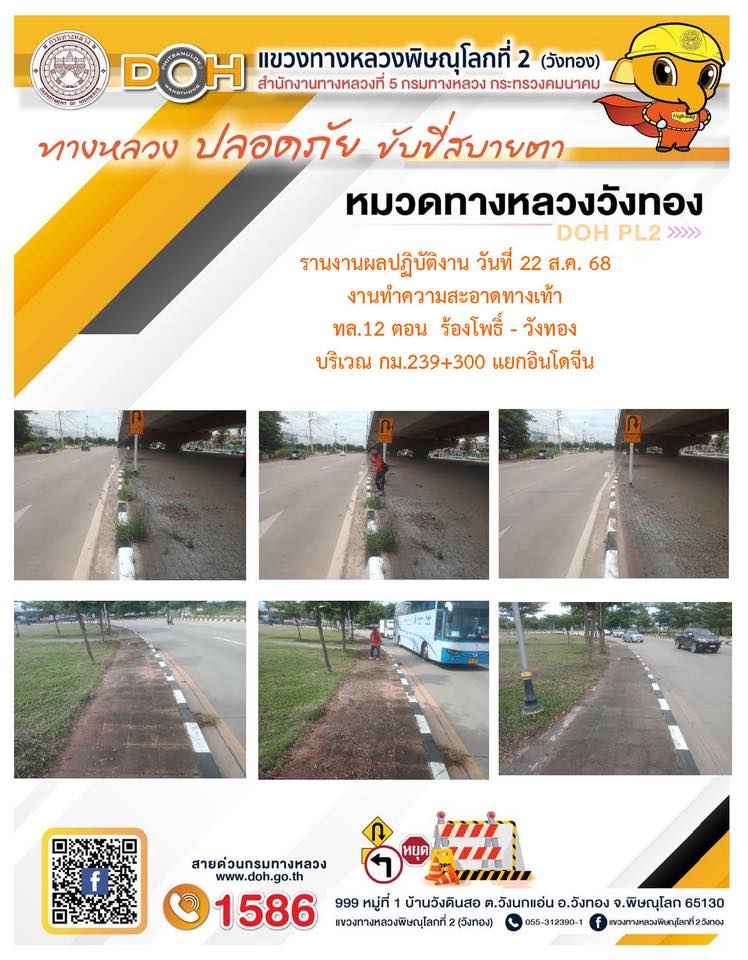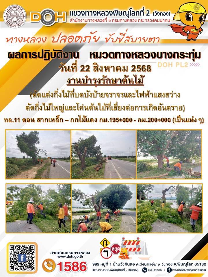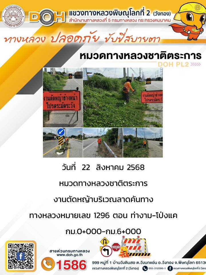 การปฏิบัติงานของ หมวดทางหลวง และ หน่วยงานในสังกัด เพื่ออำนวยความสะดวก และปลอดภัยให้กับประชาชนผู้ใช้เส้นทาง ประจำวันศุกร์ ที่ 22 สิงหาคม 2568