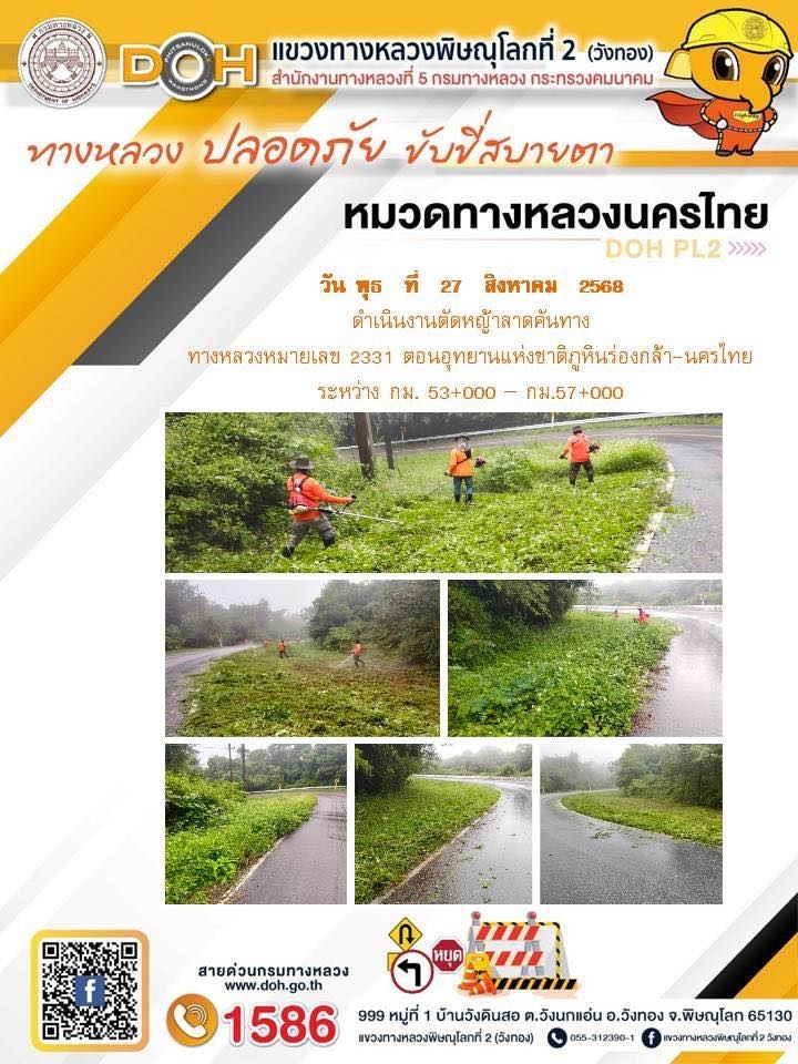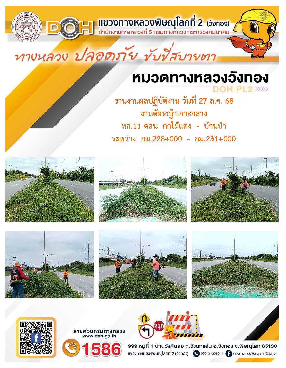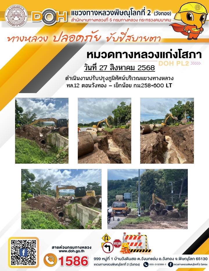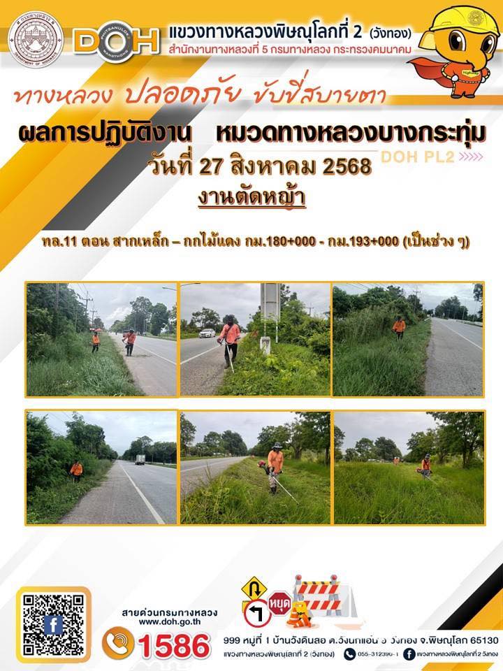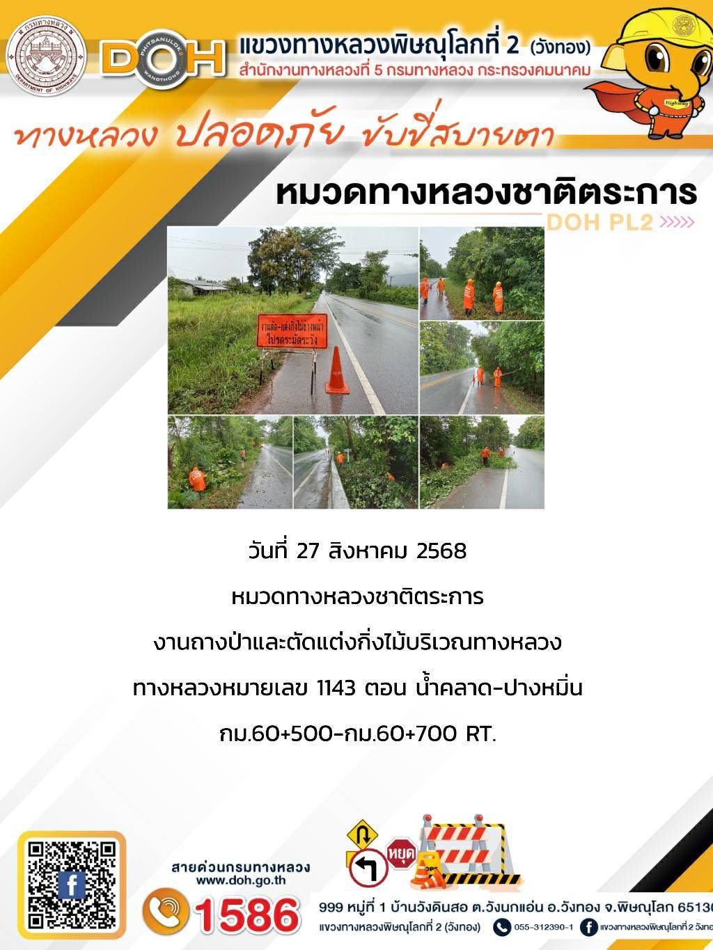 การปฏิบัติงานของ หมวดทางหลวง และ หน่วยงานในสังกัด เพื่ออำนวยความสะดวก และปลอดภัยให้กับประชาชนผู้ใช้เส้นทาง ประจำวันพุธ ที่ 27 สิงหาคม 2568
